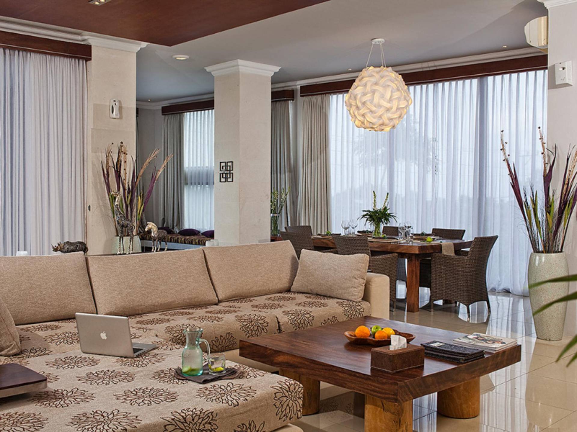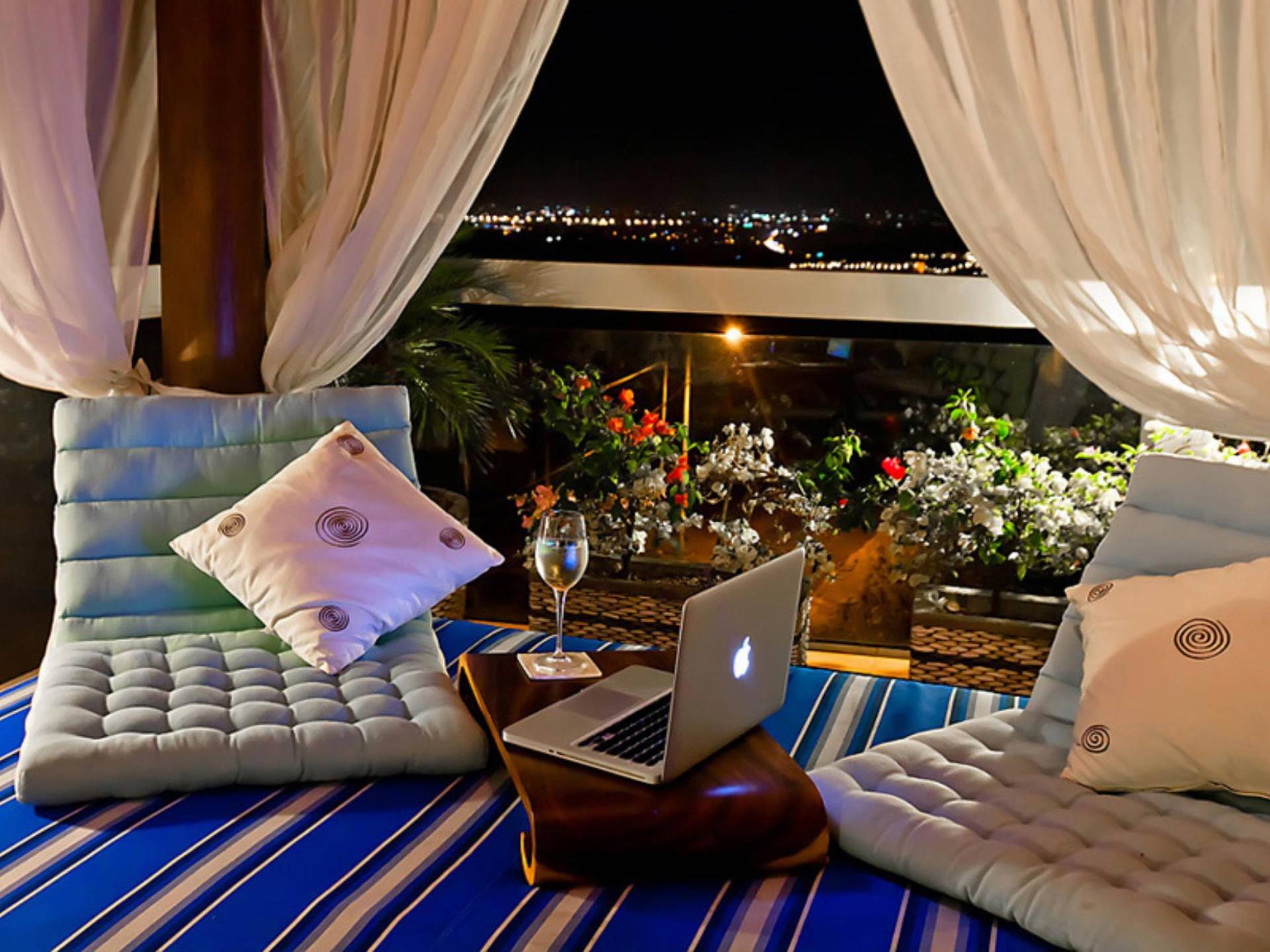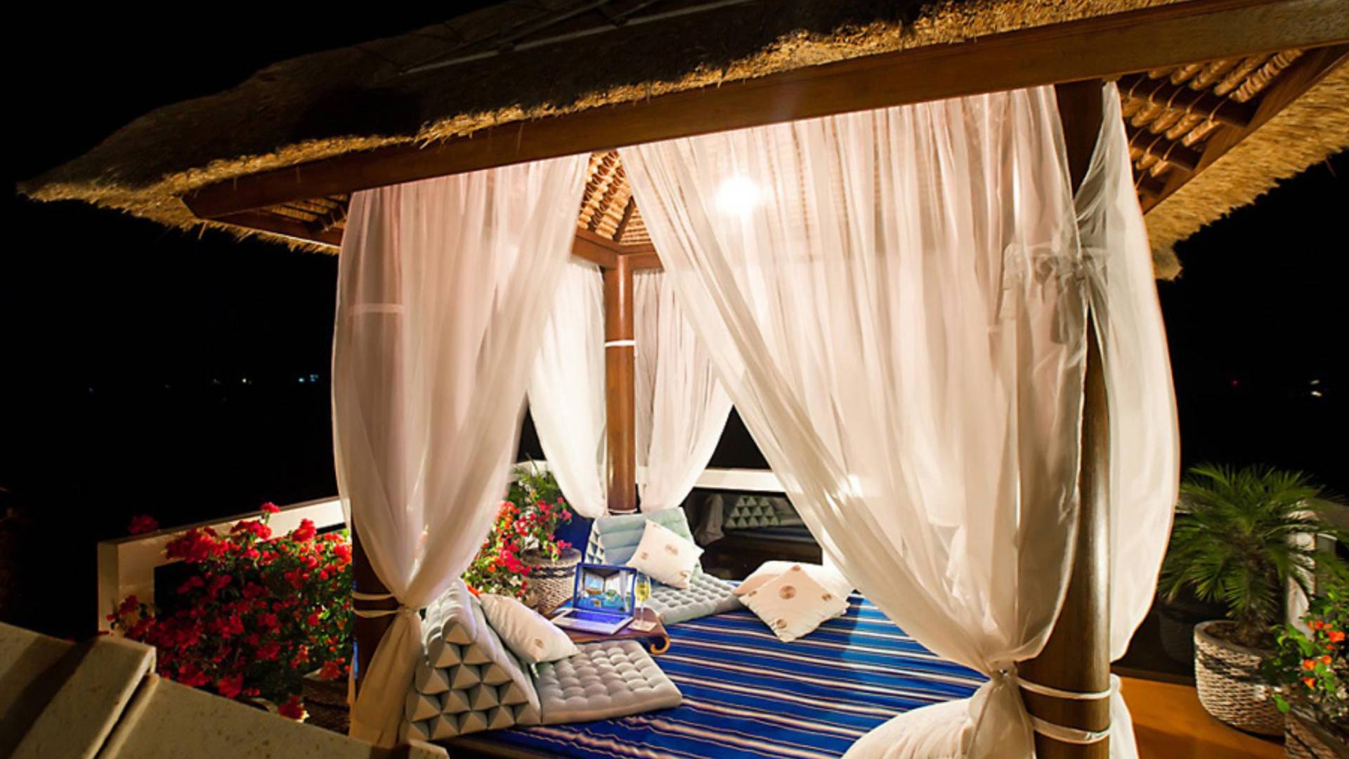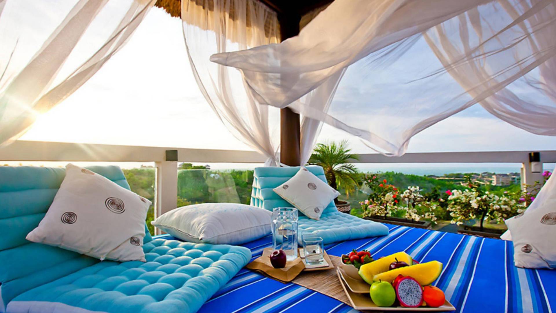 Après être entré dans la Sky House Villa Bali par une porte balinaise traditionnelle, vous serez charmé par les étangs remplis de carpes koï, les meubles confortables, la piscine de 10 mètres et la cuisine européenne entièrement équipée. Mais surtout, vous n'oublierez jamais la vue imprenable depuis la terrasse sur le toit Sky Lounge avec ses chaises berçantes et son gazebo de relaxation rembourré. Voici l'endroit idéal pour des séances de yoga matinales ou simplement pour bronzer. Le coucher du soleil est le moment de profiter d'un barbecue de fruits de mer sous le ciel balinais tout en étant rafraîchi par la brise de l'océan alors que la journée se termine et que l'île se glisse dans le calme d'une nuit tropicale.