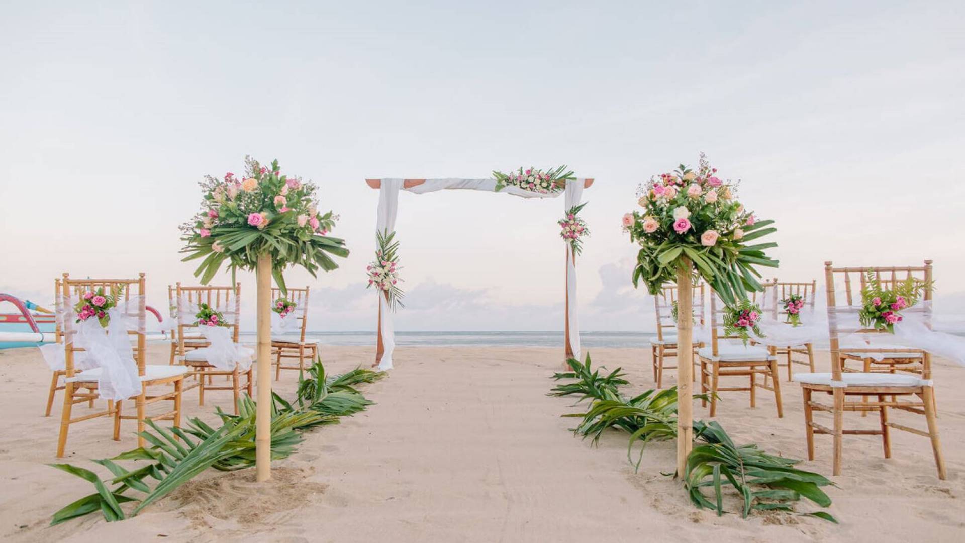 Sudamala Suites & Villas Sanur est un hôtel-boutique de luxe niché dans un magnifique coin de Sanur entouré de ruelles verdoyantes, de cafés en bordure de rue, de boutiques et de restaurants. C'est un endroit idyllique et charmant, à proximité de la plage et de toutes les commodités du village de Sanur. Le complexe a un style majestueux et traditionnel, avec une cour centrale bien entretenue, une piscine et une galerie d'art qui est l'une des plus belles de Bali. Le complexe dispose également d'une étendue de plage dédiée qui peut être utilisée comme lieu de vos vœux et, mieux encore, d'un organisateur de mariage sur place qui peut vous aider à planifier chaque détail du grand jour.