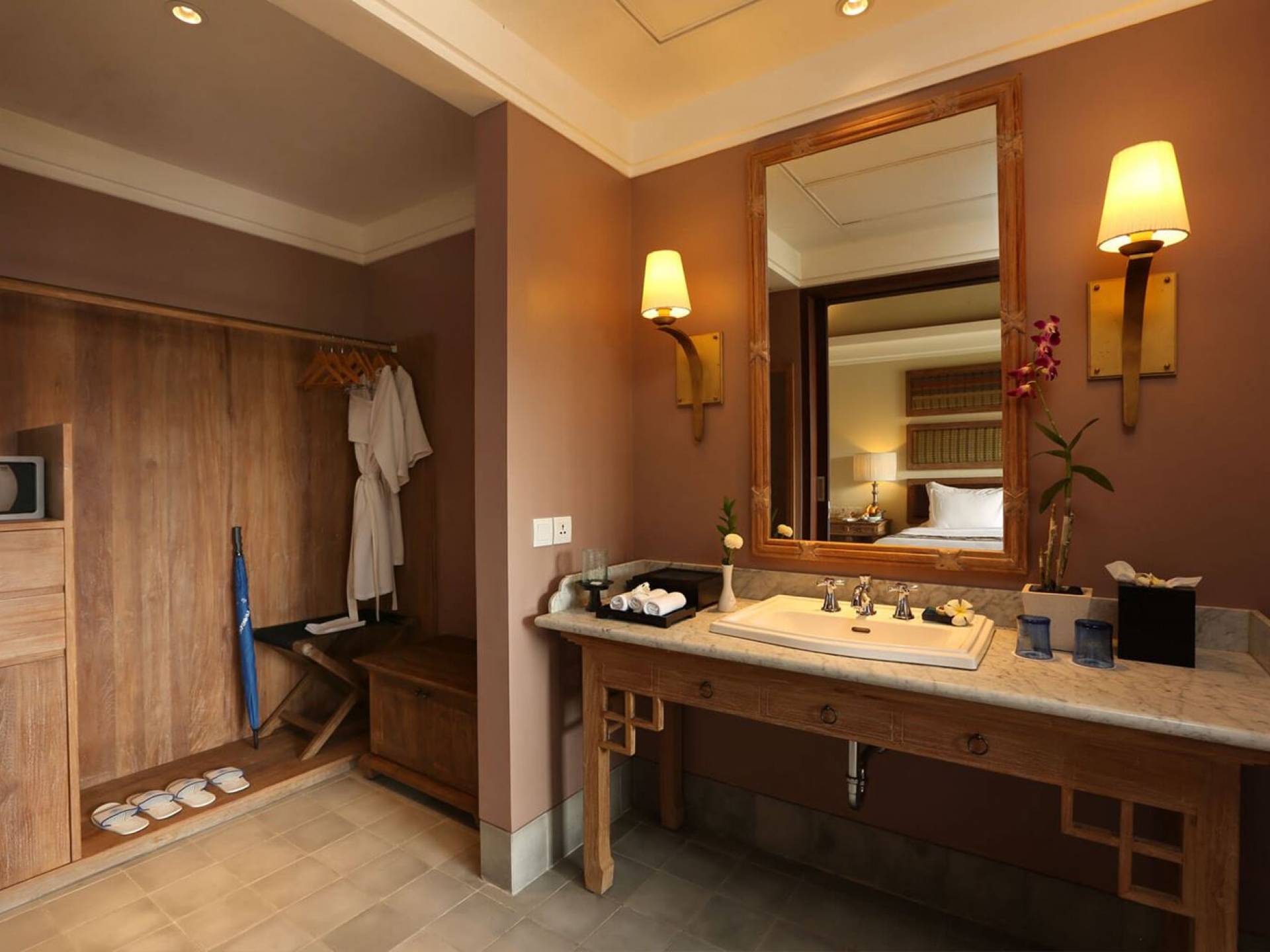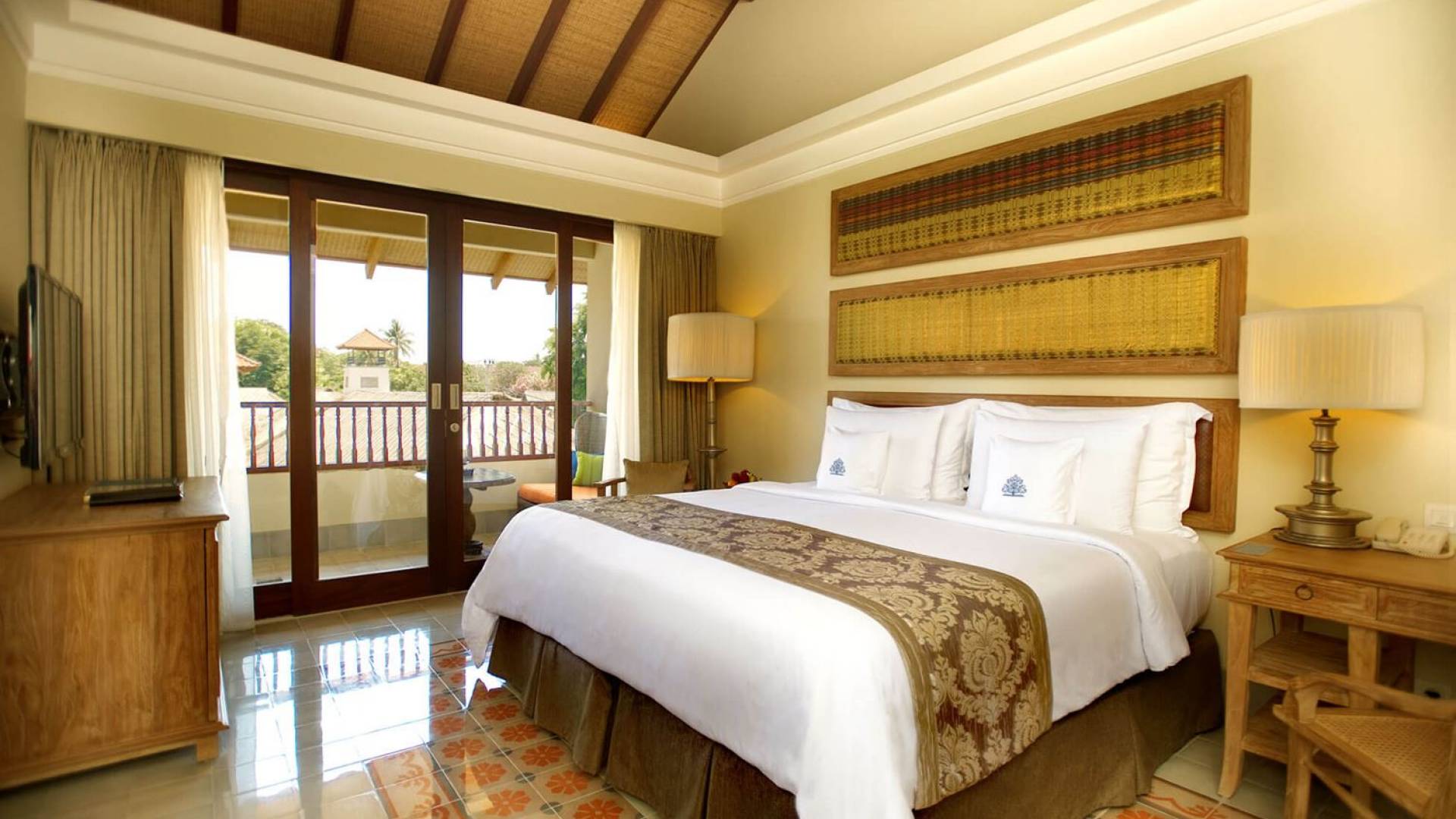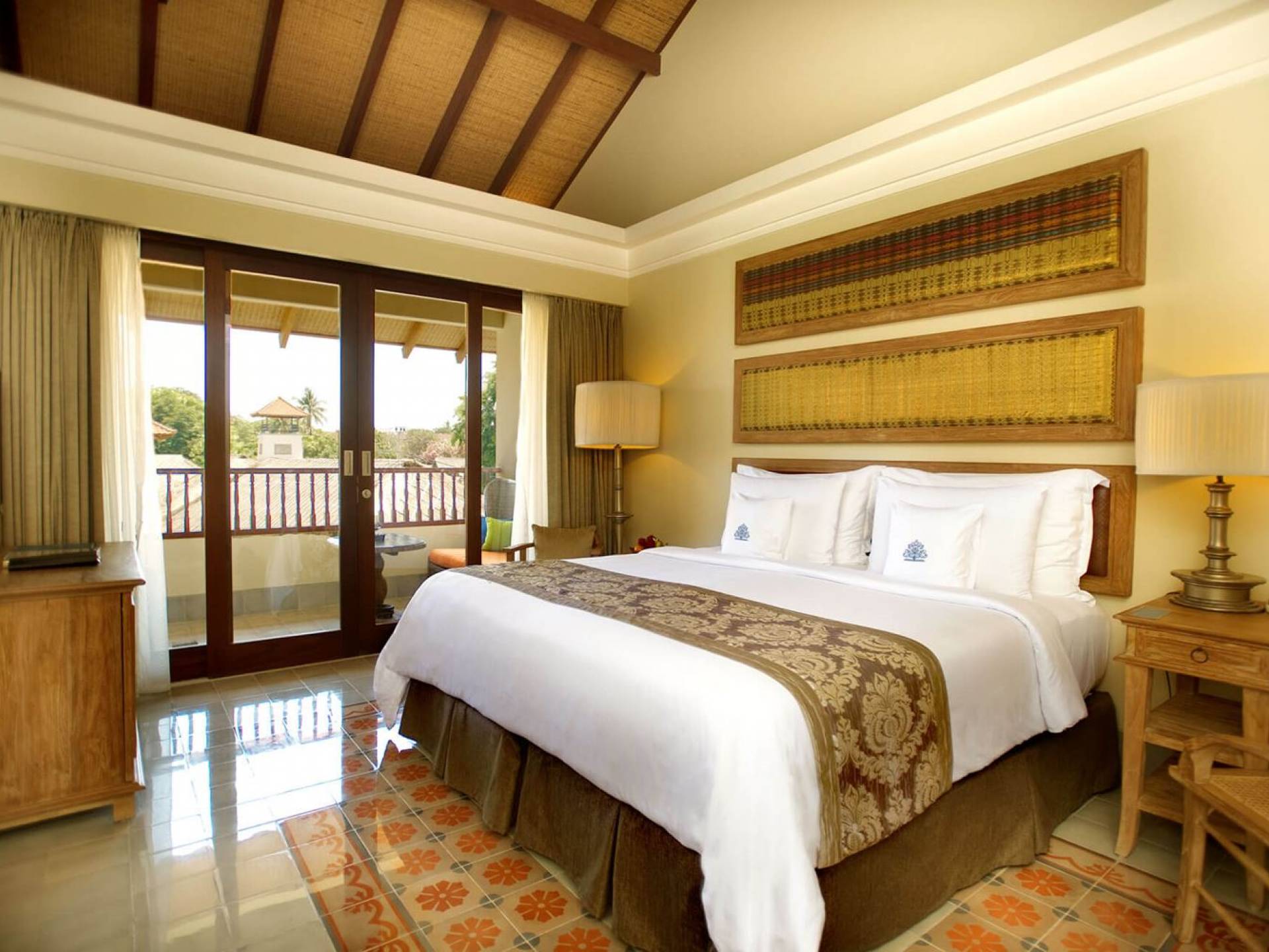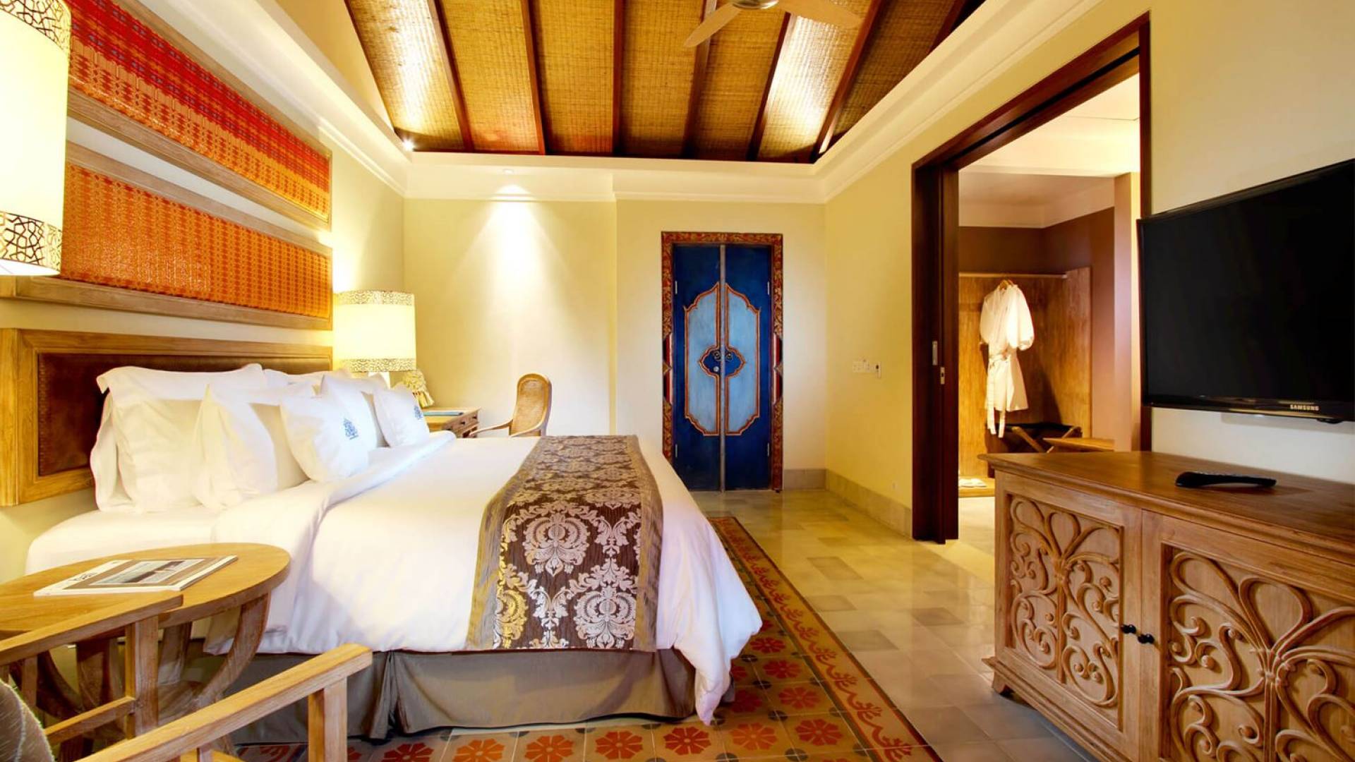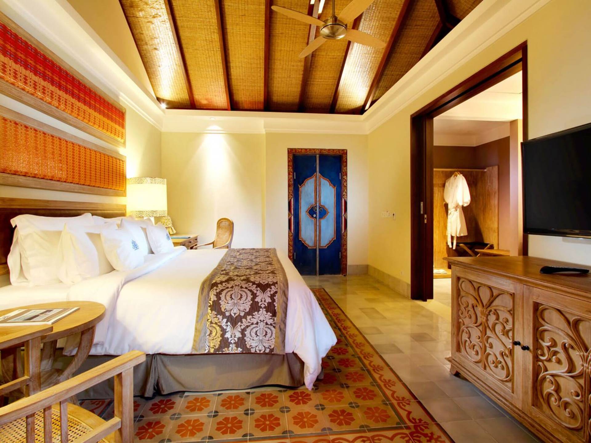 Les suites de luxe offrent une combinaison parfaite de style et de confort avec une touche de culture traditionnelle et le souci du détail que seul un maître artisan accorde. Situées au premier étage, les suites donnent sur la cour centrale luxuriante. Chaque suite mesure environ 42 m² et dispose d'une literie de qualité supérieure, d'une télévision à écran plasma de 43 pouces et d'une douche dans la salle de bain attenante. Chaque suite dispose d'un balcon meublé avec de belles vues sur le jardin.