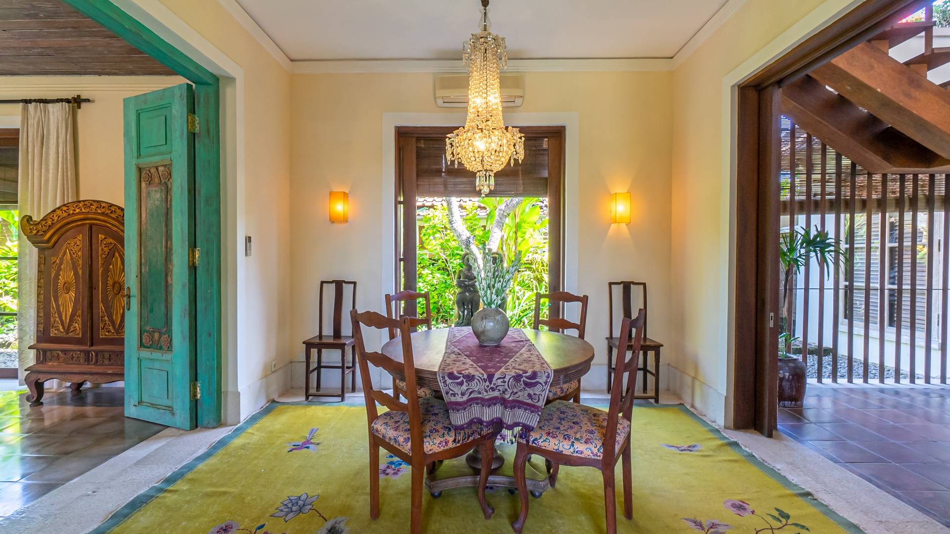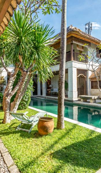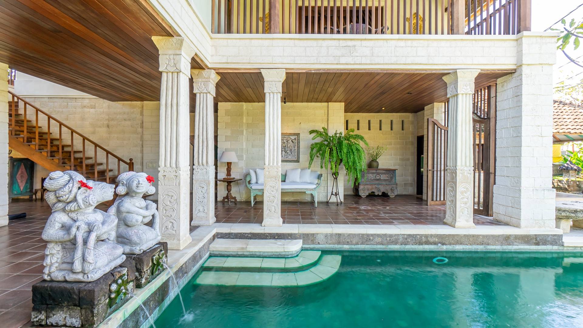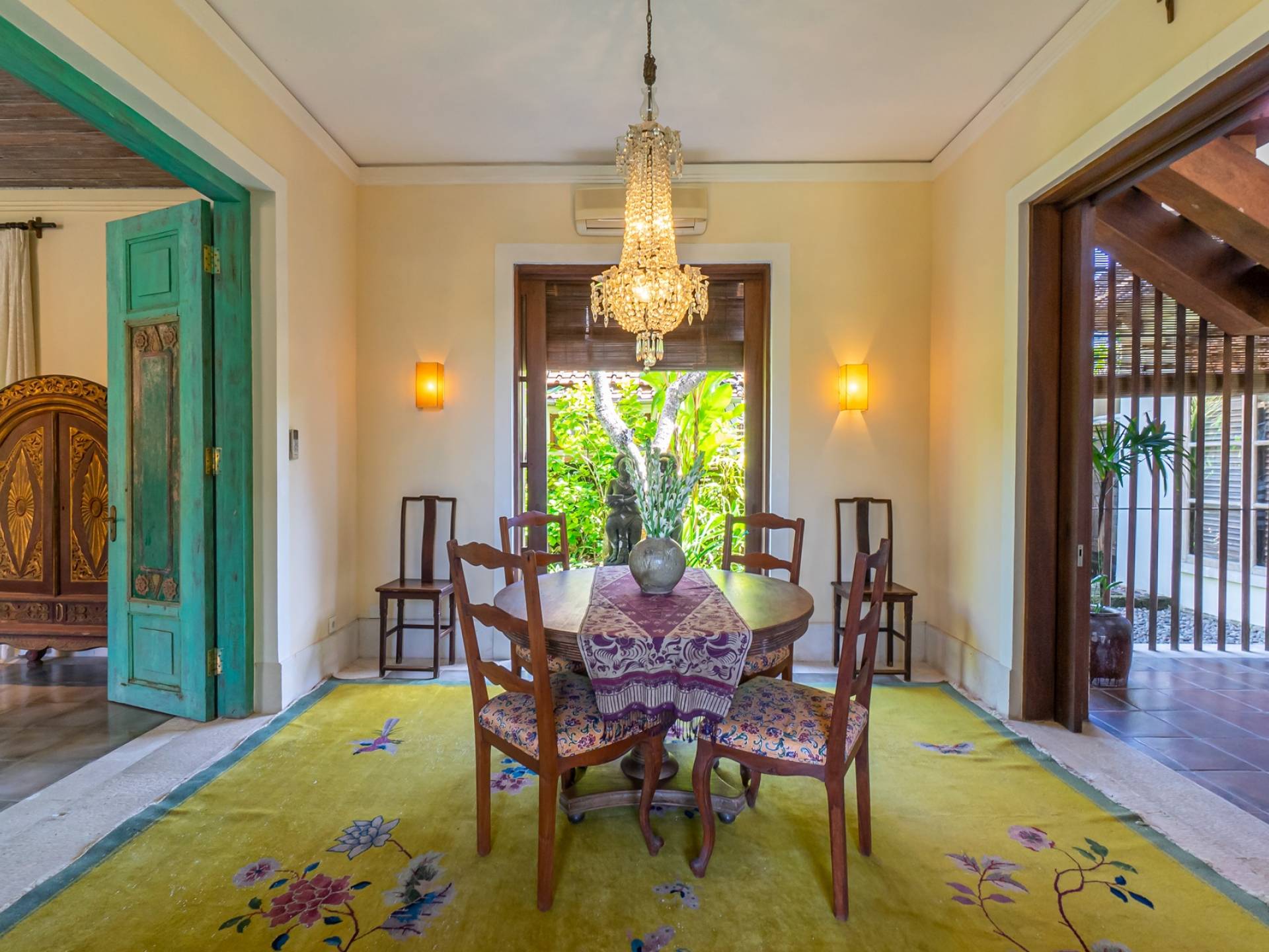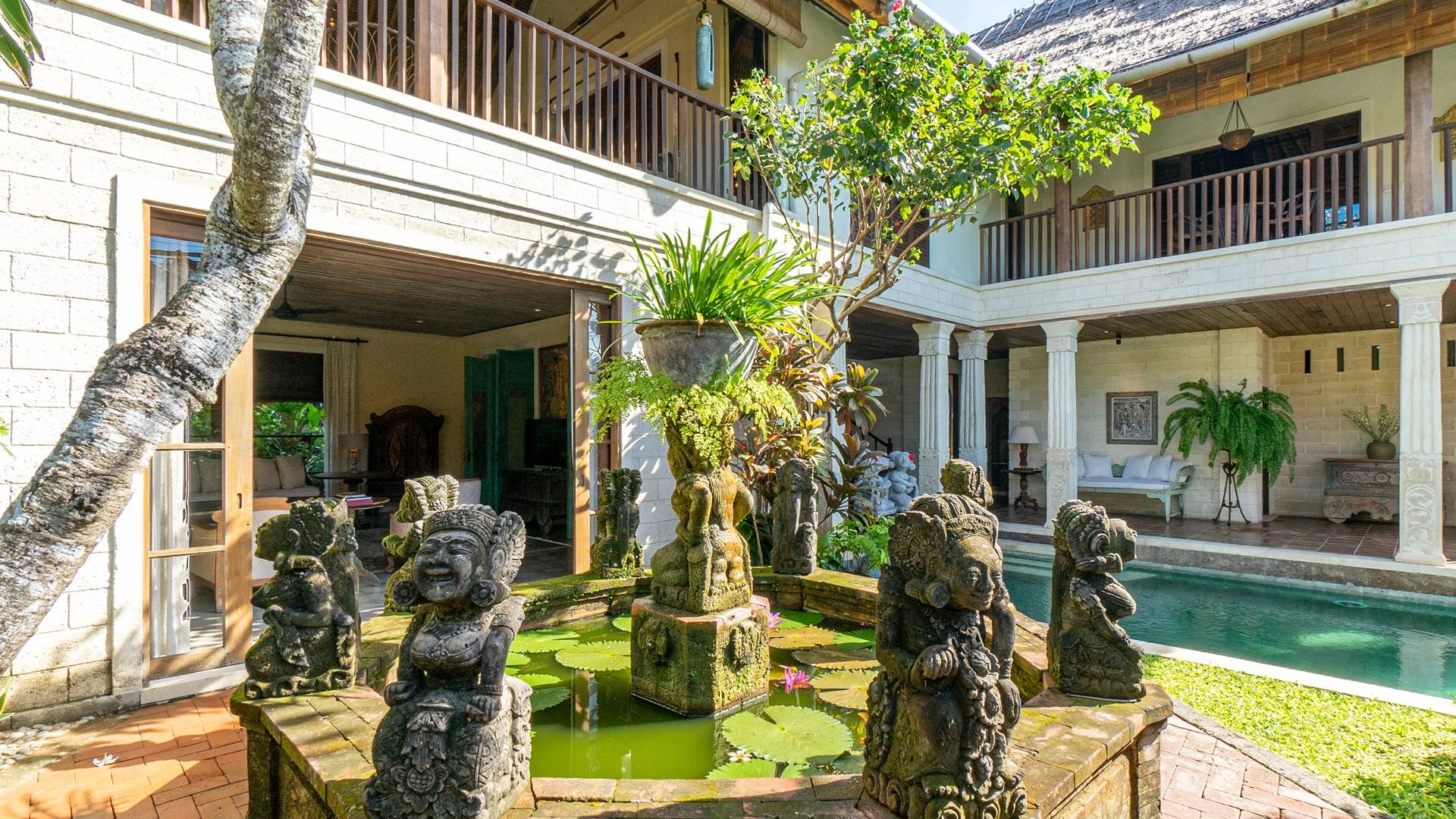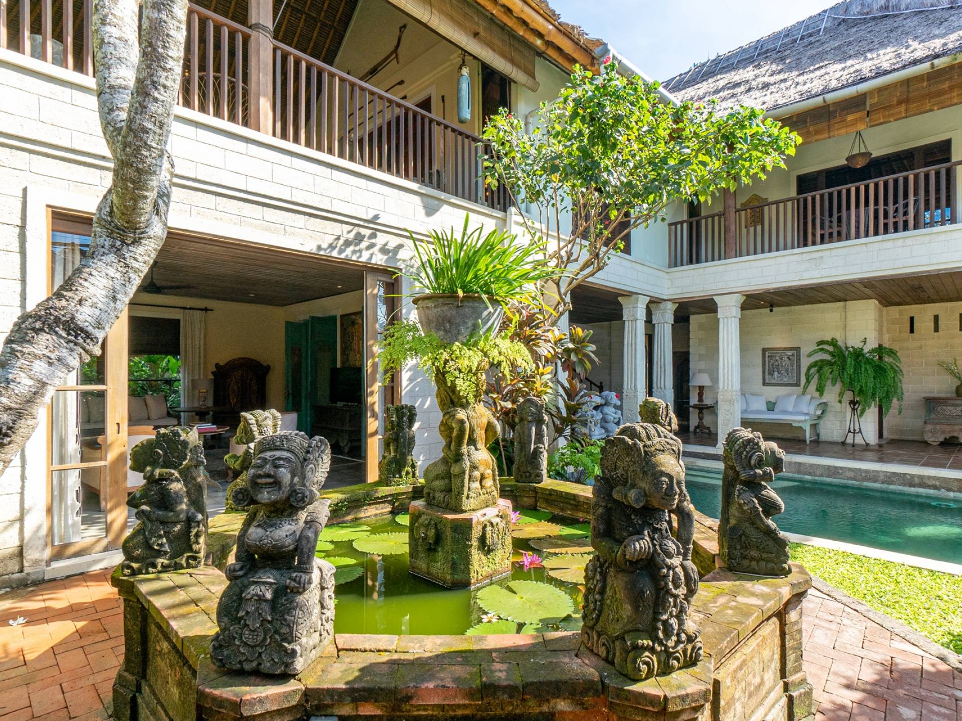 Située dans le quartier tranquille et luxuriant de Sanur, la Villa Angsa est la quintessence de la vie balinaise authentique de la haute société d'un passé lointain, avec un confort moderne et des éléments de design rustique distinctifs partout. Ce complexe fermé dégage un charme sans effort dès que vous arrivez à la porte très ornée. Un haut toit de chaume à aire ouverte favorise un espace aéré avec une lumière naturelle en abondance dans tous les espaces de vie. Les plus belles antiquités, les pièces d'art sont présentes dans chaque pièce à côté de la sculpture sur bois et de la pierre très complexes.
