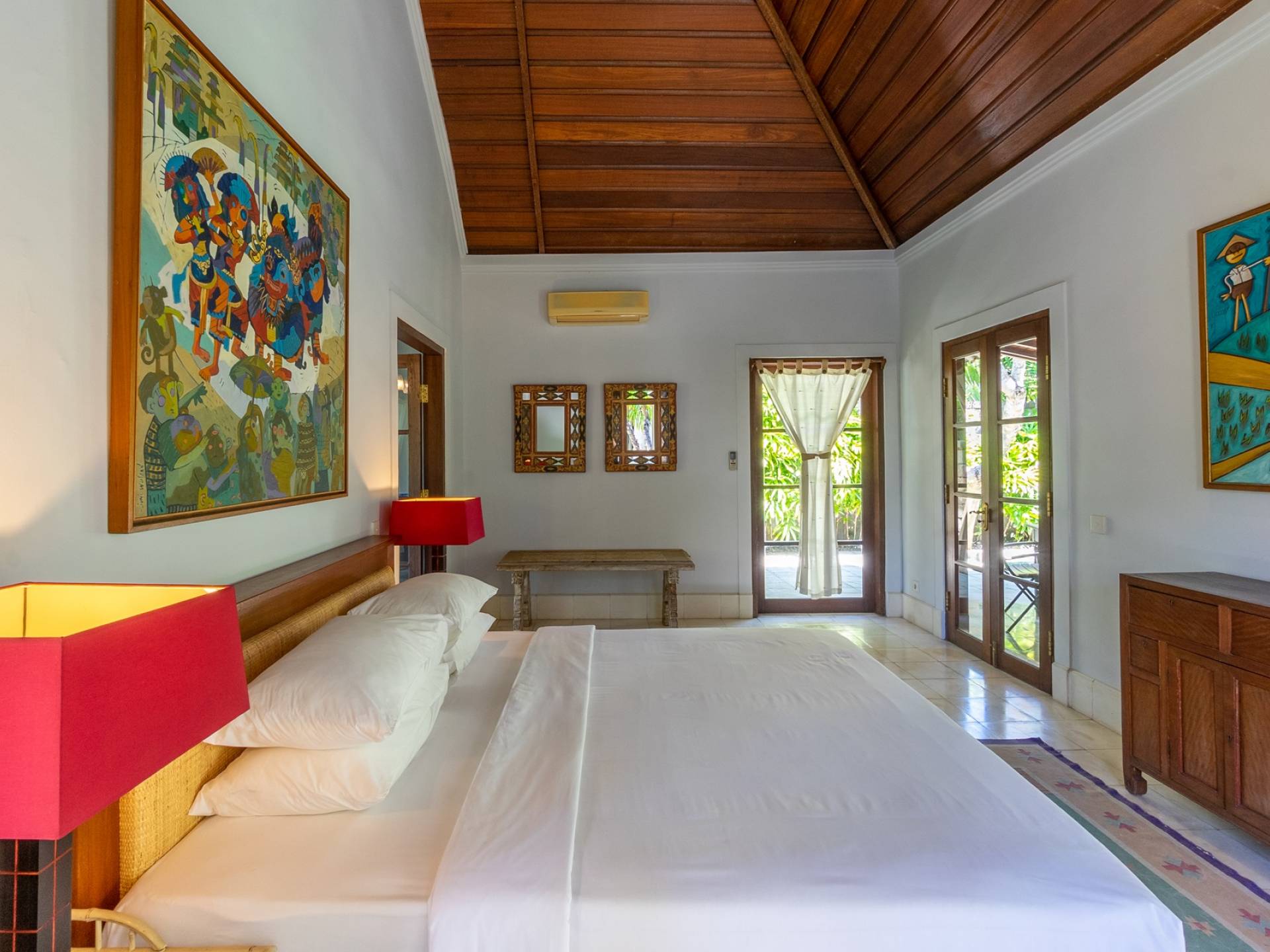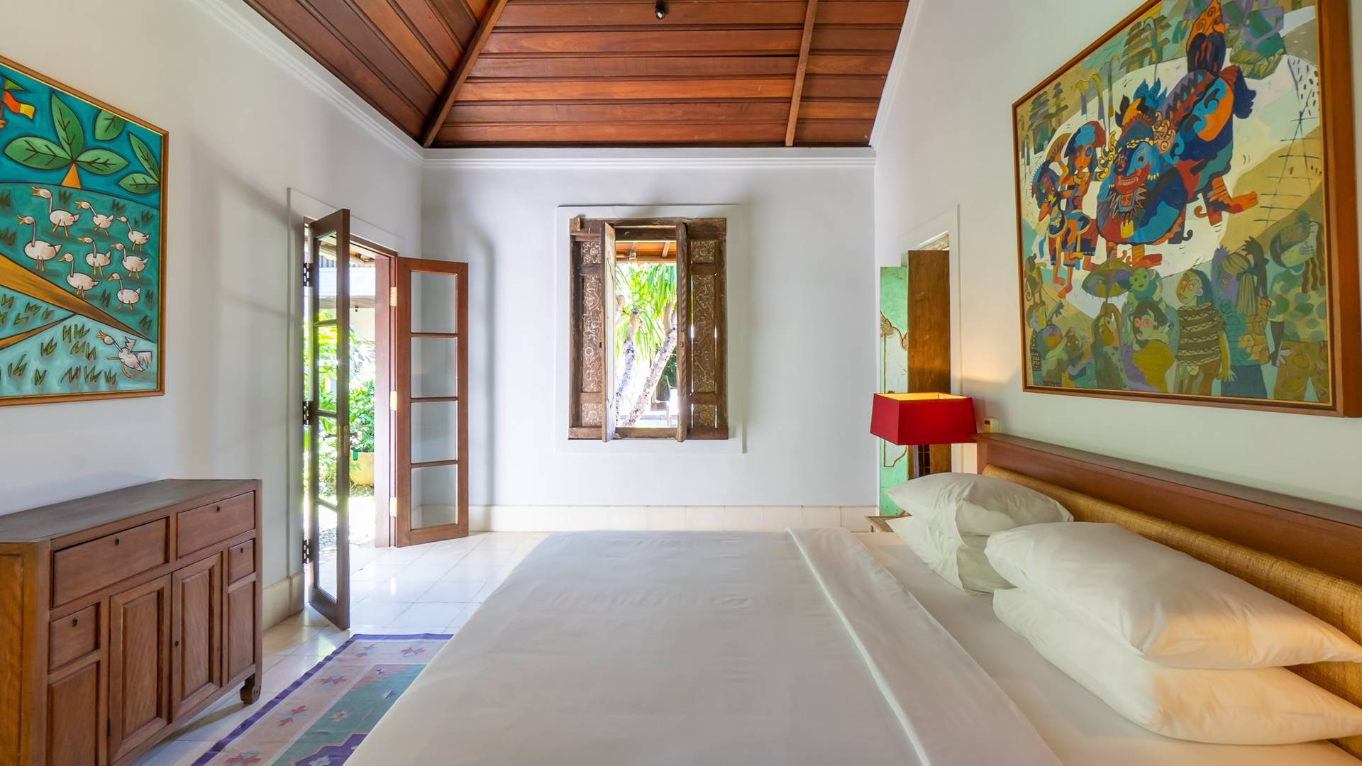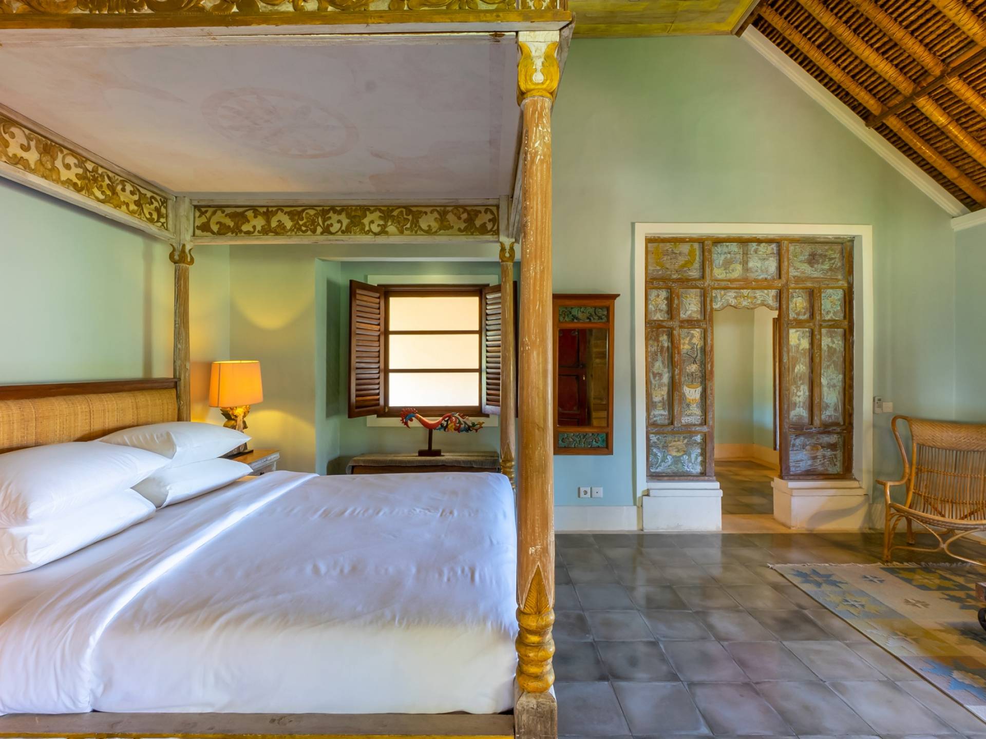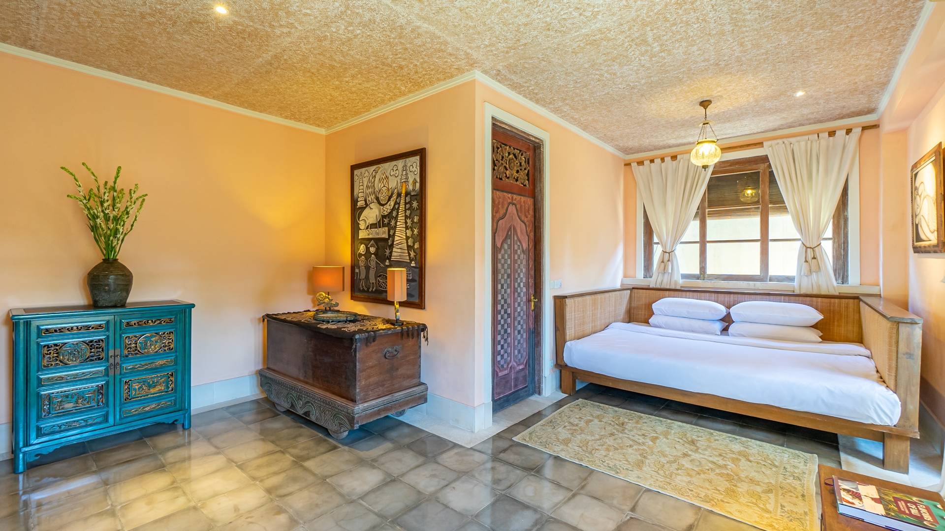 Les quatre chambres de la Villa Angsa ont des lits doubles, trois avec salle de bains et une avec salle de bain séparée, ainsi qu'une armoire et la climatisation. Les deux chambres au rez-de-chaussée sont situées aux coins opposés de la cour pour assurer une intimité totale. La chambre principale présente un luxe rustique inégalé avec un confort opulent. Les deux chambres du dernier étage ont leur propre véranda, l'une s'ouvre sur un grand salon décoré d'œuvres d'art captivantes et de meubles anciens donnant sur la piscine du jardin. Les salles de bains et les douches modernes sont équipées d'équipements de niveau complexe.