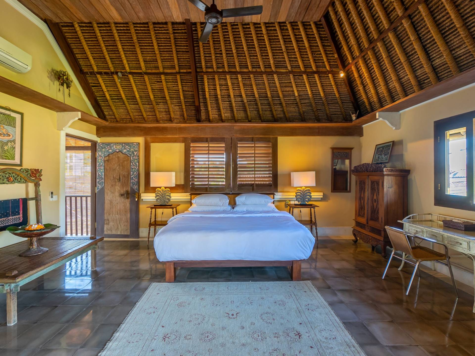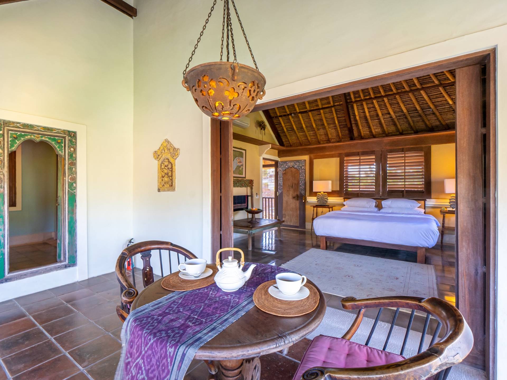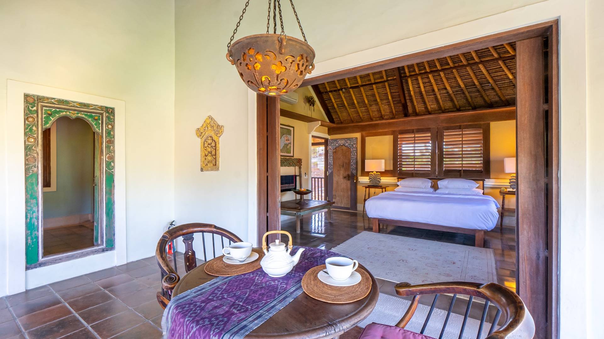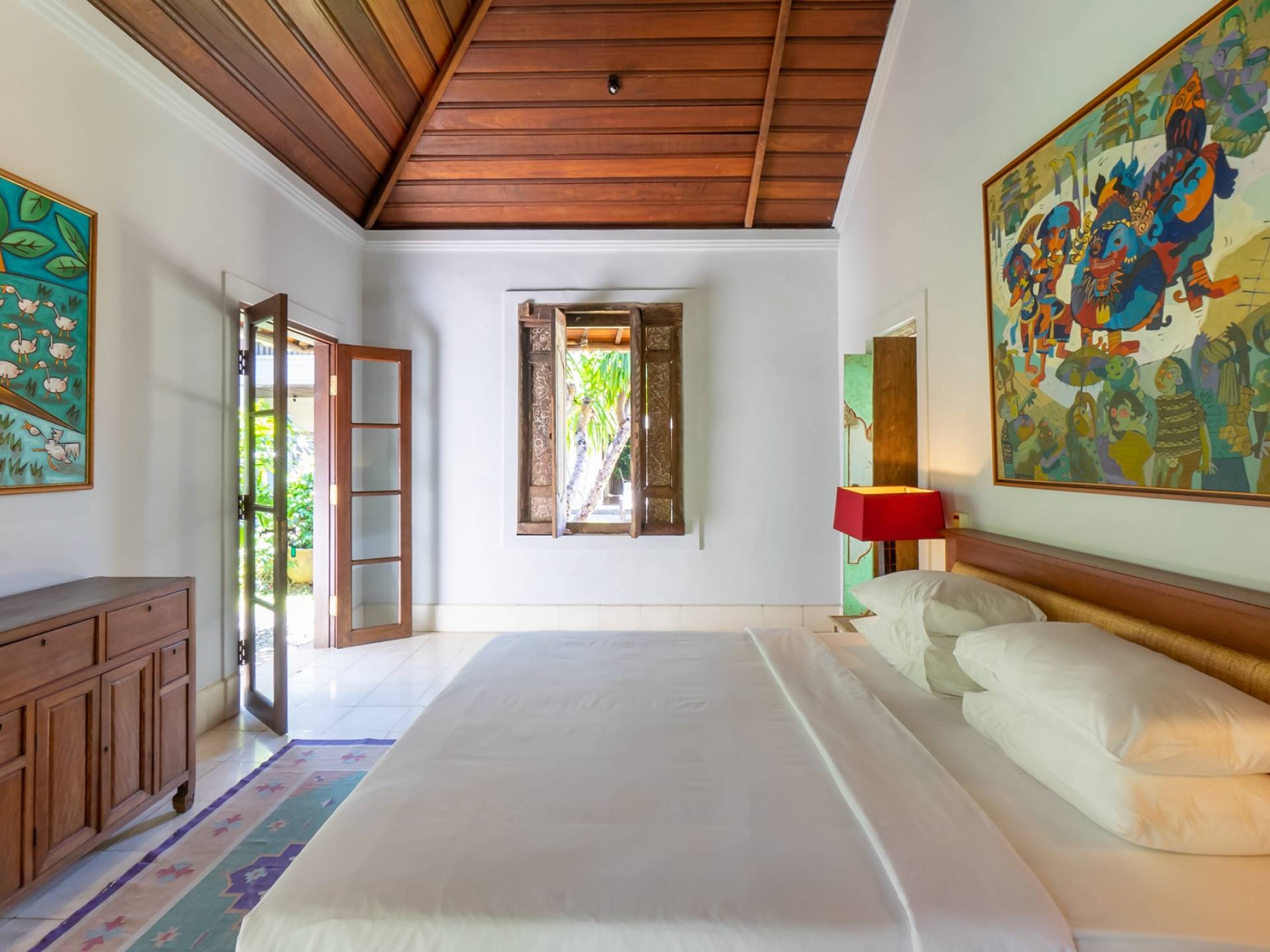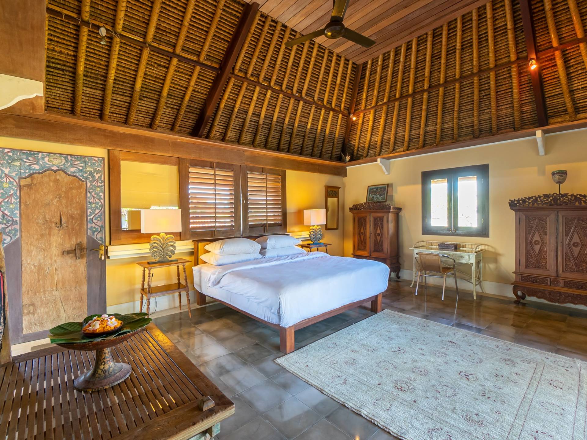 Les quatre chambres de la Villa Angsa ont des lits doubles, trois avec salle de bains et une avec salle de bain séparée, ainsi qu'une armoire et la climatisation. Les deux chambres au rez-de-chaussée sont situées aux coins opposés de la cour pour assurer une intimité totale. La chambre principale présente un luxe rustique inégalé avec un confort opulent. Les deux chambres du dernier étage ont leur propre véranda, l'une s'ouvre sur un grand salon décoré d'œuvres d'art captivantes et de meubles anciens donnant sur la piscine du jardin. Les salles de bains et les douches modernes sont équipées d'équipements de niveau complexe.
