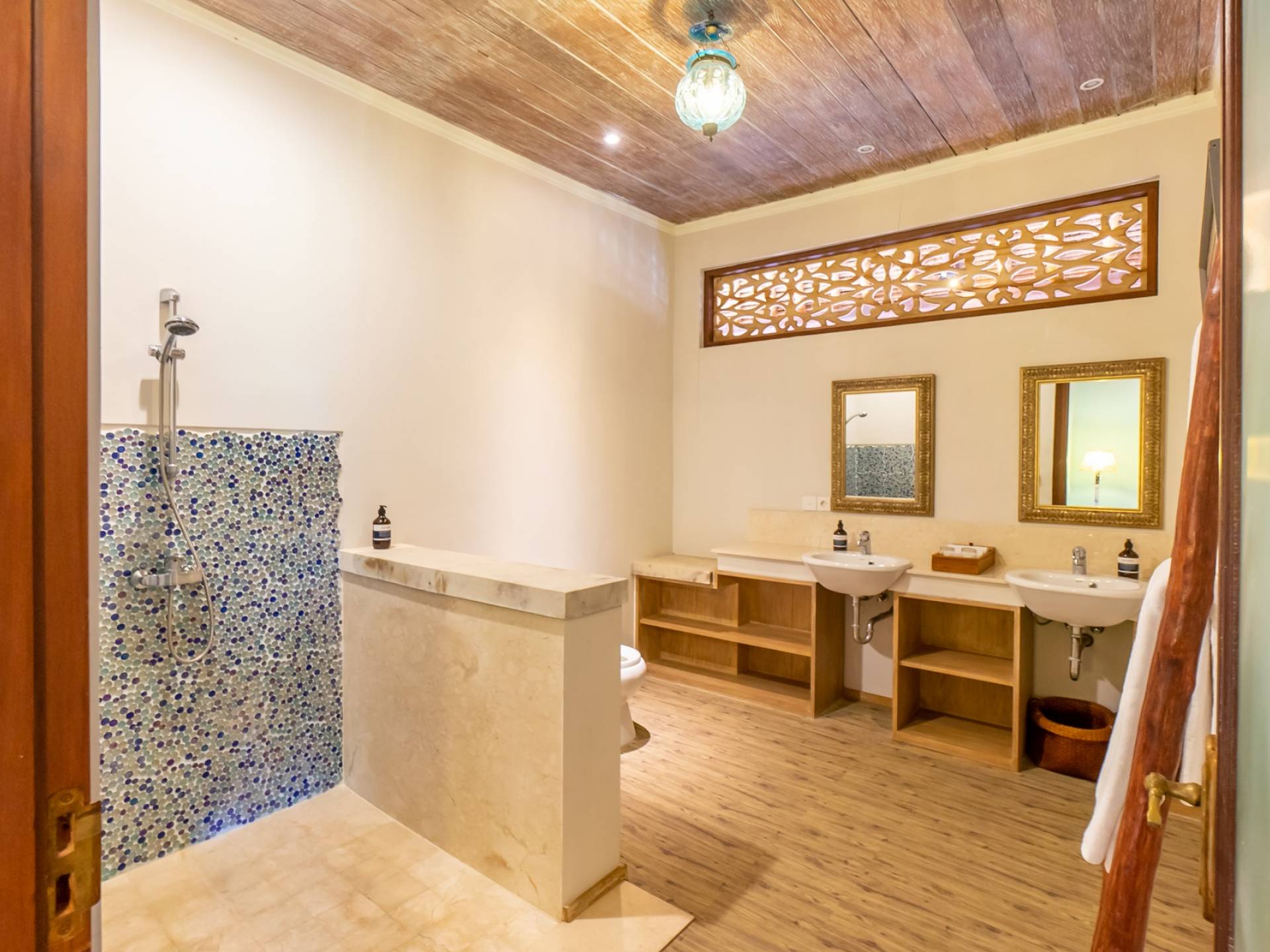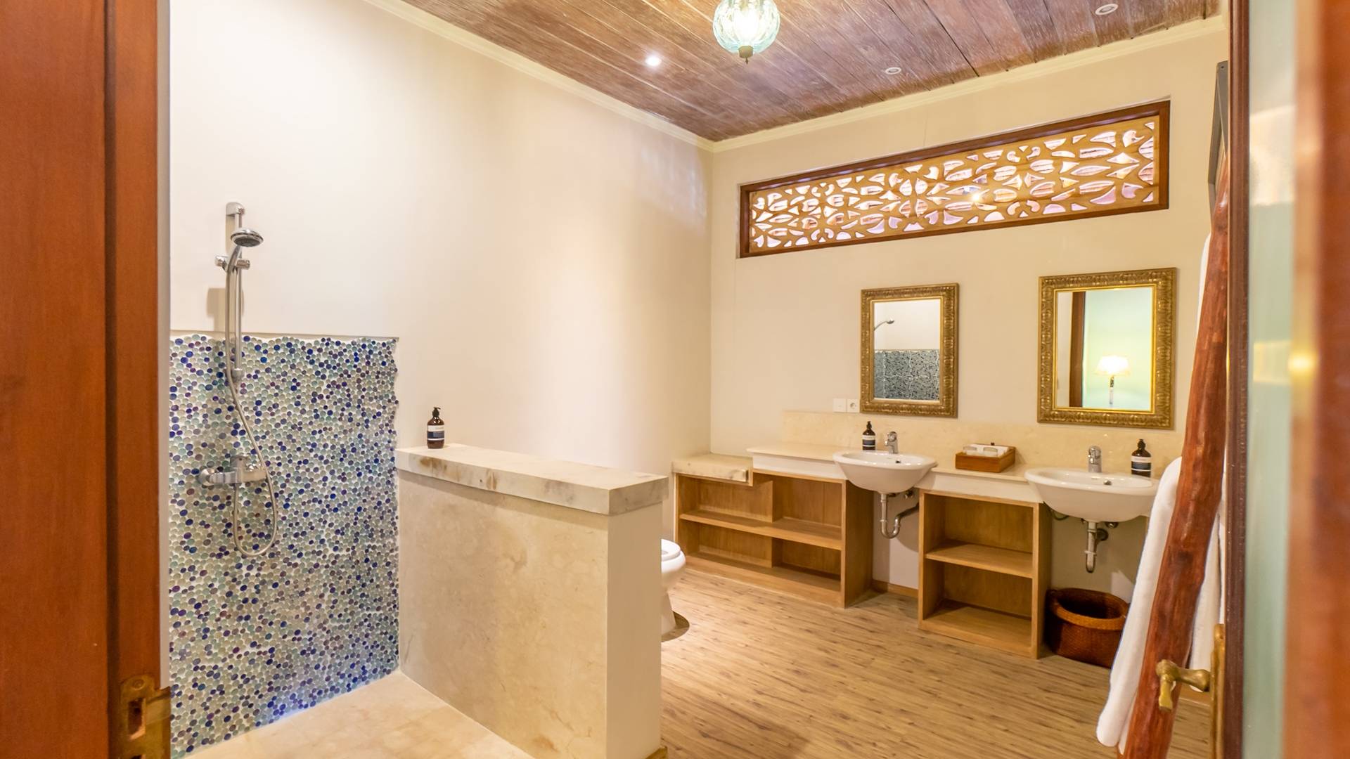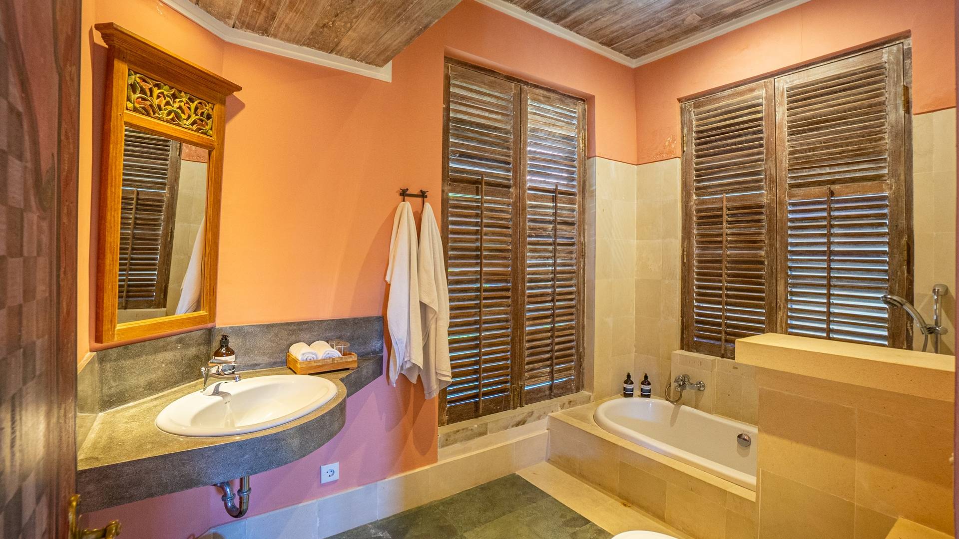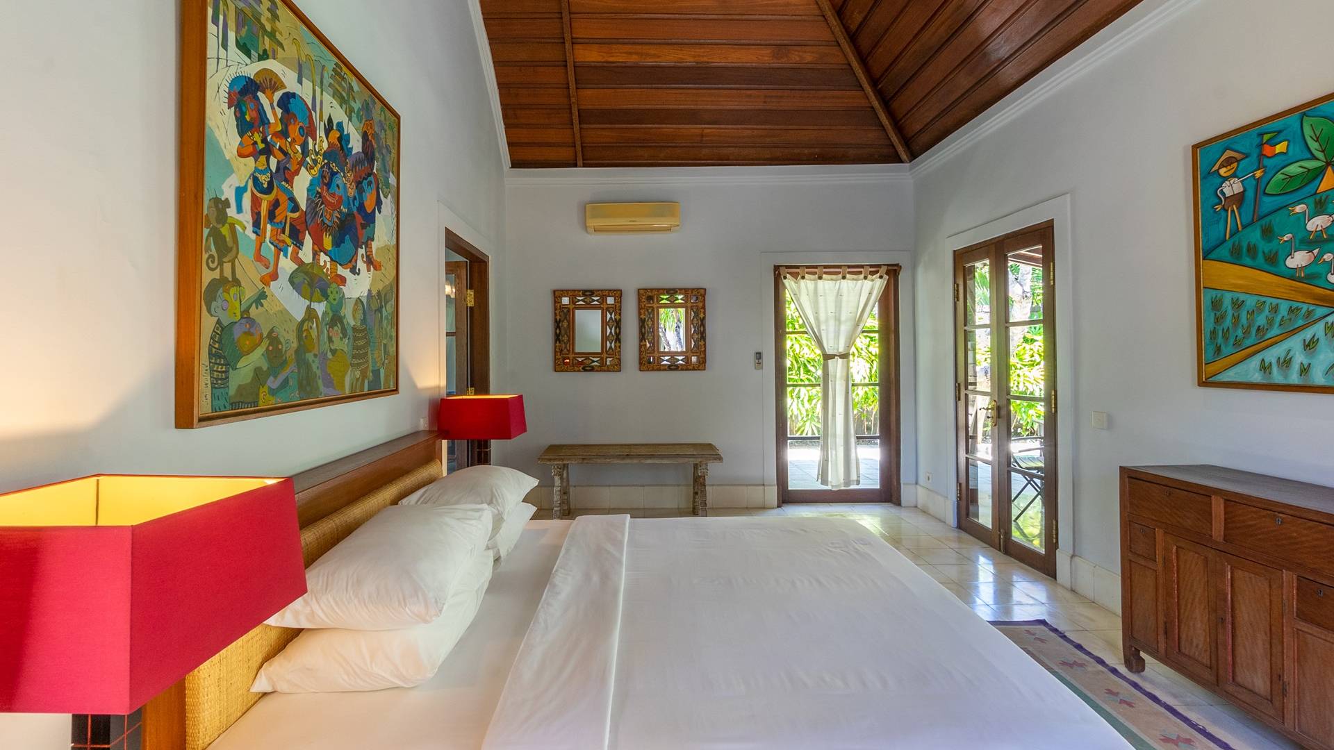 Les quatre chambres de la Villa Angsa ont des lits doubles, trois avec salle de bains et une avec salle de bain séparée, ainsi qu'une armoire et la climatisation. Les deux chambres au rez-de-chaussée sont situées aux coins opposés de la cour pour assurer une intimité totale. La chambre principale présente un luxe rustique inégalé avec un confort opulent. Les deux chambres du dernier étage ont leur propre véranda, l'une s'ouvre sur un grand salon décoré d'œuvres d'art captivantes et de meubles anciens donnant sur la piscine du jardin. Les salles de bains et les douches modernes sont équipées d'équipements de niveau complexe.