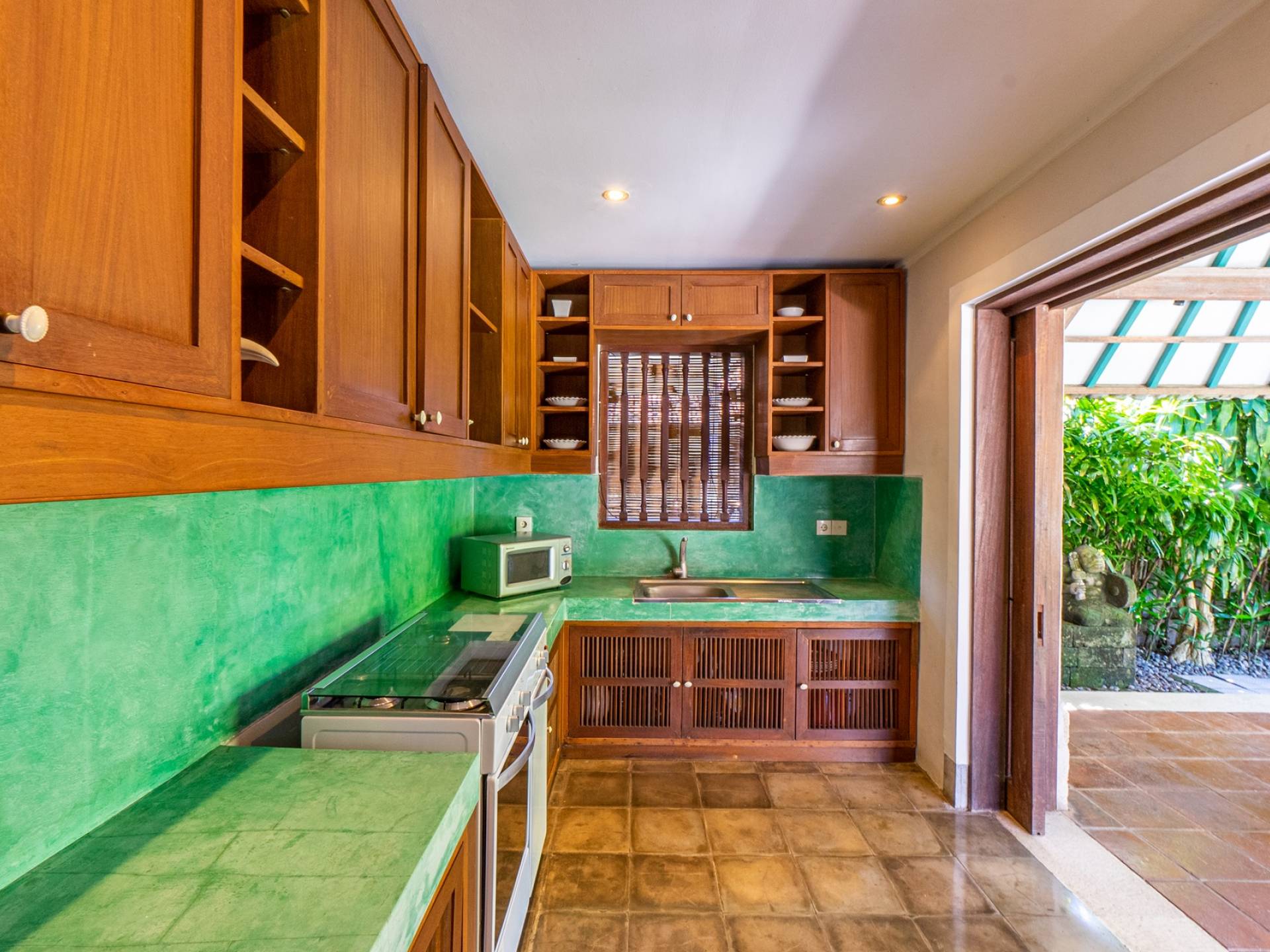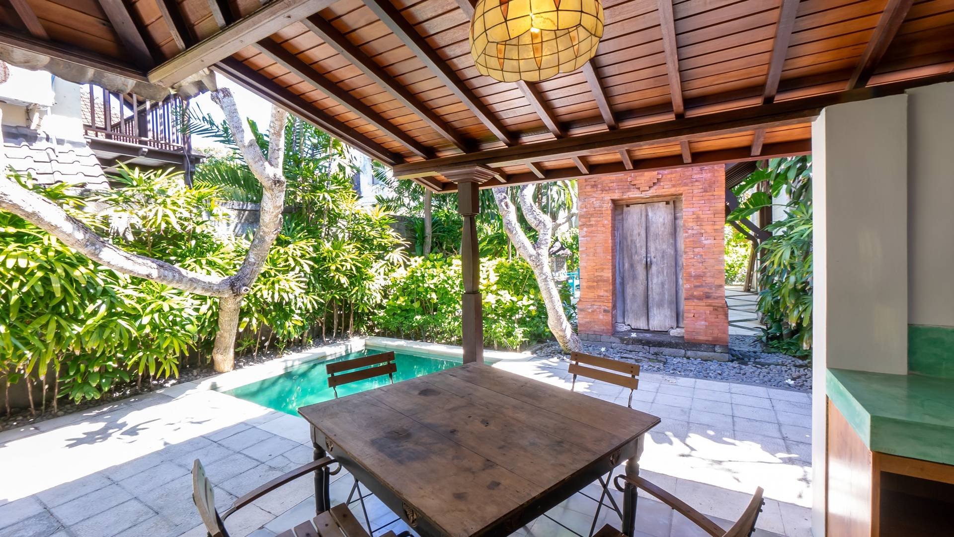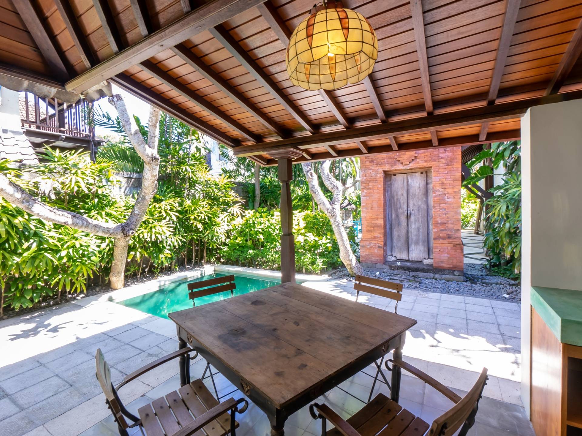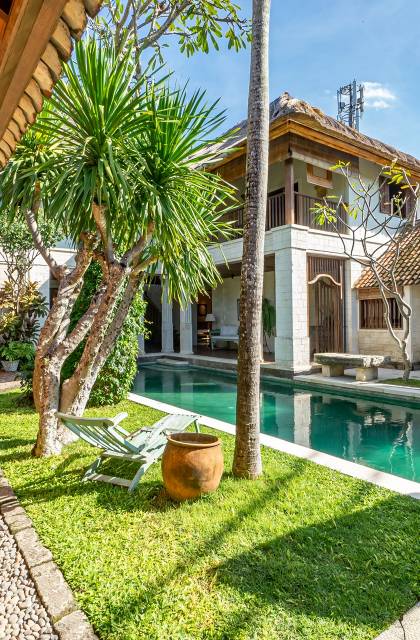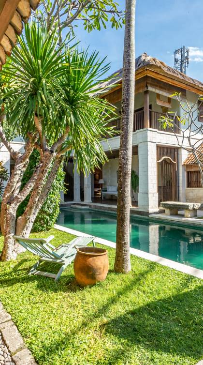 Il y a deux espaces de vie principaux, un à chaque niveau. L'espace au rez-de-chaussée s'ouvre sur une cour en forme de L avec une piscine extérieure adjacente à une impressionnante fontaine d'eau Stoney. La cuisine et la salle à manger sont séparées et bien espacées. Le jardin luxuriant présente des plantes indigènes dans toutes leurs variétés et utilise des pierres naturelles entourant un jacuzzi extérieur. Mertasari Beach, un lieu de prédilection local, est à 3 minutes à pied. Ubud et Simpang Siur sont à une courte distance en voiture. Ce dernier vous emmène à Kuta, Seminyak, Nusa Dua, Jimbaran et l'aéroport international Ngurah Rai.