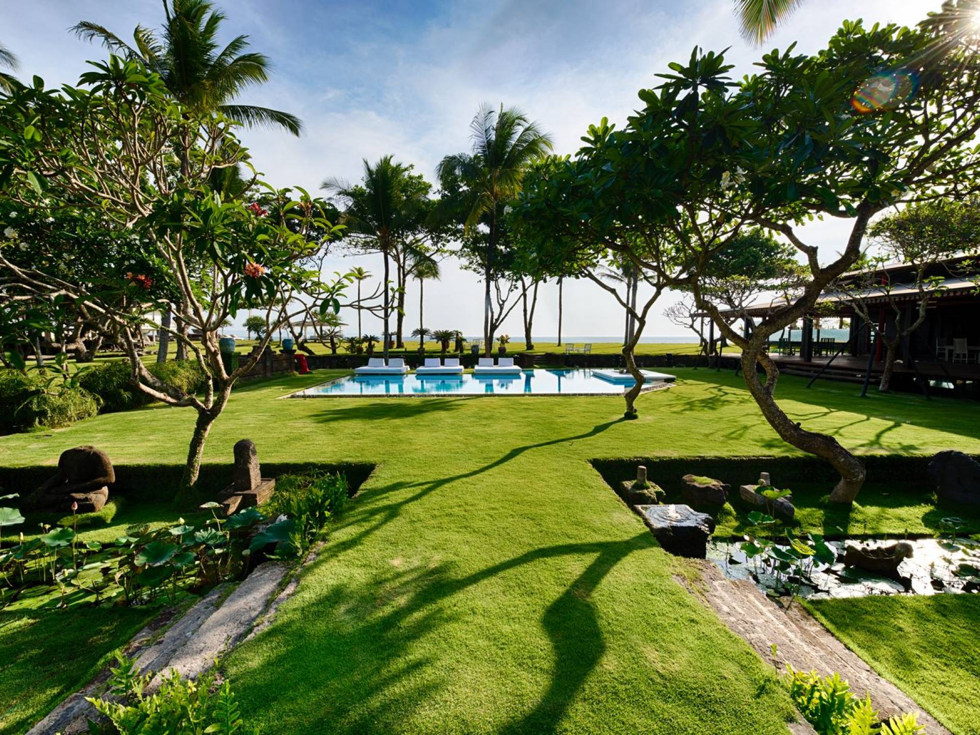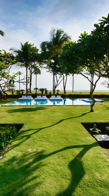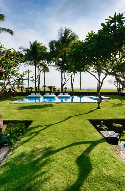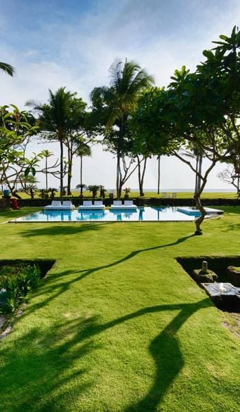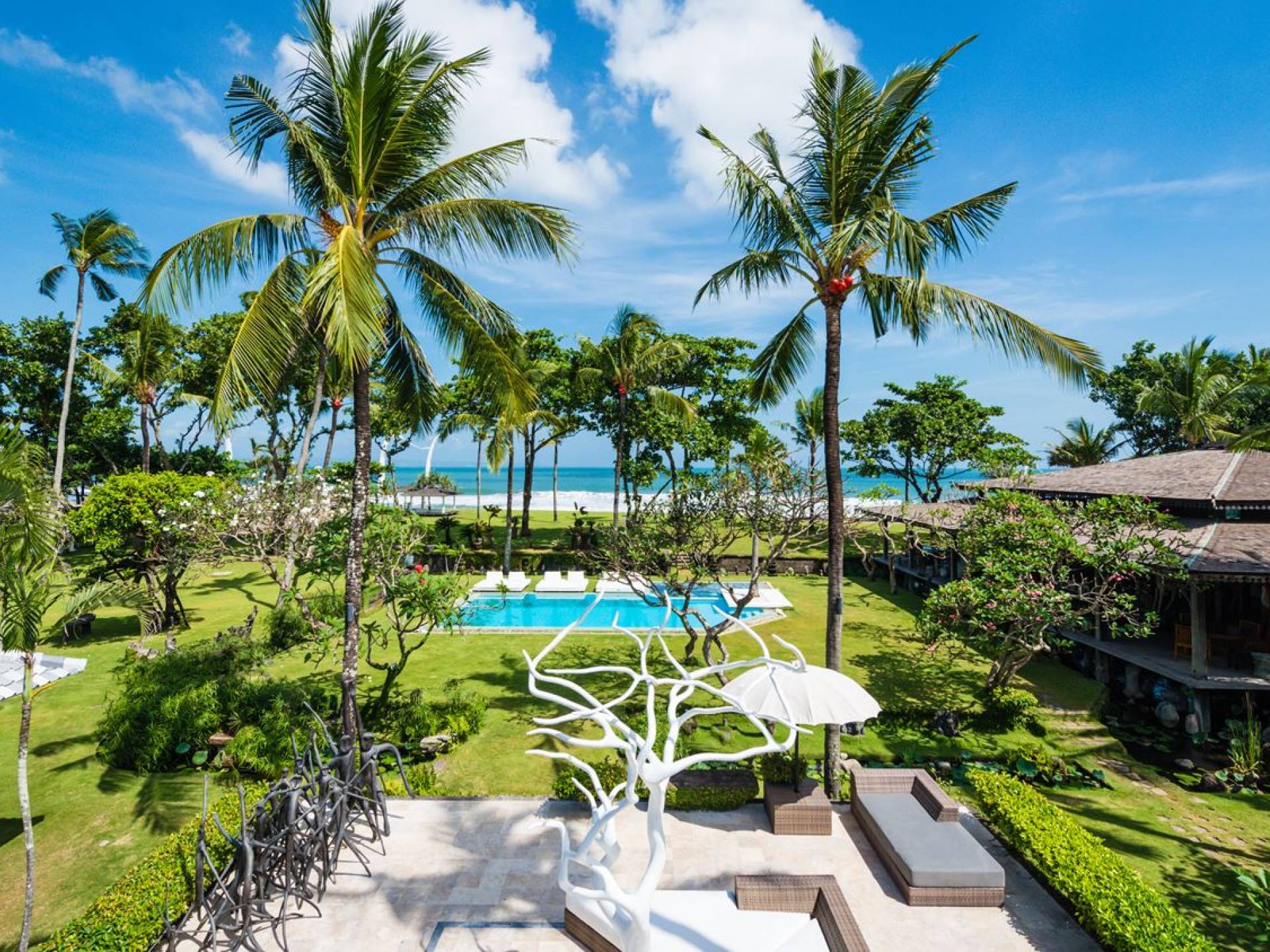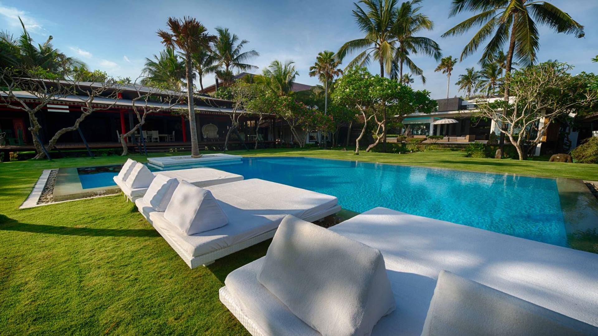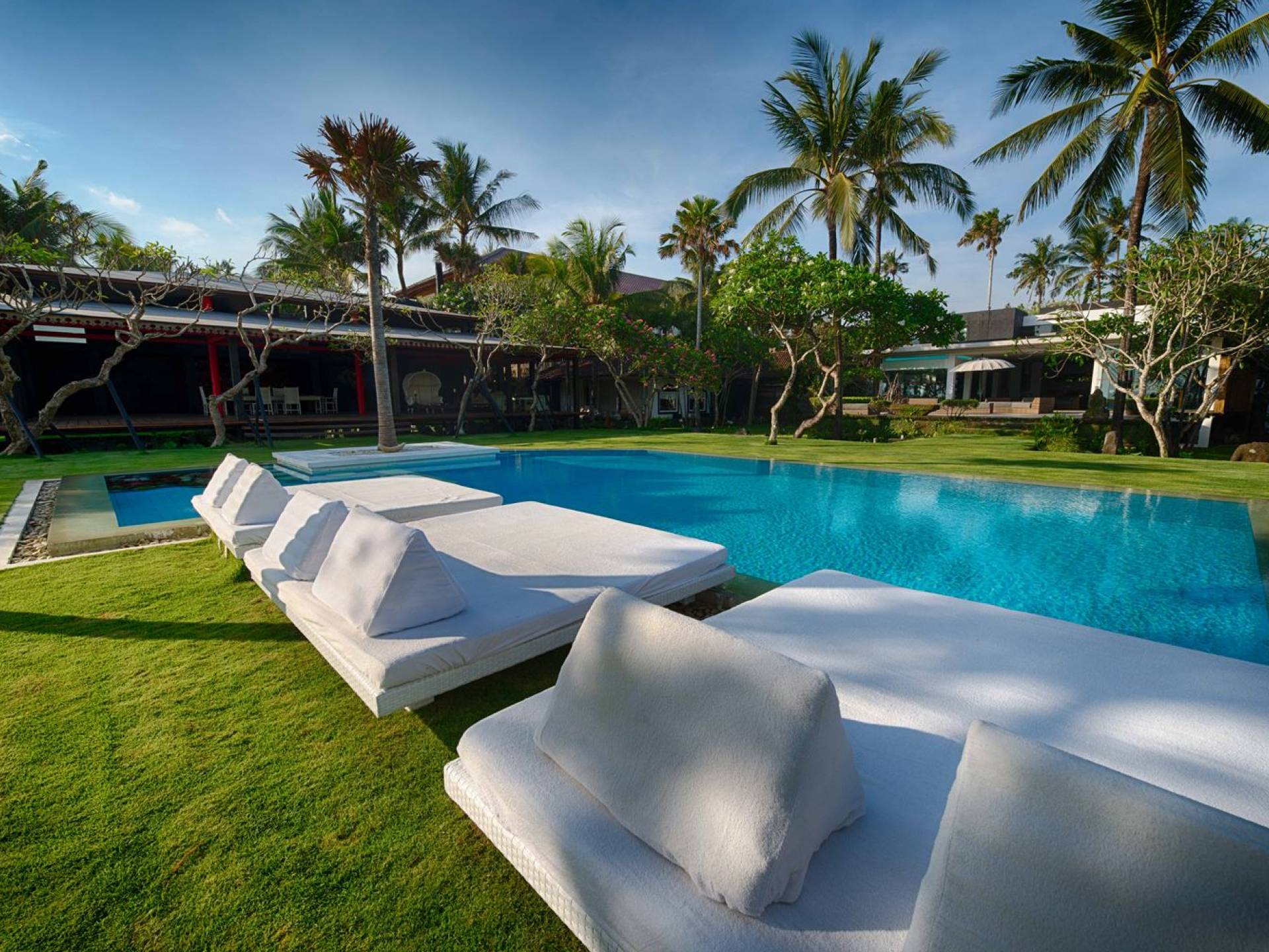 Séjournez dans cette villa de designer en bord de mer à Canggu et vous ne saurez pas ce qui vous a frappé ! Pascal Morabito est un designer français et c'est ce designer incroyablement talentueux qui a conçu et décoré lui-même cette retraite sur la plage. Le domaine dispose d'un immense jardin en bord de mer et au total, il y a 4 piscines sur la propriété. Morabito Art Villa abrite un total de 14 chambres et se prête parfaitement aux mariages, célébrations, retraites et événements spéciaux. S'étendant sur 1 hectare de terres tropicales de premier ordre surplombant l'océan, Morabito Art Villa regorge de lieux de détente, de salons et de restaurants, à l'intérieur et en plein air. La vaste cour est parfaitement entretenue et plantée de palmiers et de verdure tropicale. Des belvédères et des sièges sont situés juste à l'endroit où la cour rencontre la plage de sable, pour siroter ces cocktails au coucher du soleil et contempler l'horizon où le soleil disparaît, colorant le monde dans des tons d'orange, de rouge et de violet. Au cœur du jardin scintille la piscine principale, entourée d'herbe et flanquée de méridiennes blanches au bord de la piscine pour lire et bronzer sous le ciel bleu clair.