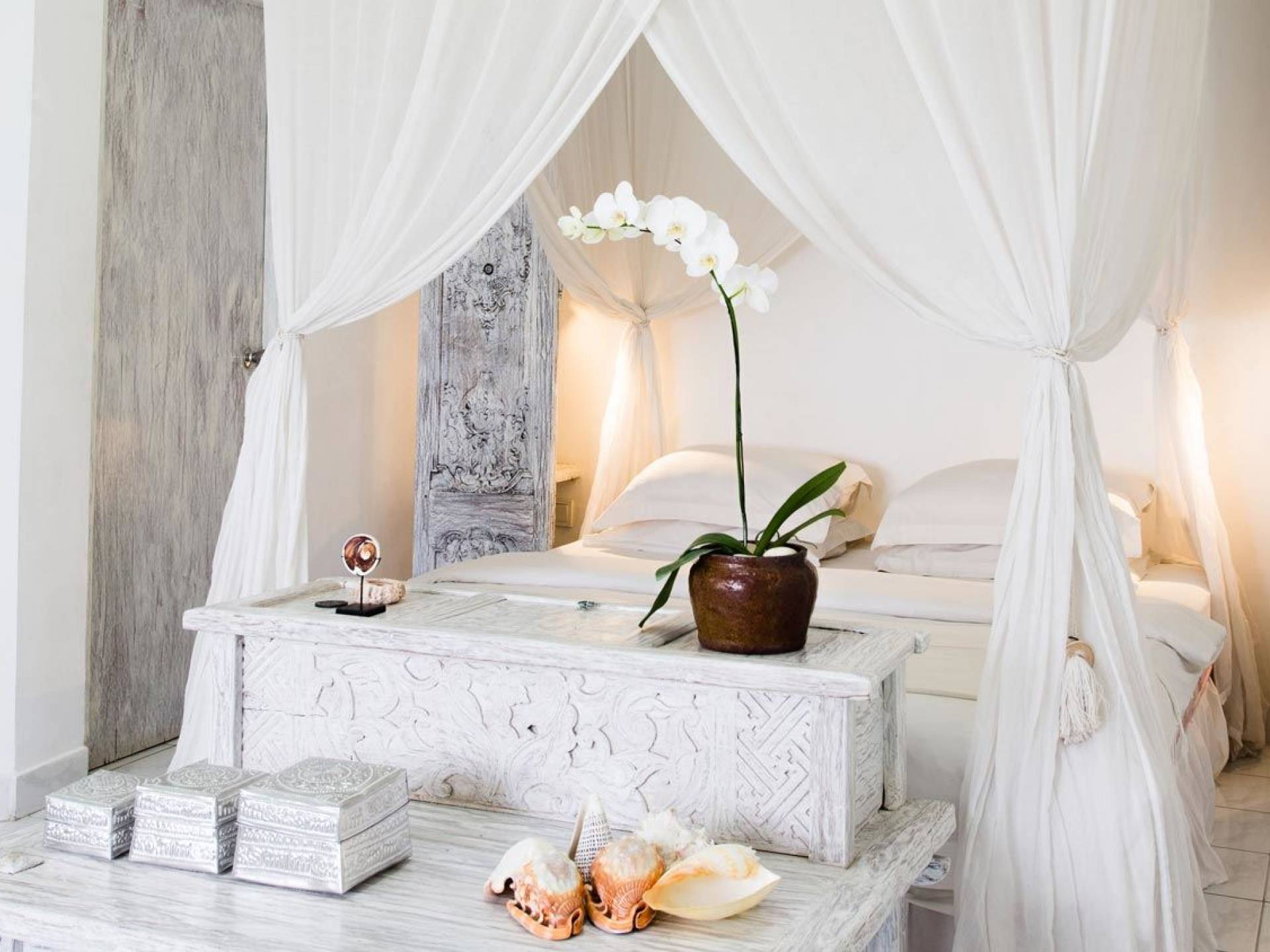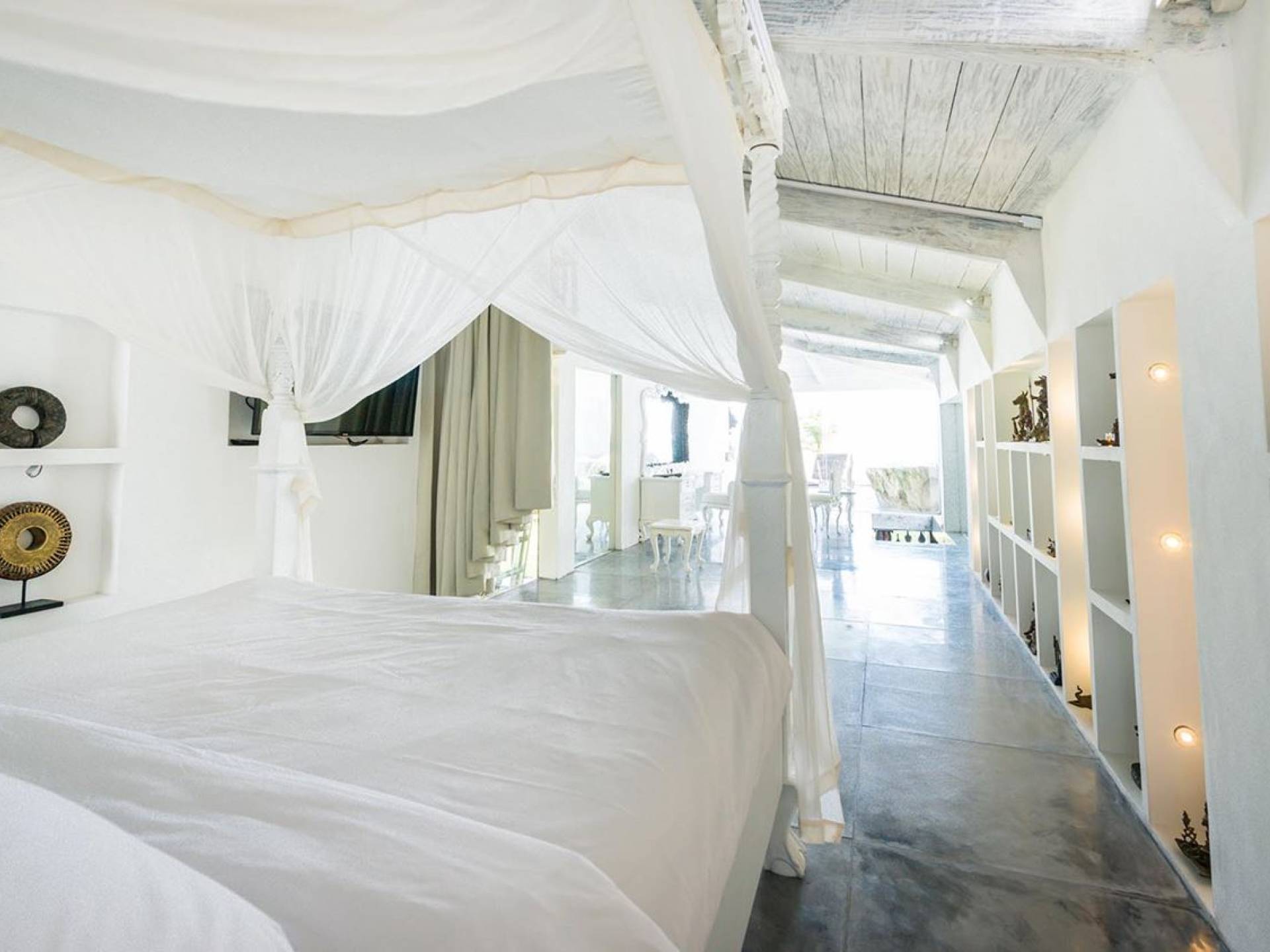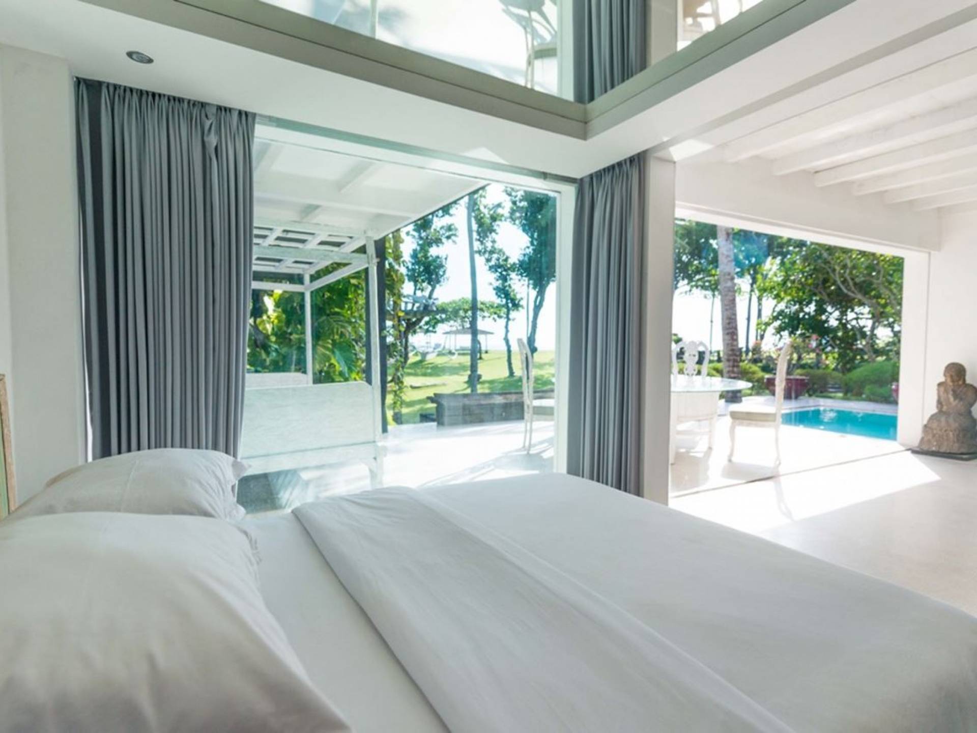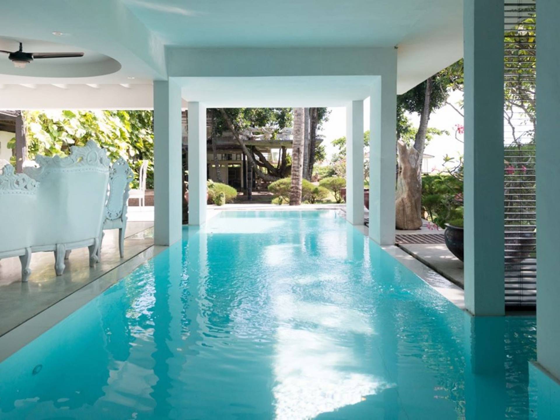 Séjournez dans cette villa de designer en bord de mer à Canggu et vous ne saurez pas ce qui vous a frappé ! Pascal Morabito est un designer français et c'est ce designer incroyablement talentueux qui a conçu et décoré lui-même cette retraite sur la plage. Le domaine dispose d'un immense jardin en bord de mer et au total, il y a 4 piscines sur la propriété. Morabito Art Villa abrite un total de 14 chambres et se prête parfaitement aux mariages, célébrations, retraites et événements spéciaux. S'étendant sur 1 hectare de terres tropicales de premier ordre surplombant l'océan, Morabito Art Villa regorge de lieux de détente, de salons et de restaurants, à l'intérieur et en plein air. La vaste cour est parfaitement entretenue et plantée de palmiers et de verdure tropicale. Des belvédères et des sièges sont situés juste à l'endroit où la cour rencontre la plage de sable, pour siroter ces cocktails au coucher du soleil et contempler l'horizon où le soleil disparaît, colorant le monde dans des tons d'orange, de rouge et de violet. Au cœur du jardin scintille la piscine principale, entourée d'herbe et flanquée de méridiennes blanches au bord de la piscine pour lire et bronzer sous le ciel bleu clair.
