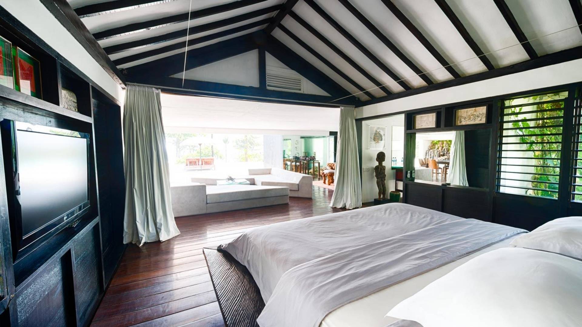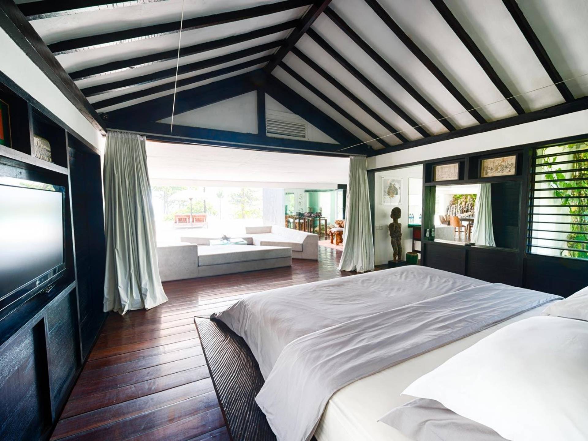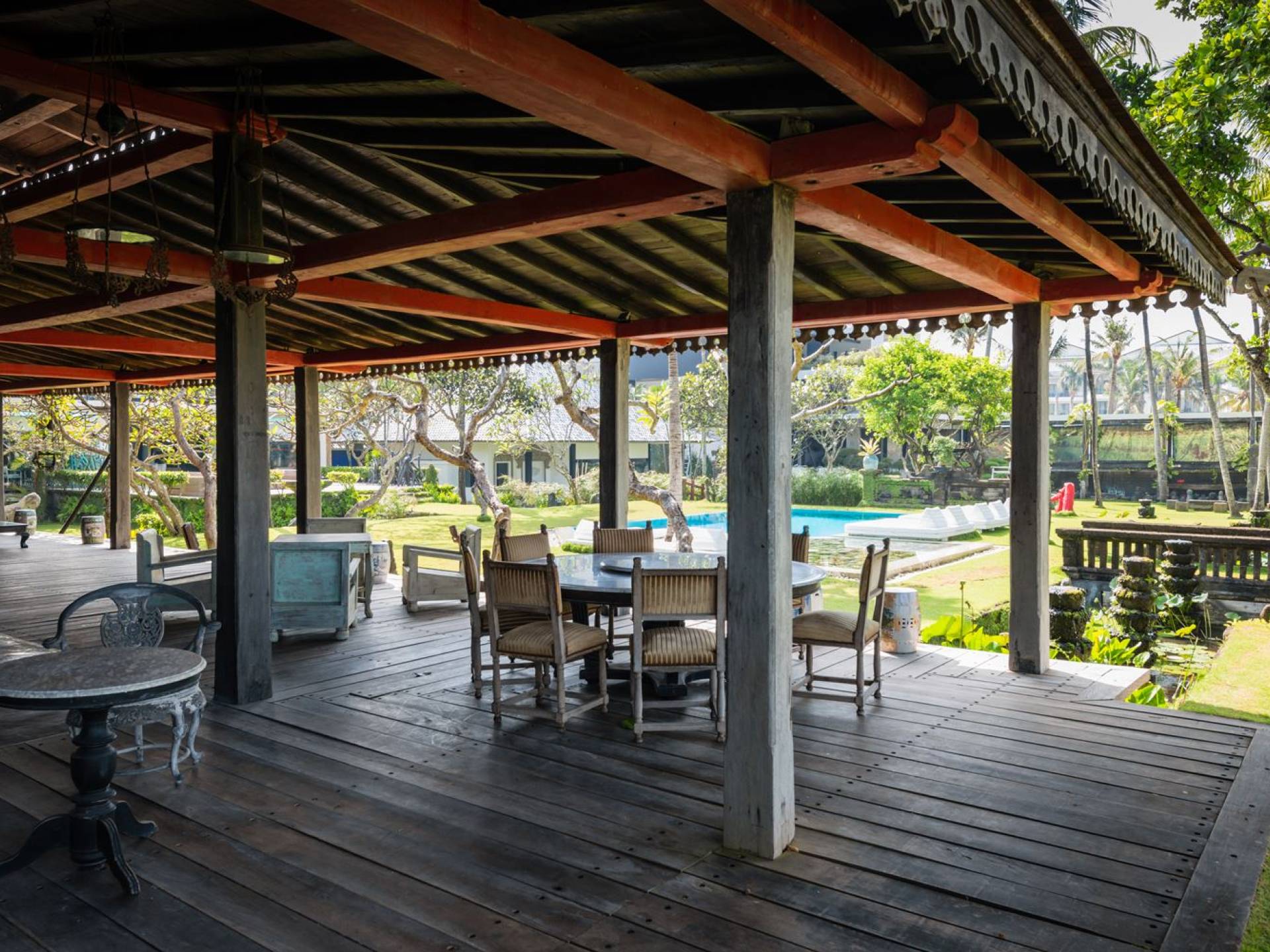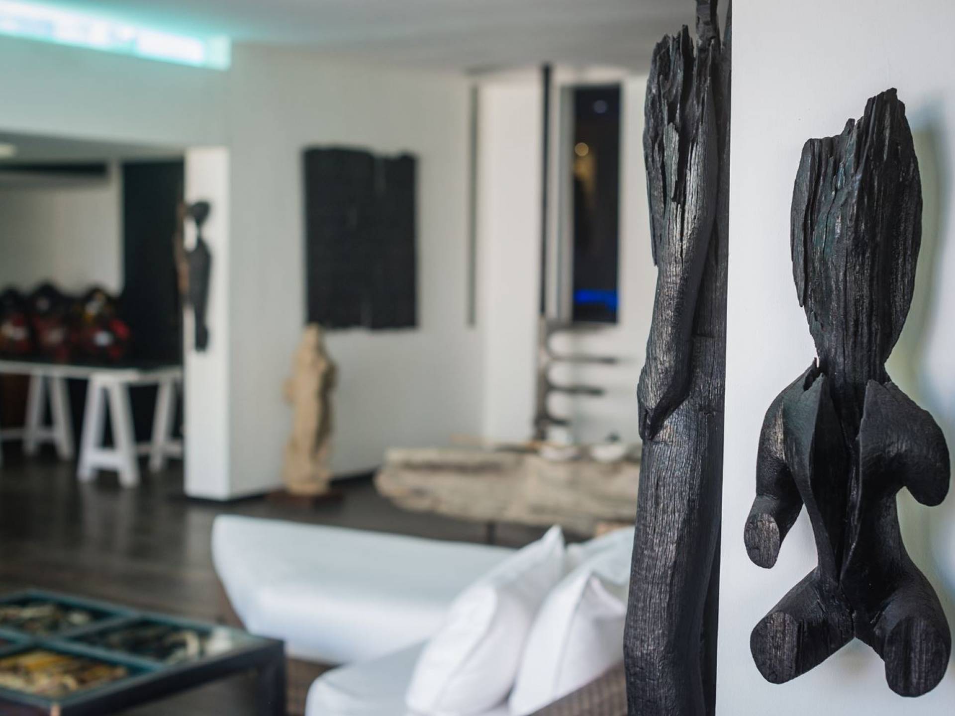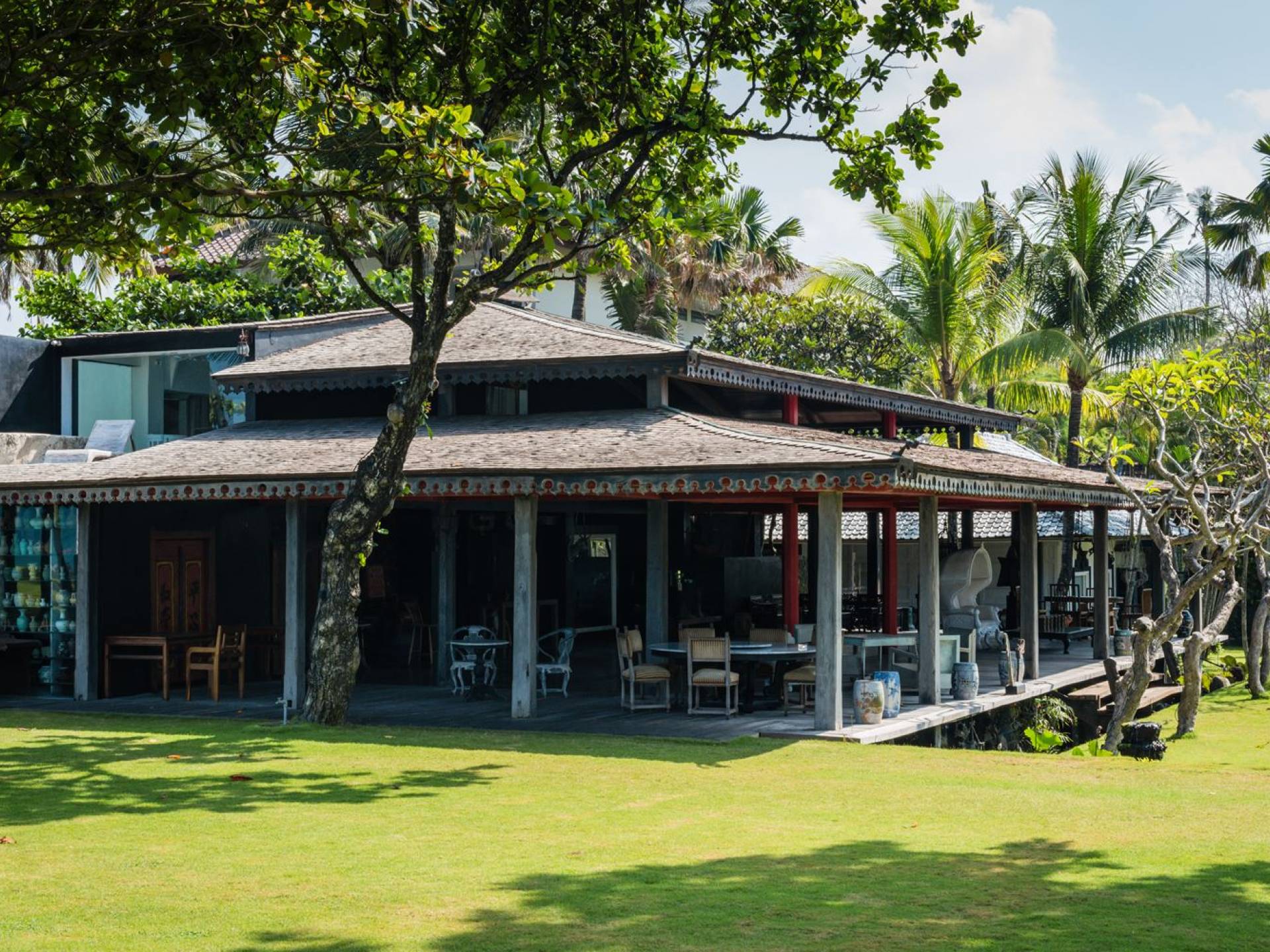 Le spacieux salon décloisonné a l'air d'un musée, décoré d'antiquités et d'œuvres d'art tribales. Le salon dispose d'un parquet rustique, de meubles en bois sculptés à la main, d'une cheminée et de murs traditionnels en bois de teck finement sculptés d'un côté. Magnifique! Il y a de grands canapés en rotin avec des coussins blancs pour se détendre, il y a une longue table à manger pouvant accueillir jusqu'à 24 personnes, il y a une télévision et il y a une cuisine avec un bar et des tabourets. Un autre bâtiment impressionnant sur place est The King's House - une authentique ancienne maison de roi ramenée de Pontianak, Kalimantan. Cette ancienne maison à deux niveaux est idéale pour les célébrations et les événements, située juste à côté de la piscine. Il y a un grand plateau au milieu, qui pourrait constituer une piste de danse ou une scène et il est entouré d'une véranda avec des sièges et des options de restauration. Attenant au pavillon principal, il y a une galerie d'art montrant certaines des propres créations de Morabito. De plus, le domaine dispose d'un home cinéma et d'un spa privé. Quelque chose de plus que vous pourriez souhaiter? Nous ne le pensions pas !