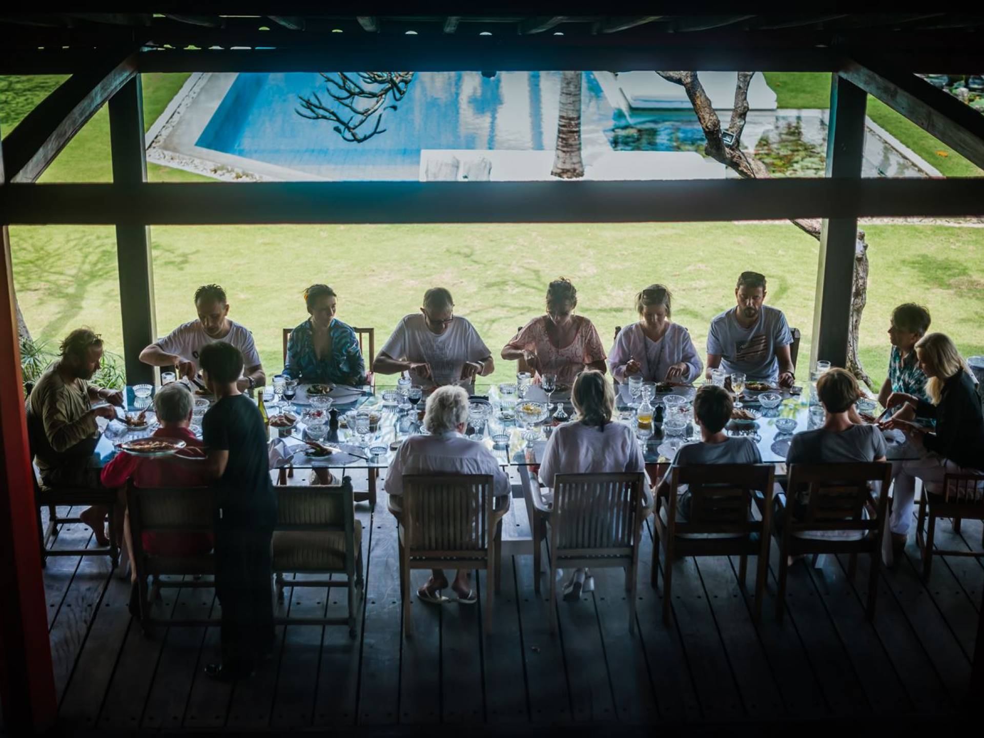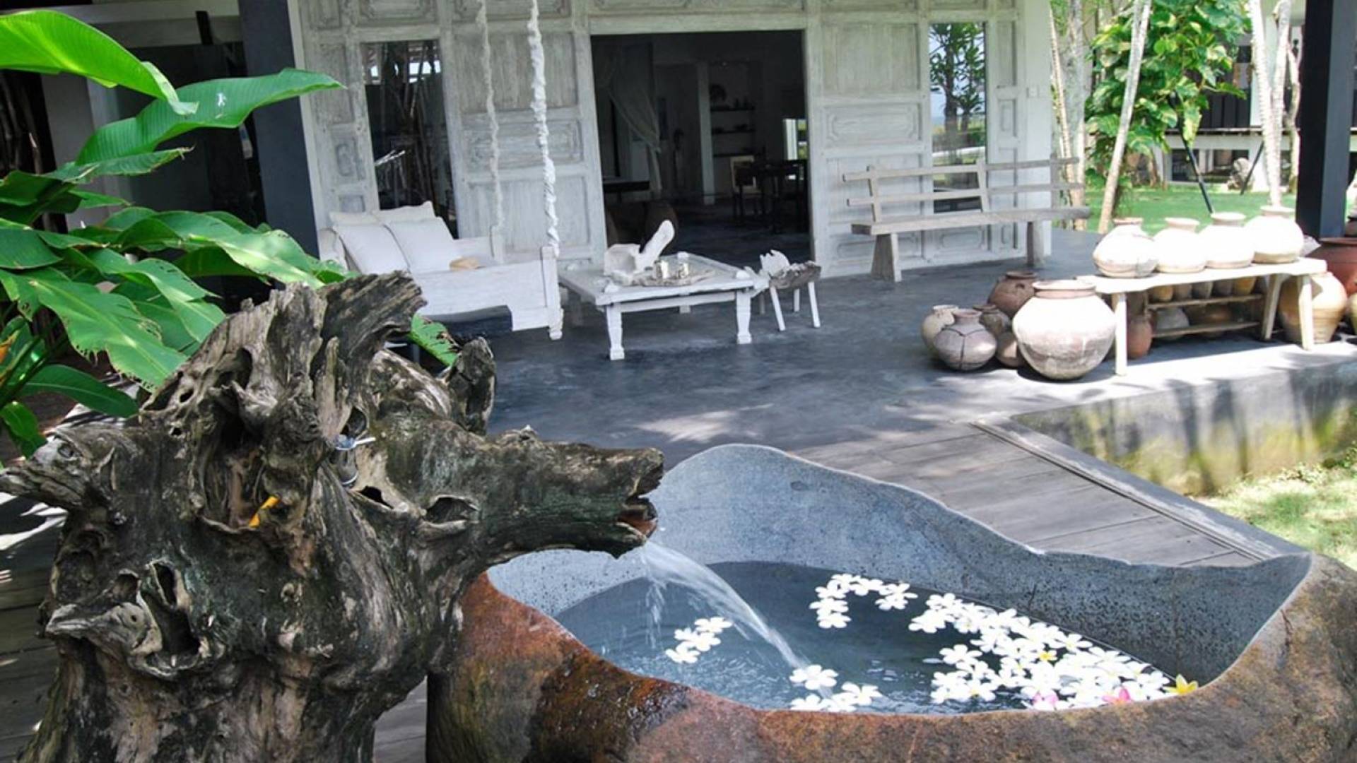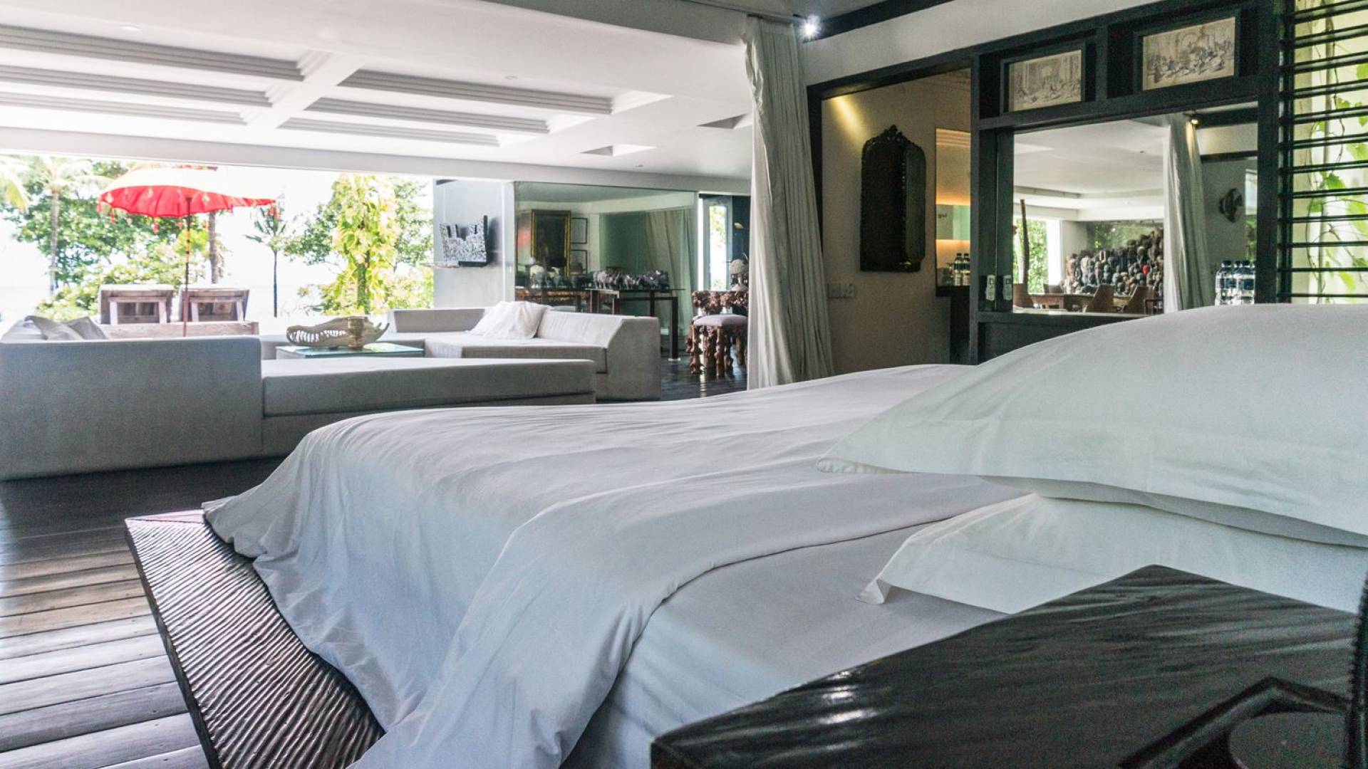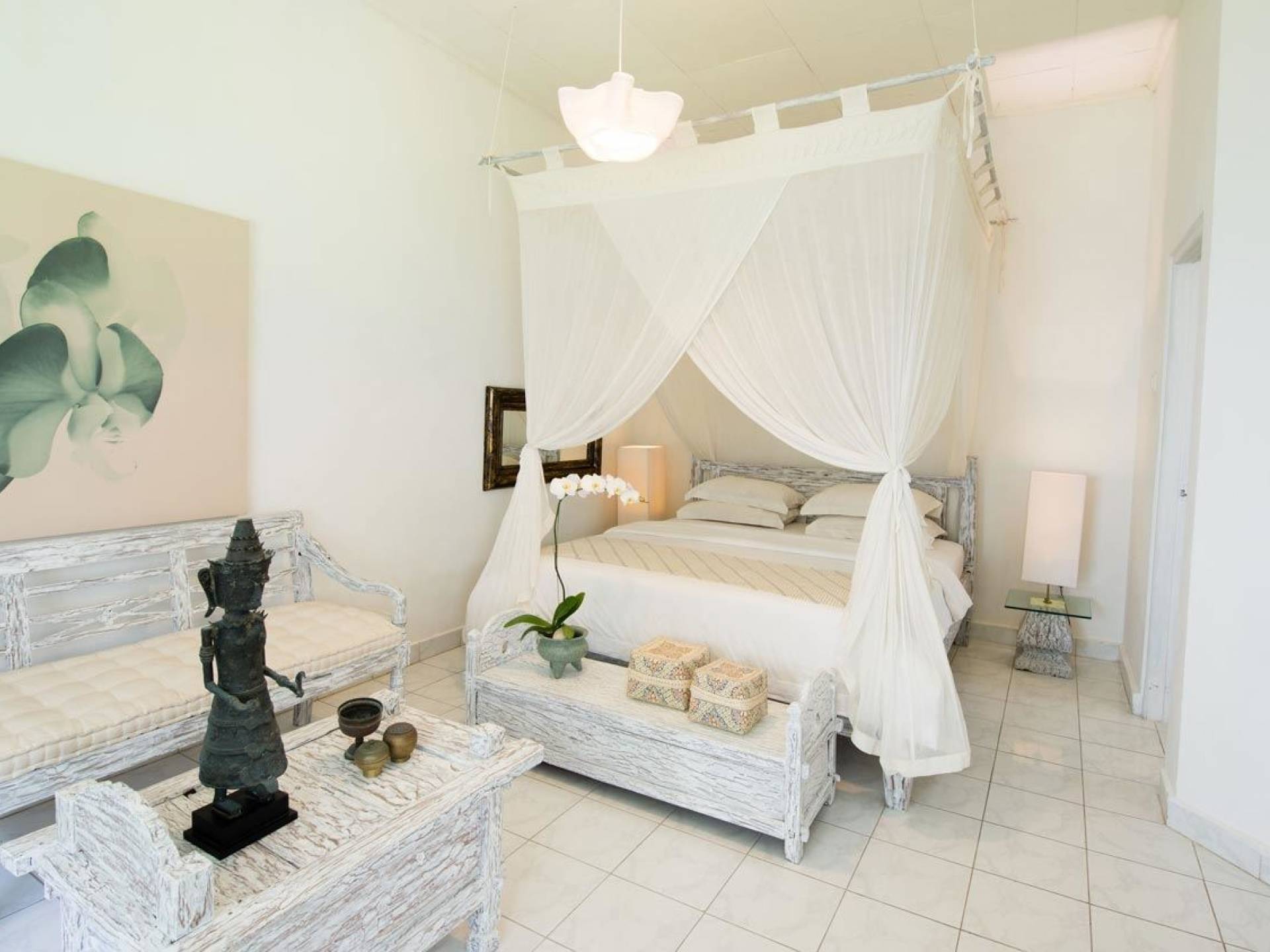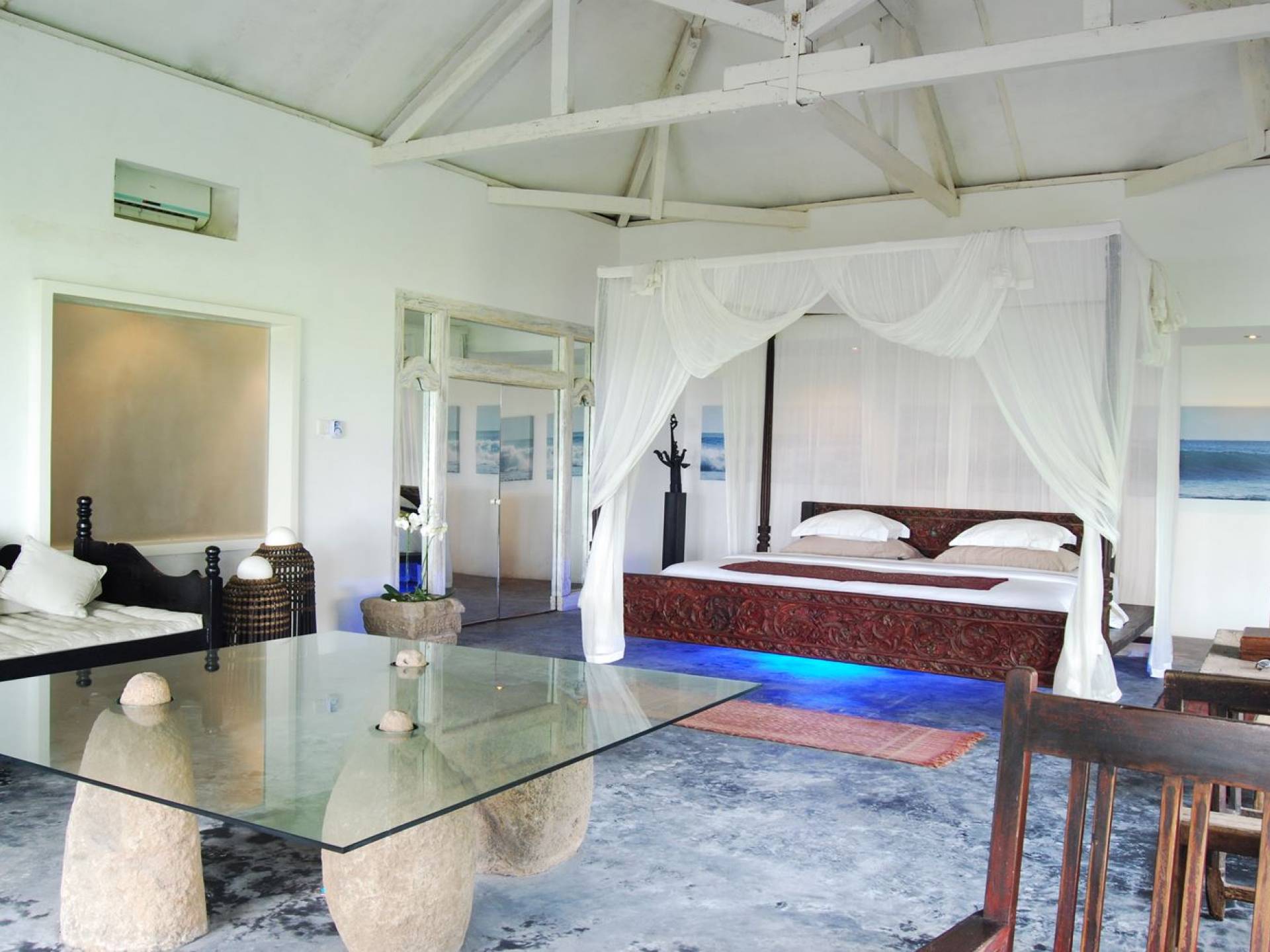 Le spacieux salon décloisonné a l'air d'un musée, décoré d'antiquités et d'œuvres d'art tribales. Le salon dispose d'un parquet rustique, de meubles en bois sculptés à la main, d'une cheminée et de murs traditionnels en bois de teck finement sculptés d'un côté. Magnifique! Il y a de grands canapés en rotin avec des coussins blancs pour se détendre, il y a une longue table à manger pouvant accueillir jusqu'à 24 personnes, il y a une télévision et il y a une cuisine avec un bar et des tabourets. Un autre bâtiment impressionnant sur place est The King's House - une authentique ancienne maison de roi ramenée de Pontianak, Kalimantan. Cette ancienne maison à deux niveaux est idéale pour les célébrations et les événements, située juste à côté de la piscine. Il y a un grand plateau au milieu, qui pourrait constituer une piste de danse ou une scène et il est entouré d'une véranda avec des sièges et des options de restauration. Attenant au pavillon principal, il y a une galerie d'art montrant certaines des propres créations de Morabito. De plus, le domaine dispose d'un home cinéma et d'un spa privé. Quelque chose de plus que vous pourriez souhaiter? Nous ne le pensions pas !