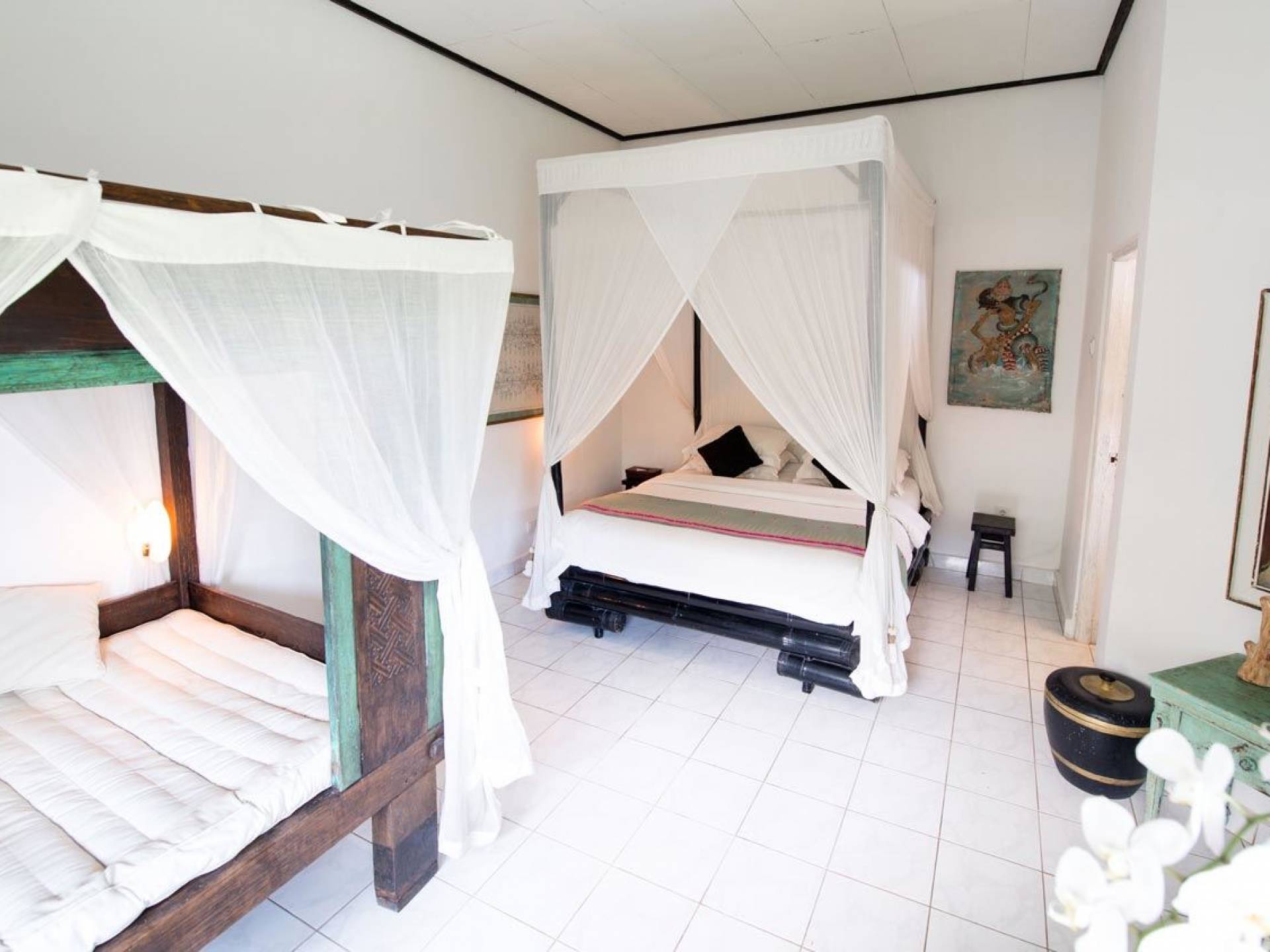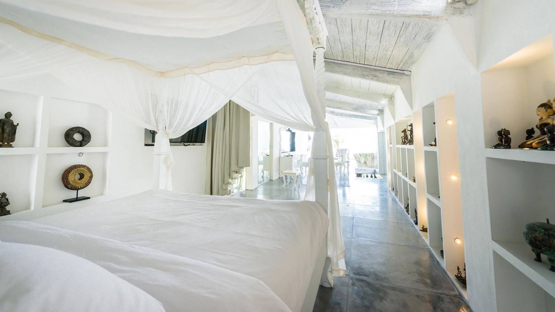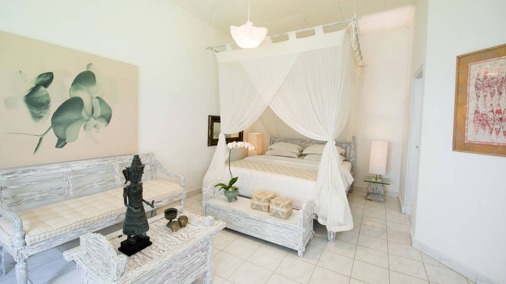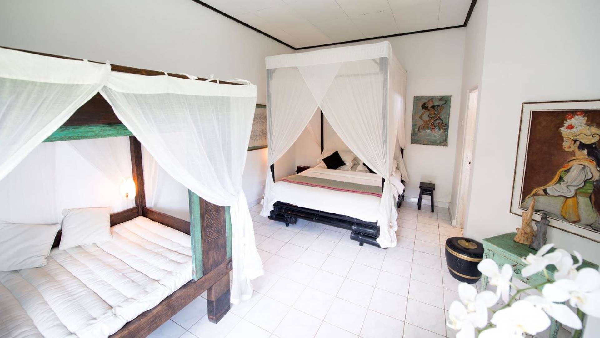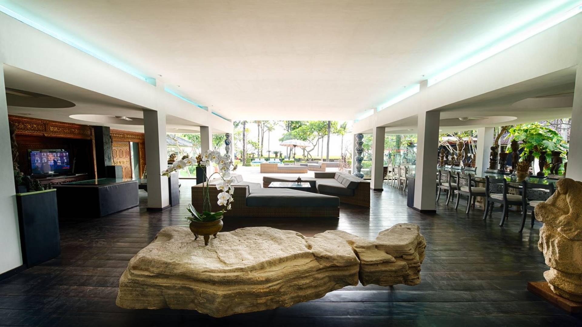 Le spacieux salon décloisonné a l'air d'un musée, décoré d'antiquités et d'œuvres d'art tribales. Le salon dispose d'un parquet rustique, de meubles en bois sculptés à la main, d'une cheminée et de murs traditionnels en bois de teck finement sculptés d'un côté. Magnifique! Il y a de grands canapés en rotin avec des coussins blancs pour se détendre, il y a une longue table à manger pouvant accueillir jusqu'à 24 personnes, il y a une télévision et il y a une cuisine avec un bar et des tabourets. Un autre bâtiment impressionnant sur place est The King's House - une authentique ancienne maison de roi ramenée de Pontianak, Kalimantan. Cette ancienne maison à deux niveaux est idéale pour les célébrations et les événements, située juste à côté de la piscine. Il y a un grand plateau au milieu, qui pourrait constituer une piste de danse ou une scène et il est entouré d'une véranda avec des sièges et des options de restauration. Attenant au pavillon principal, il y a une galerie d'art montrant certaines des propres créations de Morabito. De plus, le domaine dispose d'un home cinéma et d'un spa privé. Quelque chose de plus que vous pourriez souhaiter? Nous ne le pensions pas !