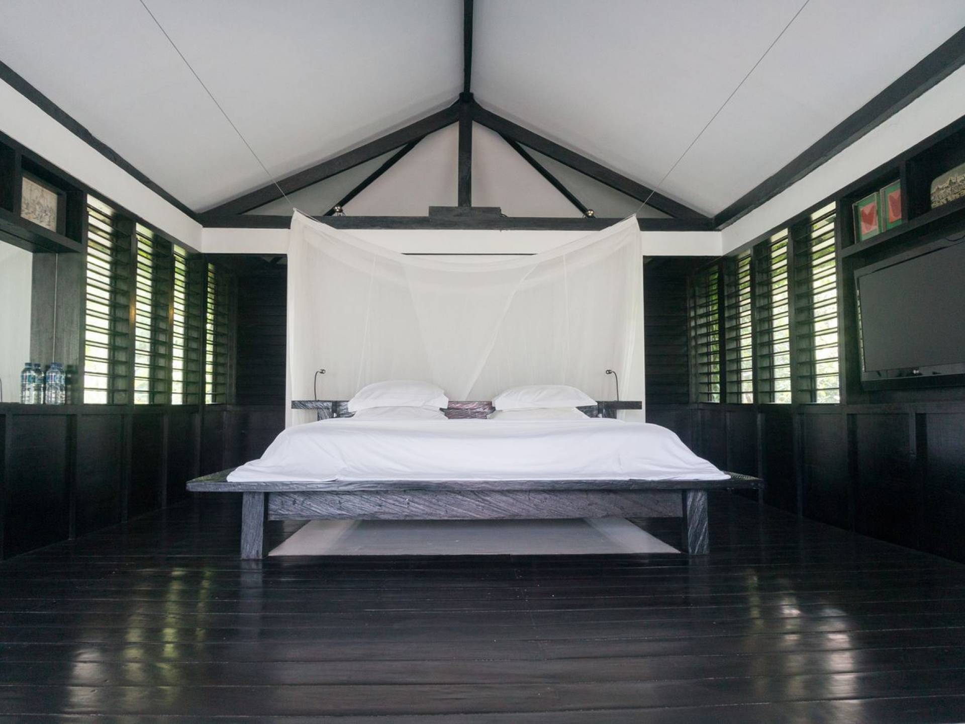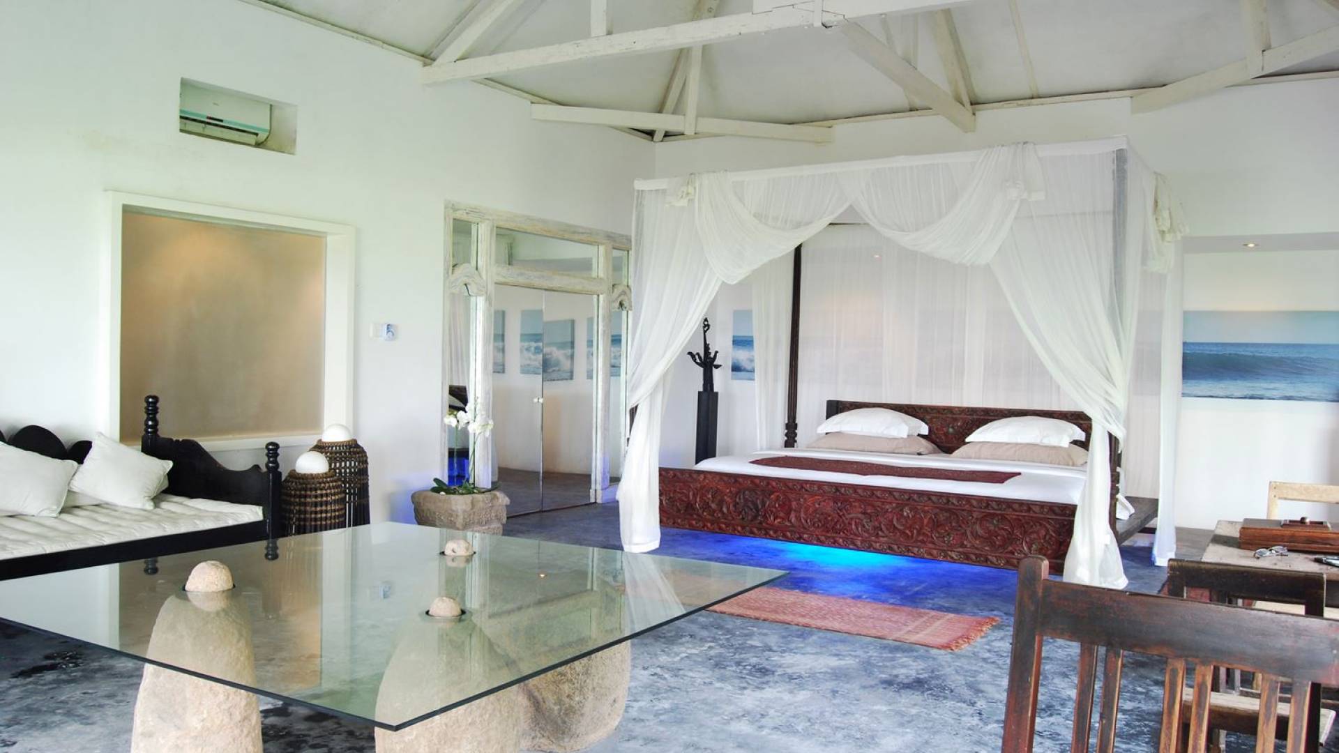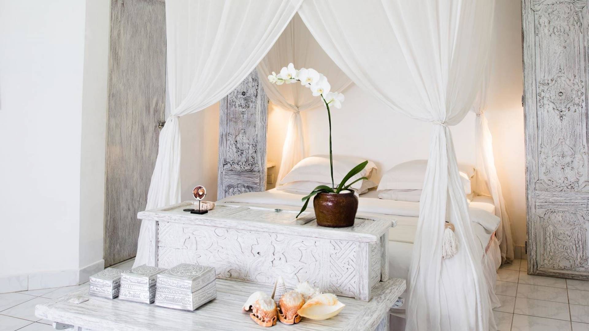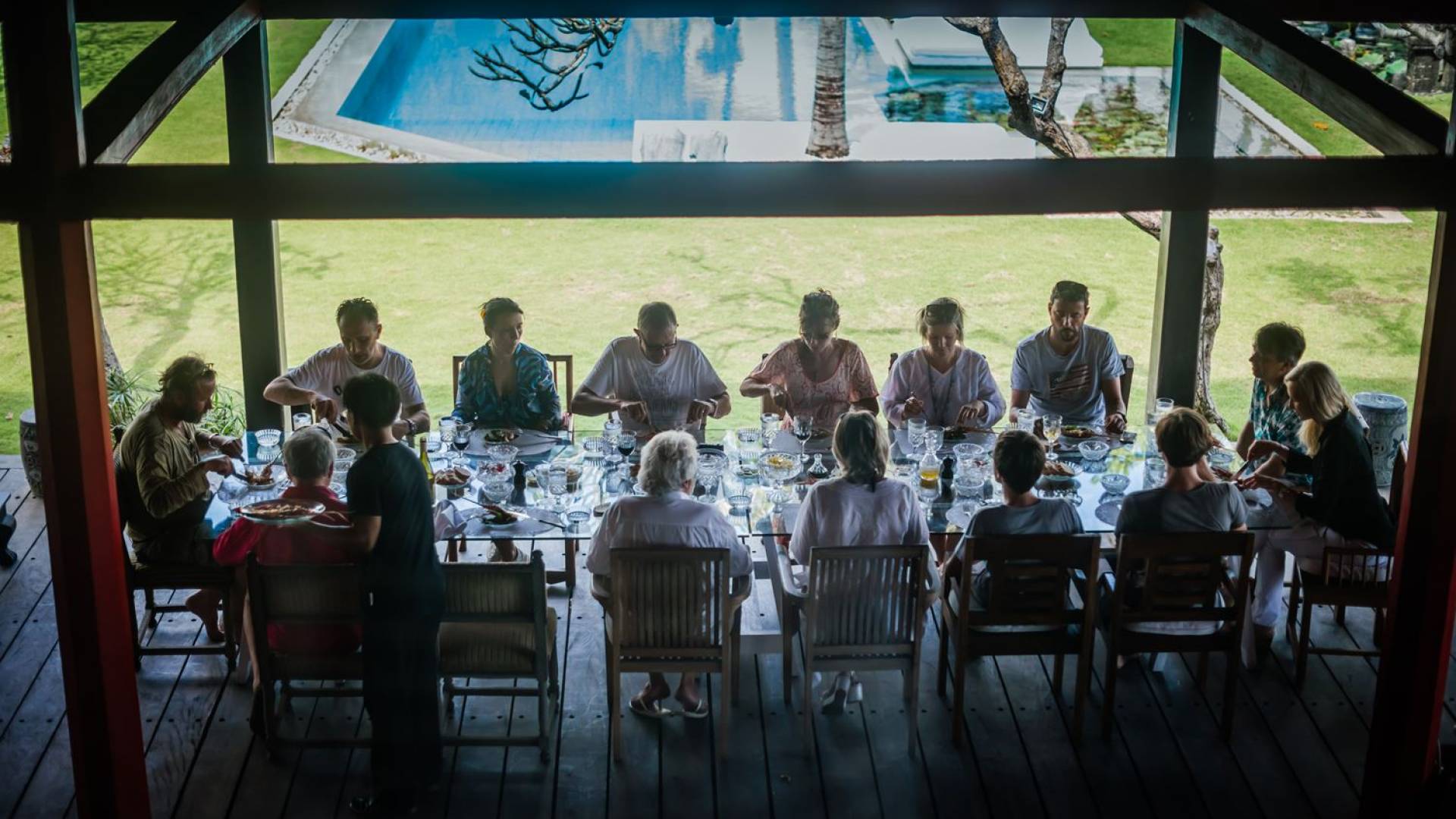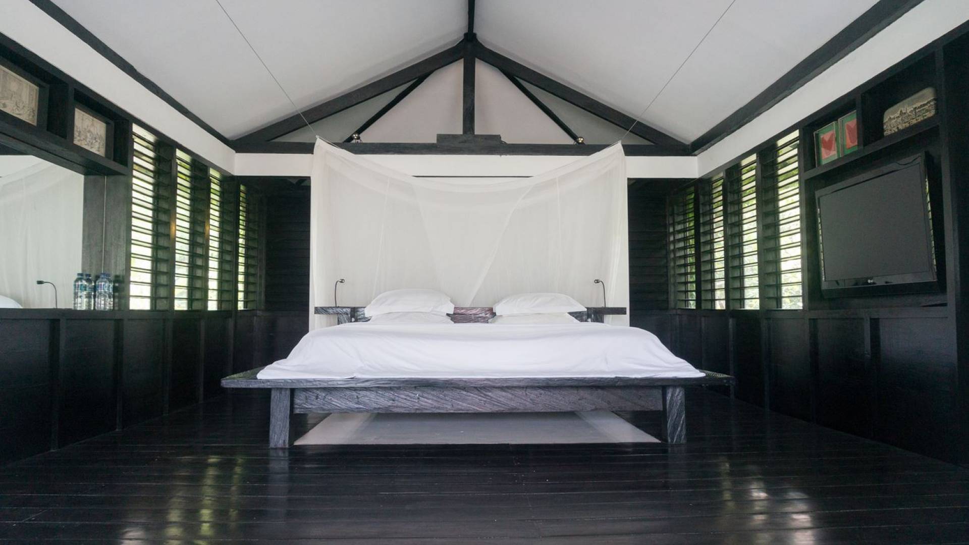 Le spacieux salon décloisonné a l'air d'un musée, décoré d'antiquités et d'œuvres d'art tribales. Le salon dispose d'un parquet rustique, de meubles en bois sculptés à la main, d'une cheminée et de murs traditionnels en bois de teck finement sculptés d'un côté. Magnifique! Il y a de grands canapés en rotin avec des coussins blancs pour se détendre, il y a une longue table à manger pouvant accueillir jusqu'à 24 personnes, il y a une télévision et il y a une cuisine avec un bar et des tabourets. Un autre bâtiment impressionnant sur place est The King's House - une authentique ancienne maison de roi ramenée de Pontianak, Kalimantan. Cette ancienne maison à deux niveaux est idéale pour les célébrations et les événements, située juste à côté de la piscine. Il y a un grand plateau au milieu, qui pourrait constituer une piste de danse ou une scène et il est entouré d'une véranda avec des sièges et des options de restauration. Attenant au pavillon principal, il y a une galerie d'art montrant certaines des propres créations de Morabito. De plus, le domaine dispose d'un home cinéma et d'un spa privé. Quelque chose de plus que vous pourriez souhaiter? Nous ne le pensions pas !