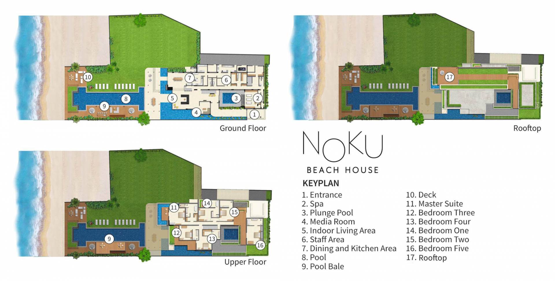 Noku Beach House Seminyak est la star ultra-glam du front de mer exclusif de Seminyak. Avec six chambres plus une armée de personnel six étoiles dont un chef gastronomique et votre propre maître d'hôtel, cette villa garantit le summum du plaisir des vacances. Un énorme balé divertissant avec des ponts et des terrasses couvertes, un spa avec bassin profond ainsi que de vastes jardins tropicaux et un fabuleux court de tennis face à l'océan bordent tous la piscine étincelante de 25 mètres. Les jardins sur les toits surplombent l'océan et font de magnifiques cachettes pour les apéritifs. Noku Beach House est une retraite épique aussi zen que chic en plein cœur du quartier branché de Seminyak.