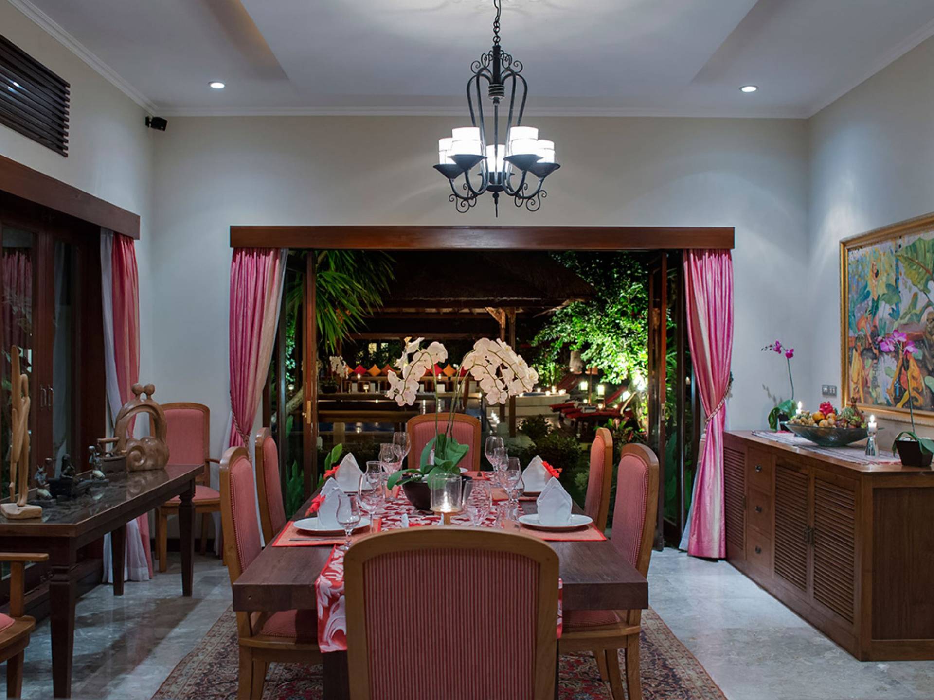 Cette élégante villa comprend trois balés de jardin au toit de chaume, un sauna infrarouge et des fontaines rafraîchissantes. Une connexion Wi-Fi est disponible dans tout l'établissement, tout comme des stations d'accueil pour iPod, des téléviseurs à écran plasma et des lecteurs DVD. Une équipe hautement qualifiée de personnel professionnel capture l'essence de l'hospitalité balinaise et un chef expérimenté prépare des plats de qualité restaurant.