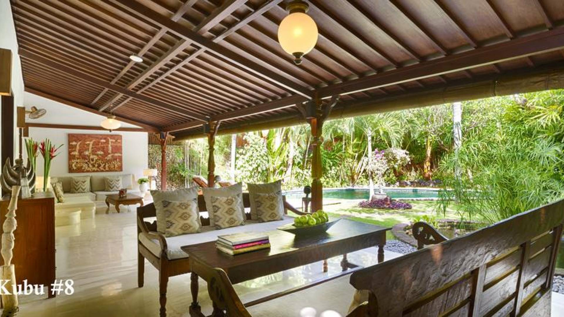 La Villa Kubu 8 Seminyak est une oasis de luxe et est l'un des « Jewels in the Crown » de la Villa Kubu. La villa dispose d'une véranda spacieuse inégalée, avec deux coins salons décloisonnés conçus individuellement offrant une vue fabuleuse sur les jardins tropicaux luxuriants et une grande piscine privée avec des éléments d'eau en pierre ornés de balinais qui se combinent harmonieusement avec l'environnement.