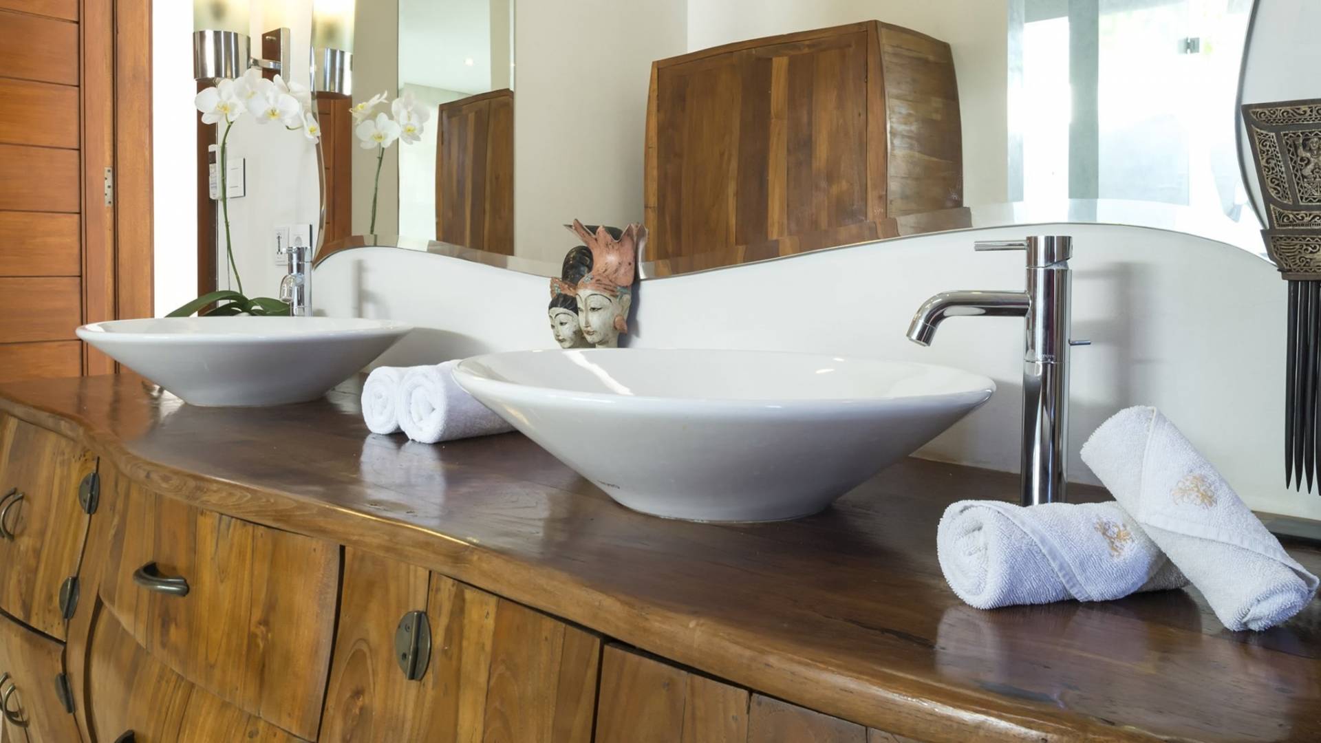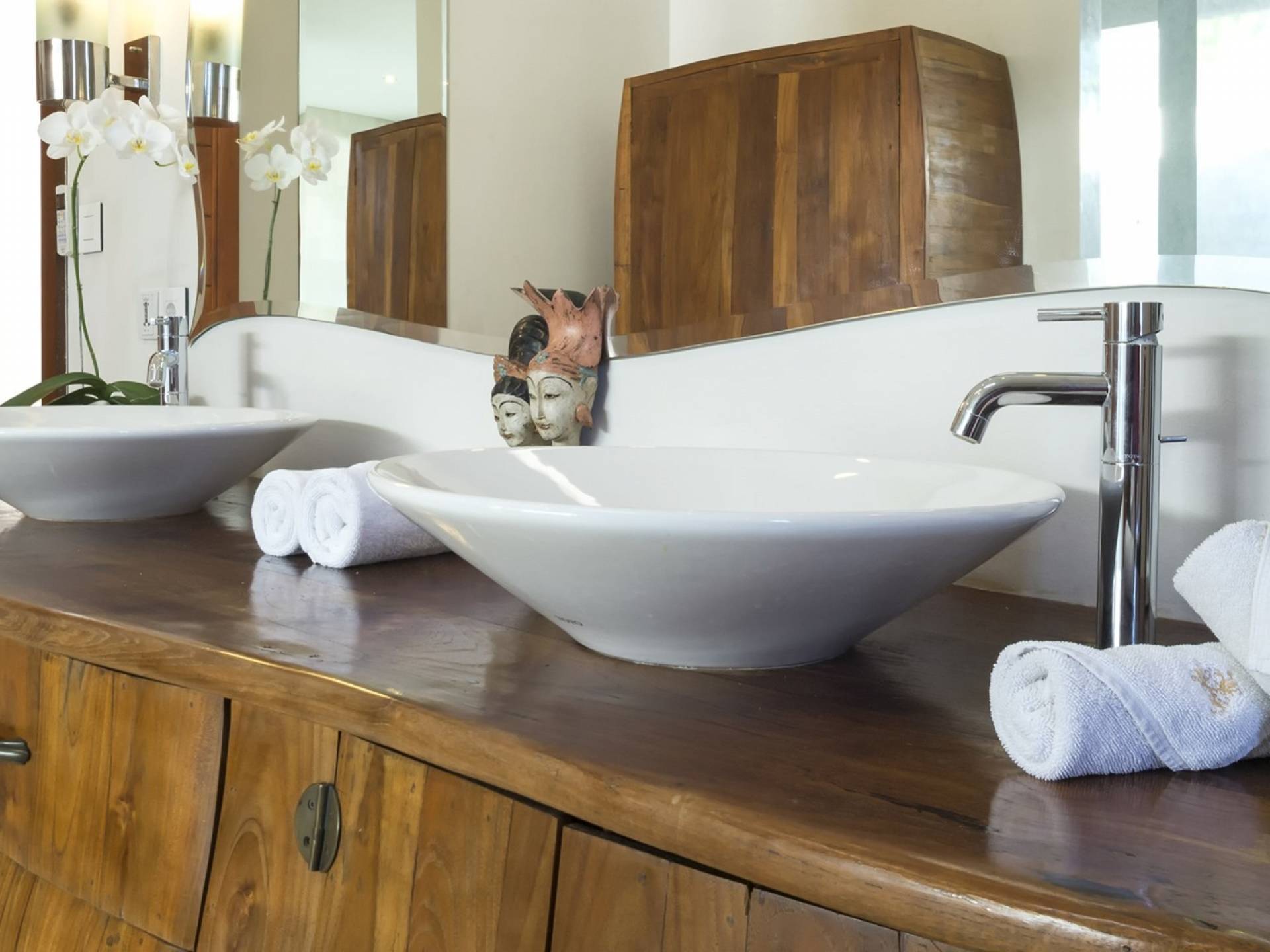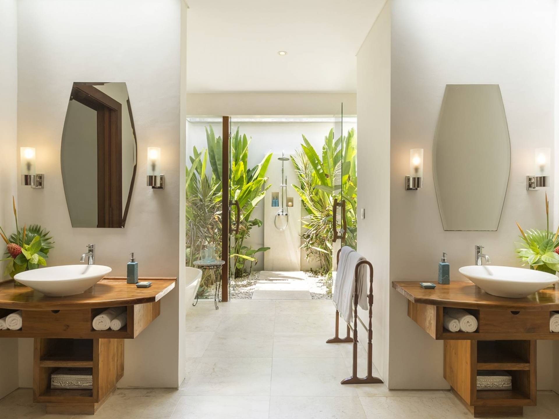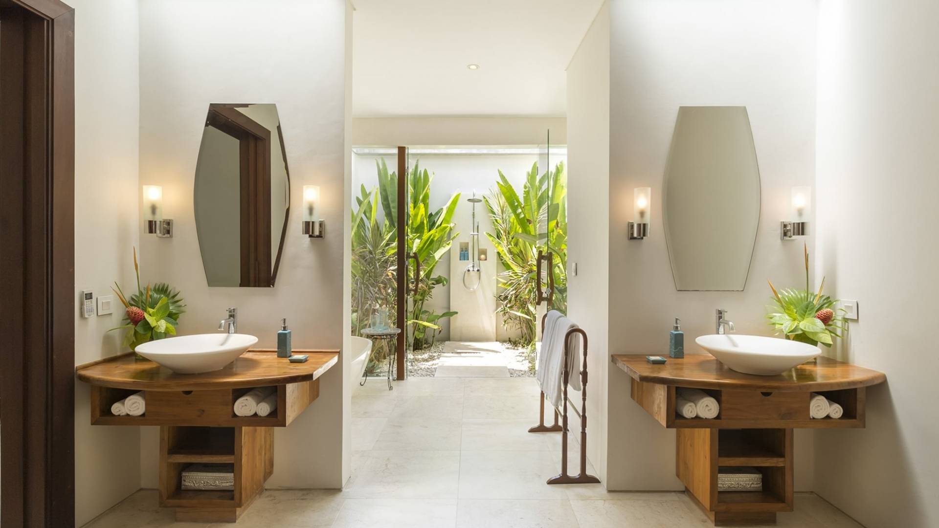 La Suite Nature se trouve également dans le pavillon principal, équipé également d'un lit king-size, nommé pour sa vue sur les grands arbres et le jardin bien entretenu. Parfait pour une famille avec de jeunes enfants, car une porte relie la grande salle de bain du jardin à la salle de bain principale. Une cuisine de majordome cachée, avec maxi-bar, sert ce pavillon.