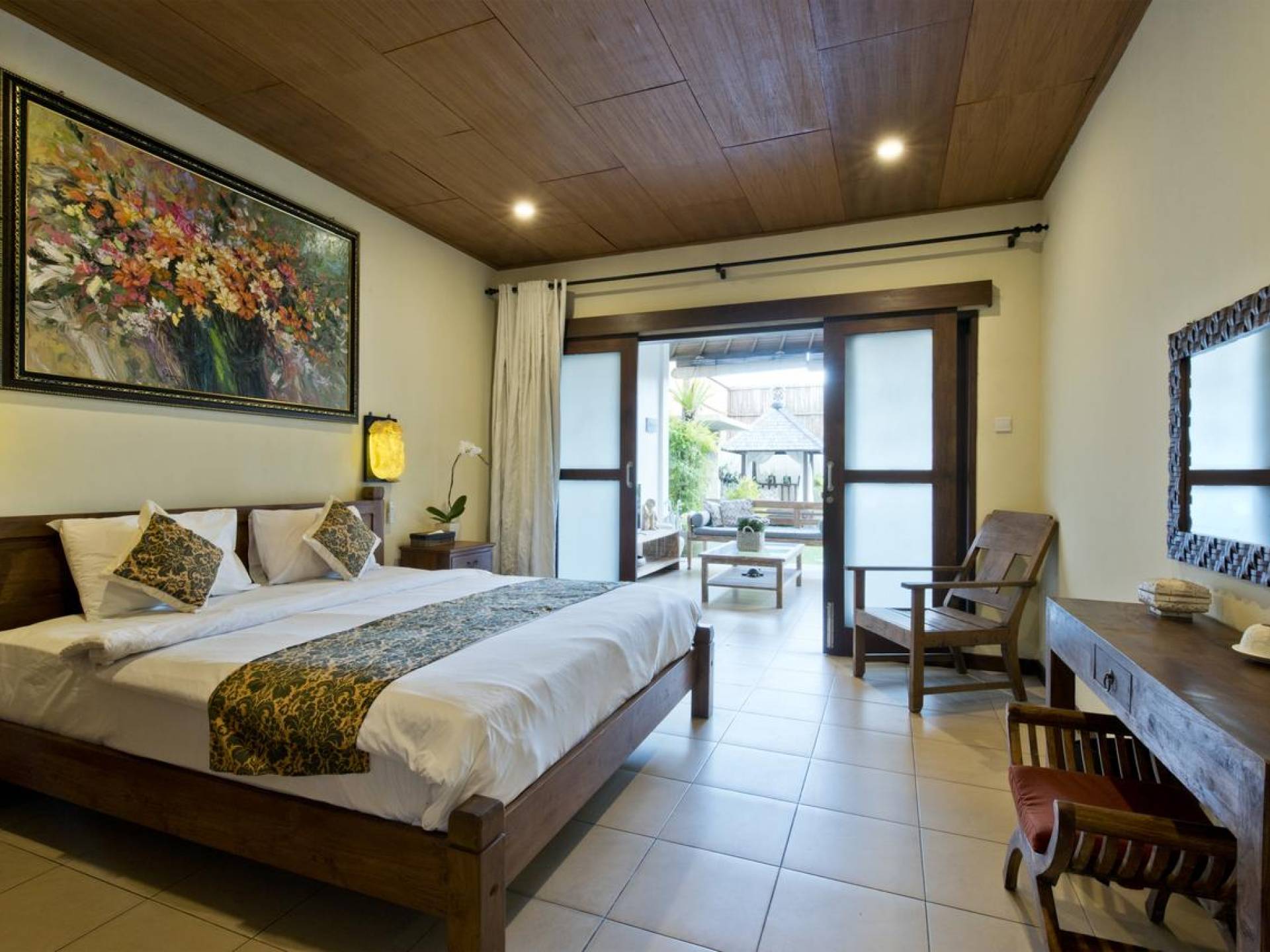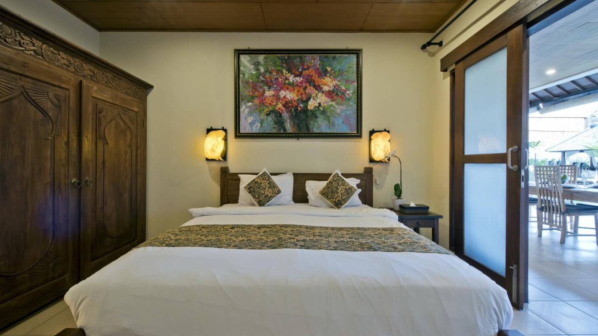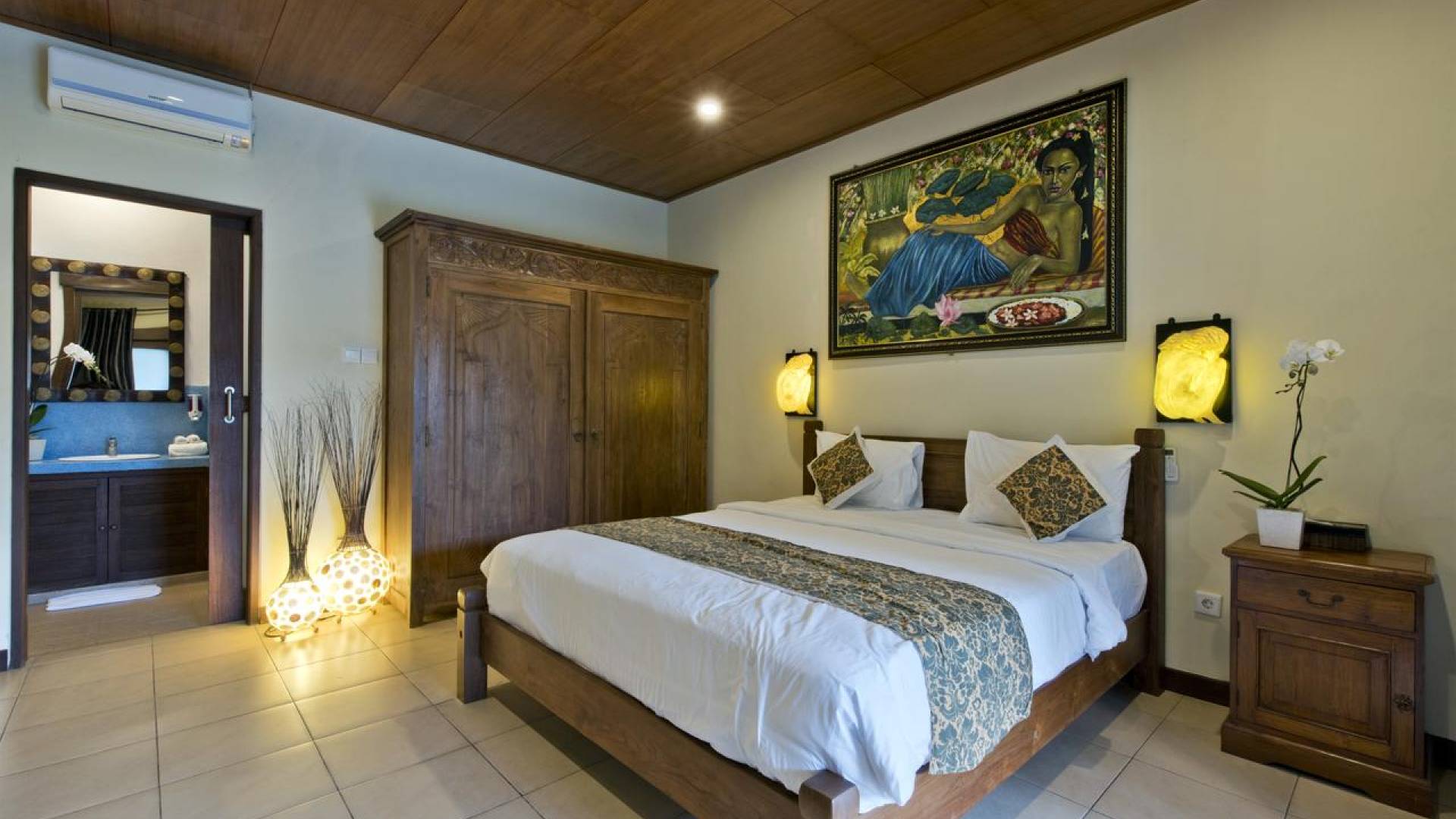 Trois chambres spacieuses et similaires font face au salon et au jardin tropical. Chaque chambre est climatisée, avec un lit king-size avec des draps de haute qualité et un matelas de norme occidentale, une salle de bain avec baignoire et douche, une grande armoire avec un coffre-fort.