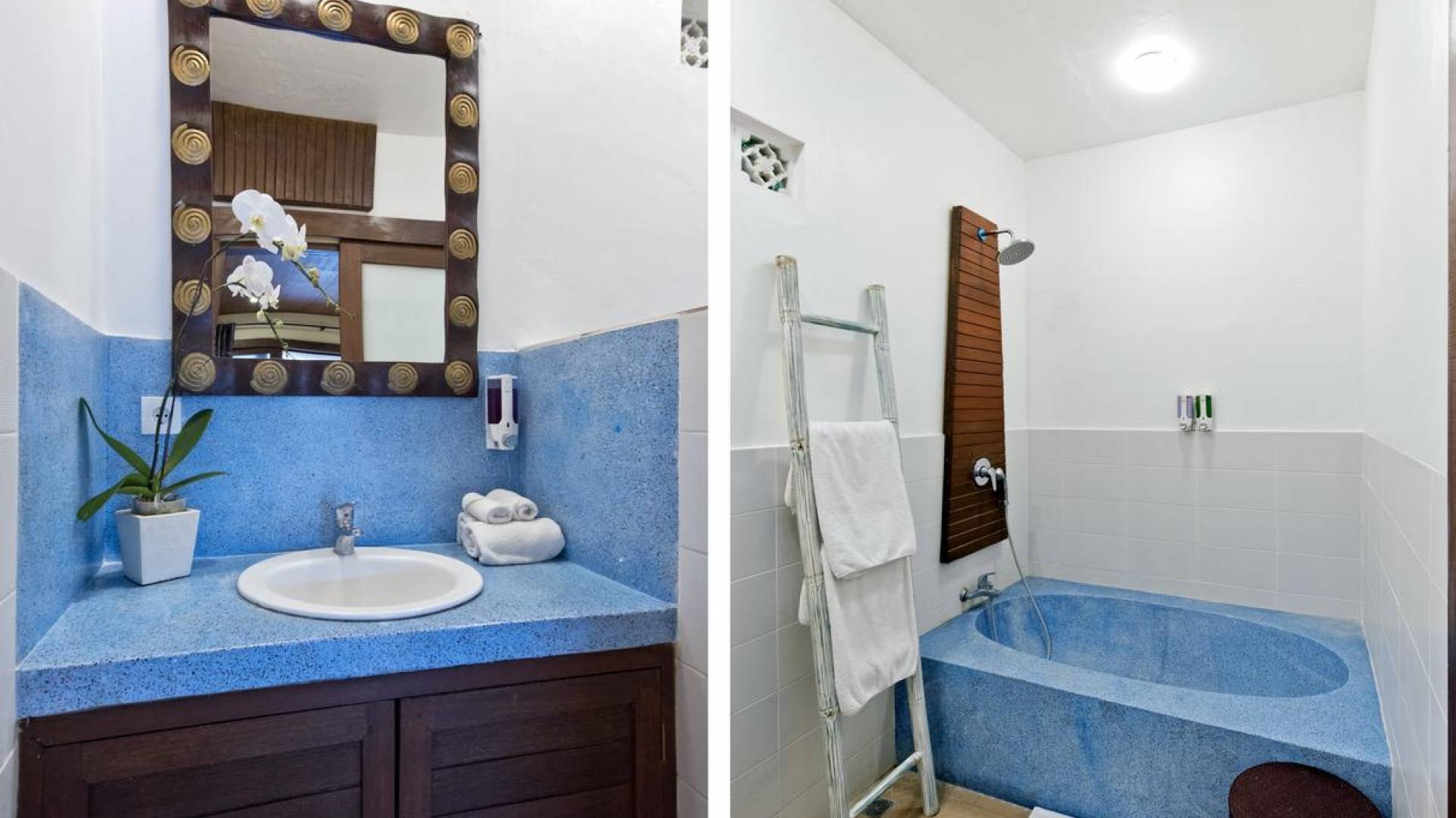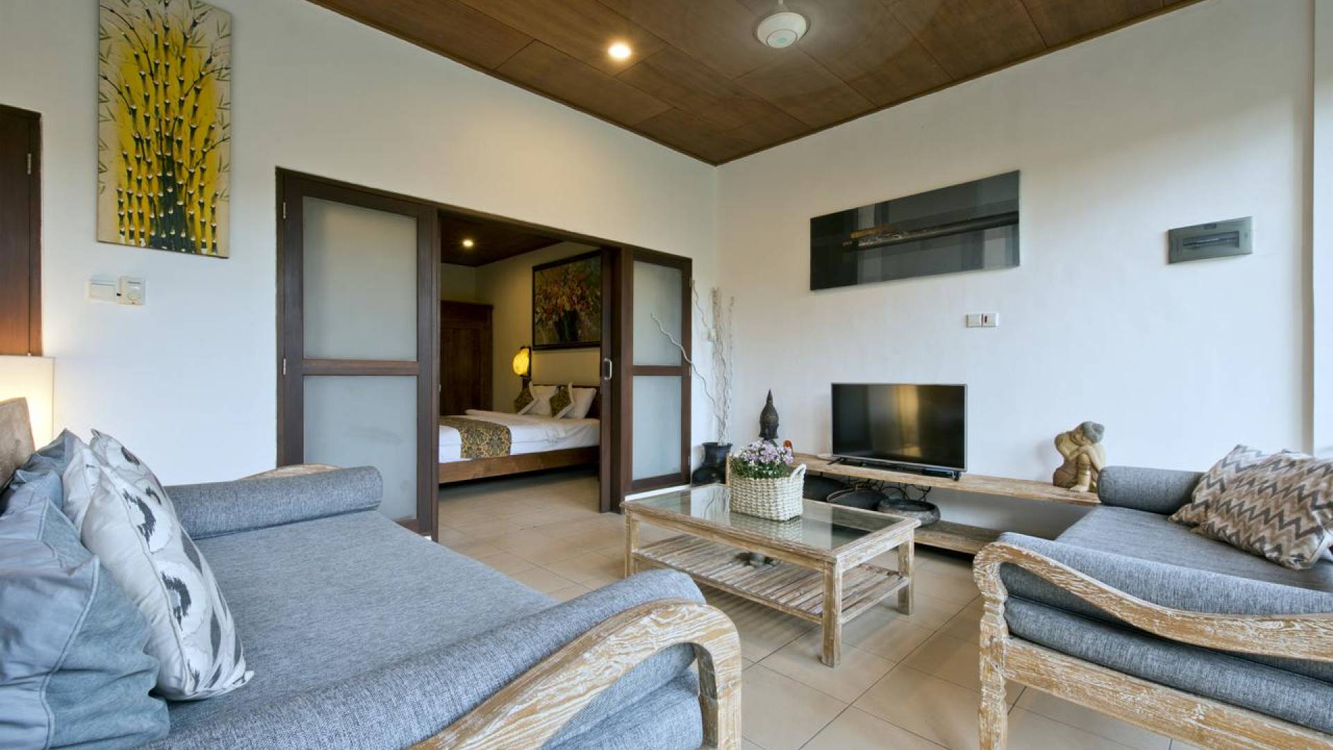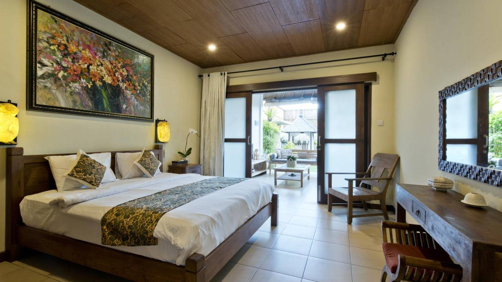Trois chambres spacieuses et similaires font face au salon et au jardin tropical. Chaque chambre est climatisée, avec un lit king-size avec des draps de haute qualité et un matelas de norme occidentale, une salle de bain avec baignoire et douche, une grande armoire avec un coffre-fort.