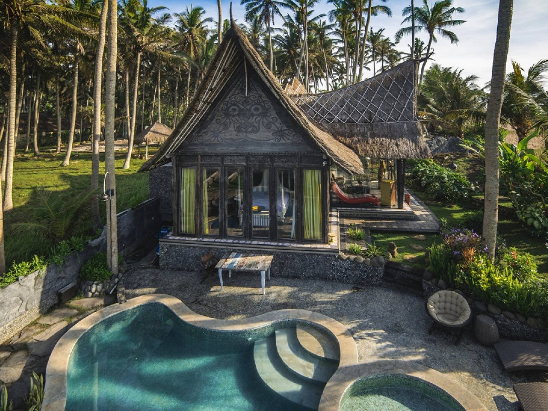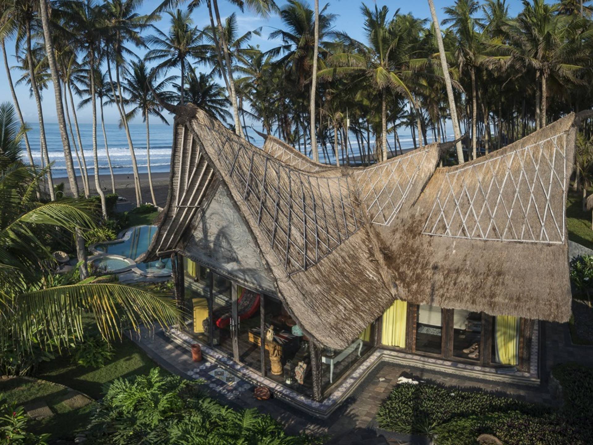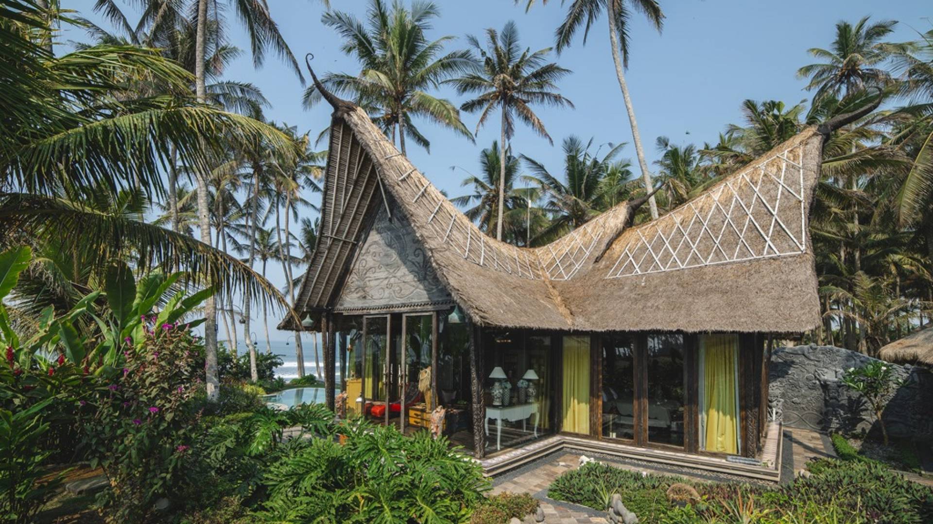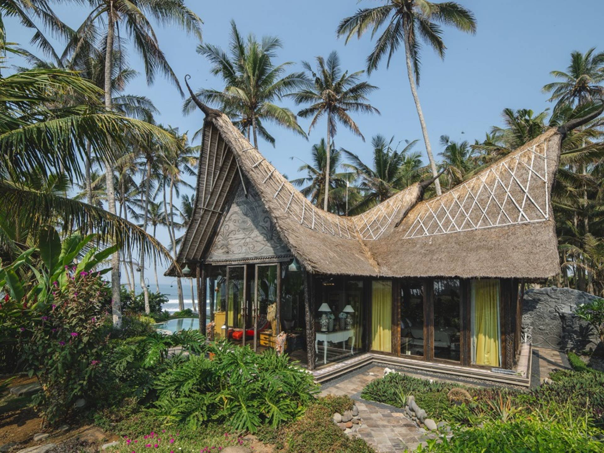 Fabuleuse villa située au bord de l'océan dans une petite palmeraie. L'atmosphère de cet endroit est extrêmement romantique - plages isolées, sable noir scintillant, rizières en terrasses émeraude sous le ciel étoilé. Construit en bois de fer avec d'immenses fenêtres panoramiques jusqu'au sol qui ouvrent une vue imprenable. Bungalow d'architecture - jeu éclectique des maisons de Sumatra Menang Kabo et au charme colonial, avec leur toit étonnant, s'ouvrent vers le haut comme les ailes d'un oiseau magique.