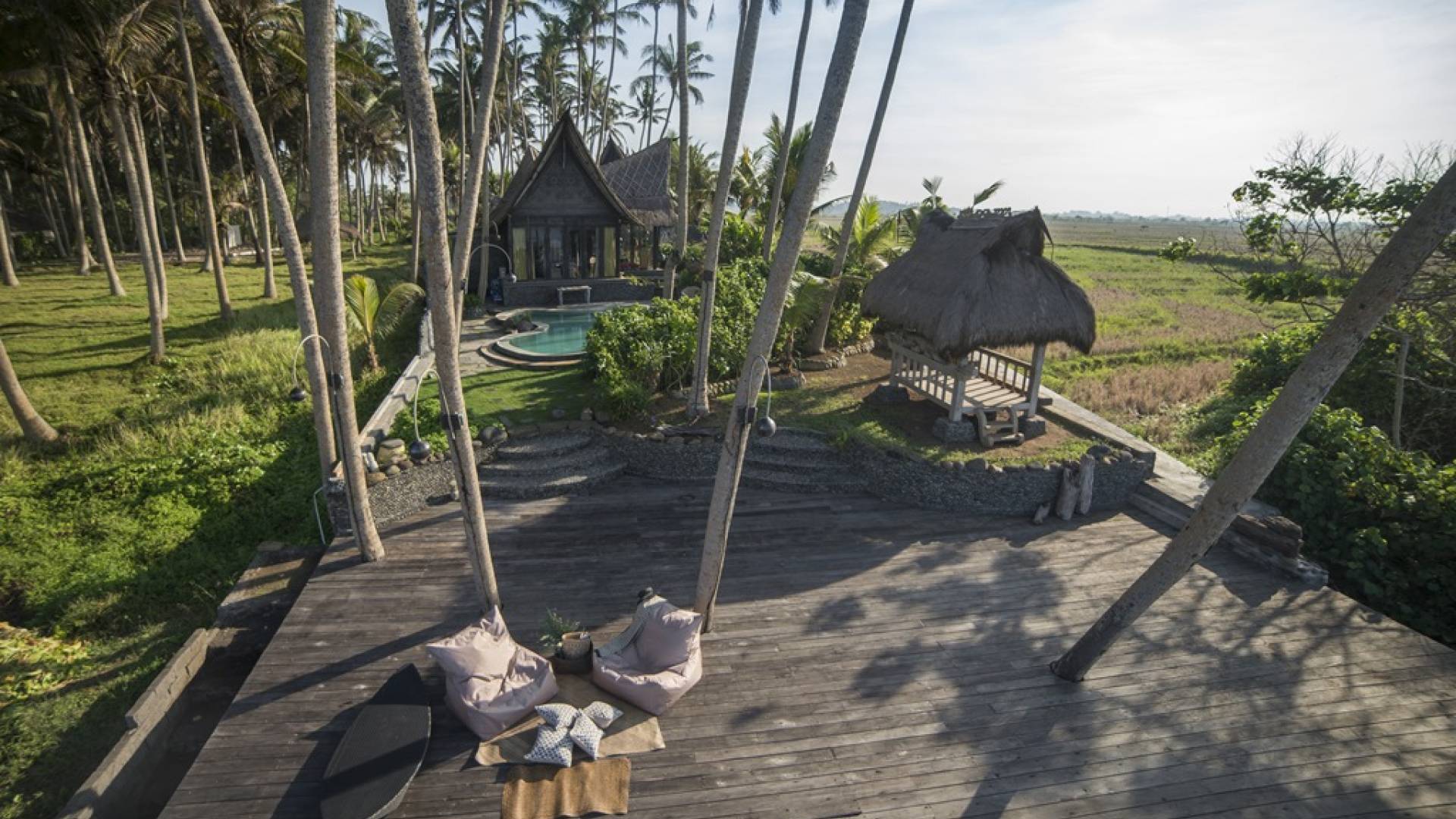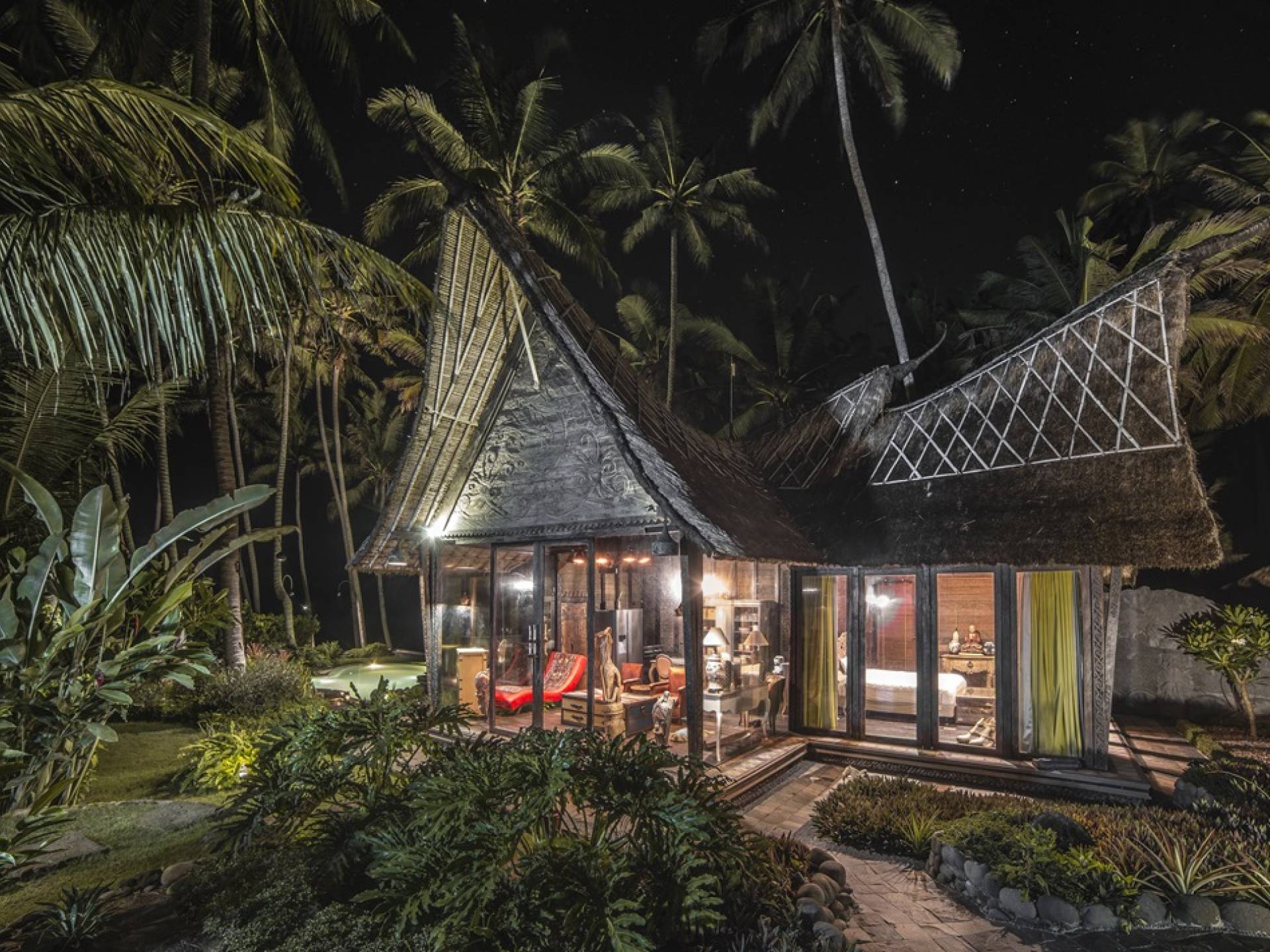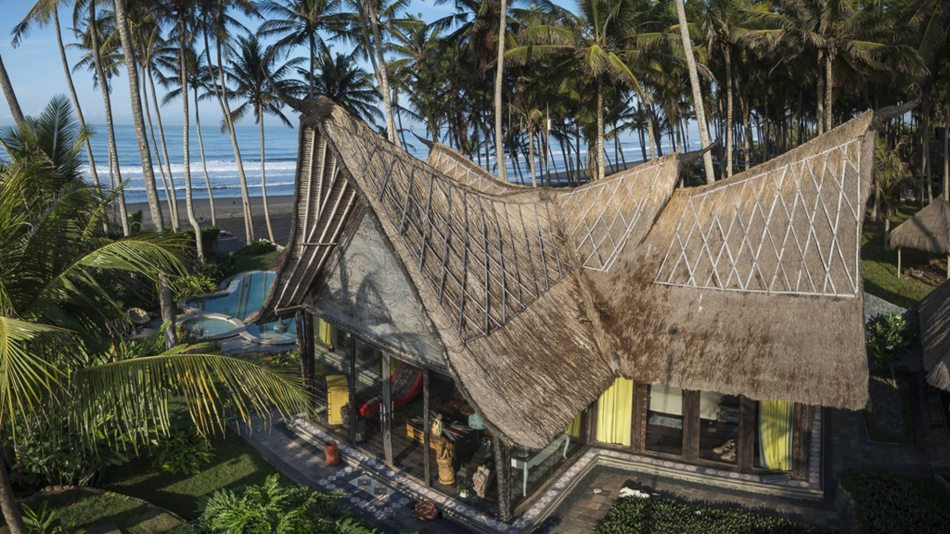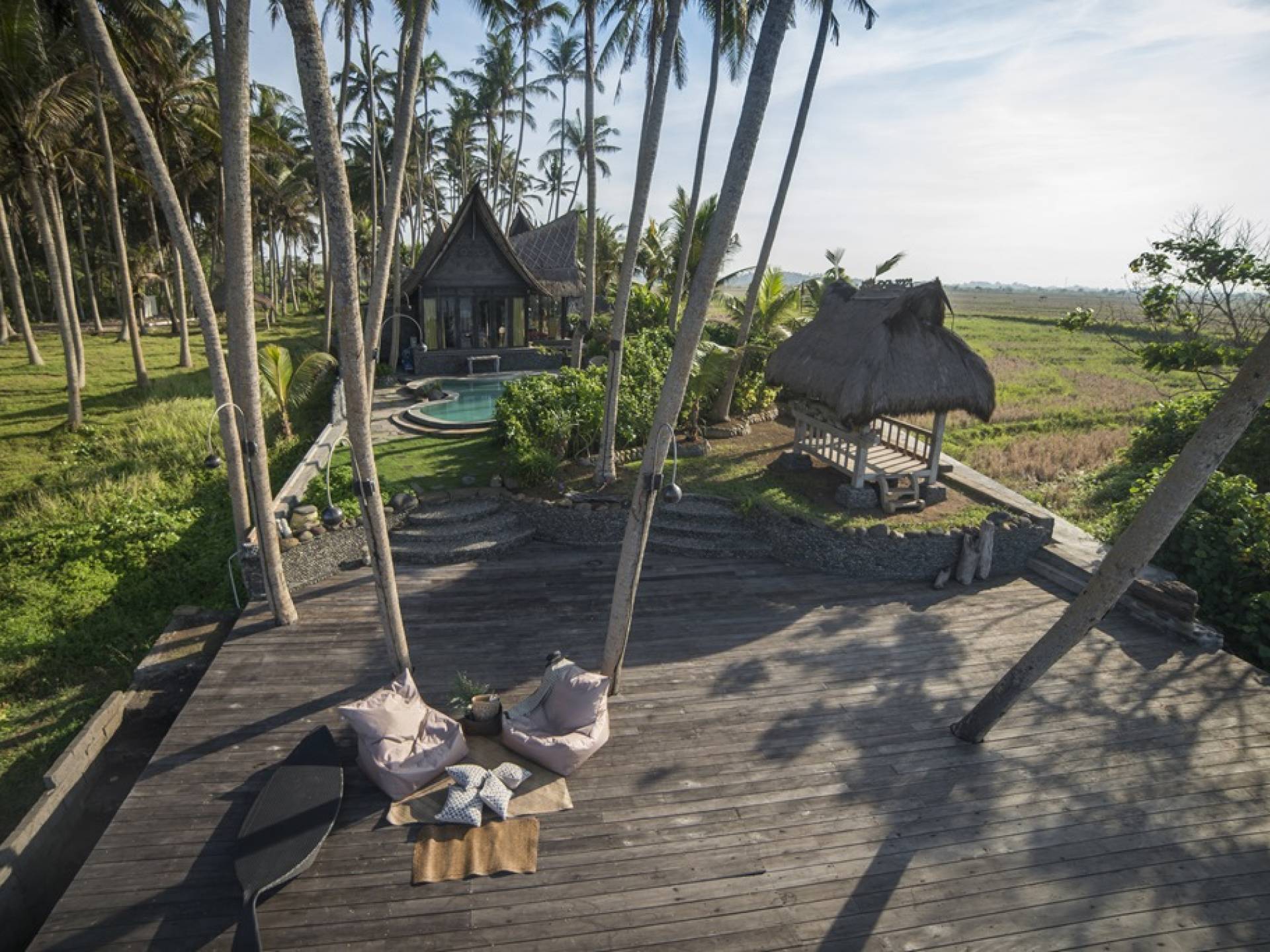 Fabuleuse villa située au bord de l'océan dans une petite palmeraie. L'atmosphère de cet endroit est extrêmement romantique - plages isolées, sable noir scintillant, rizières en terrasses émeraude sous le ciel étoilé. Construit en bois de fer avec d'immenses fenêtres panoramiques jusqu'au sol qui ouvrent une vue imprenable. Bungalow d'architecture - jeu éclectique des maisons de Sumatra Menang Kabo et au charme colonial, avec leur toit étonnant, s'ouvrent vers le haut comme les ailes d'un oiseau magique.