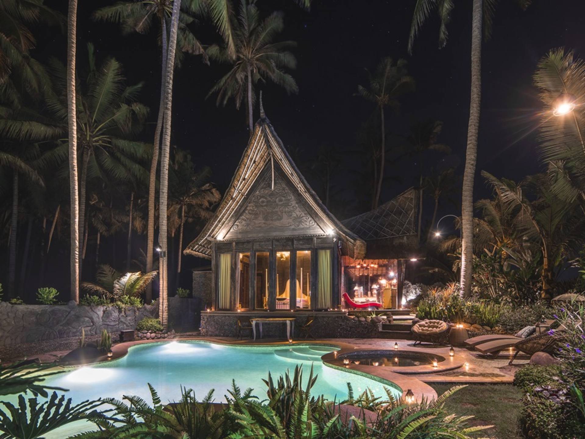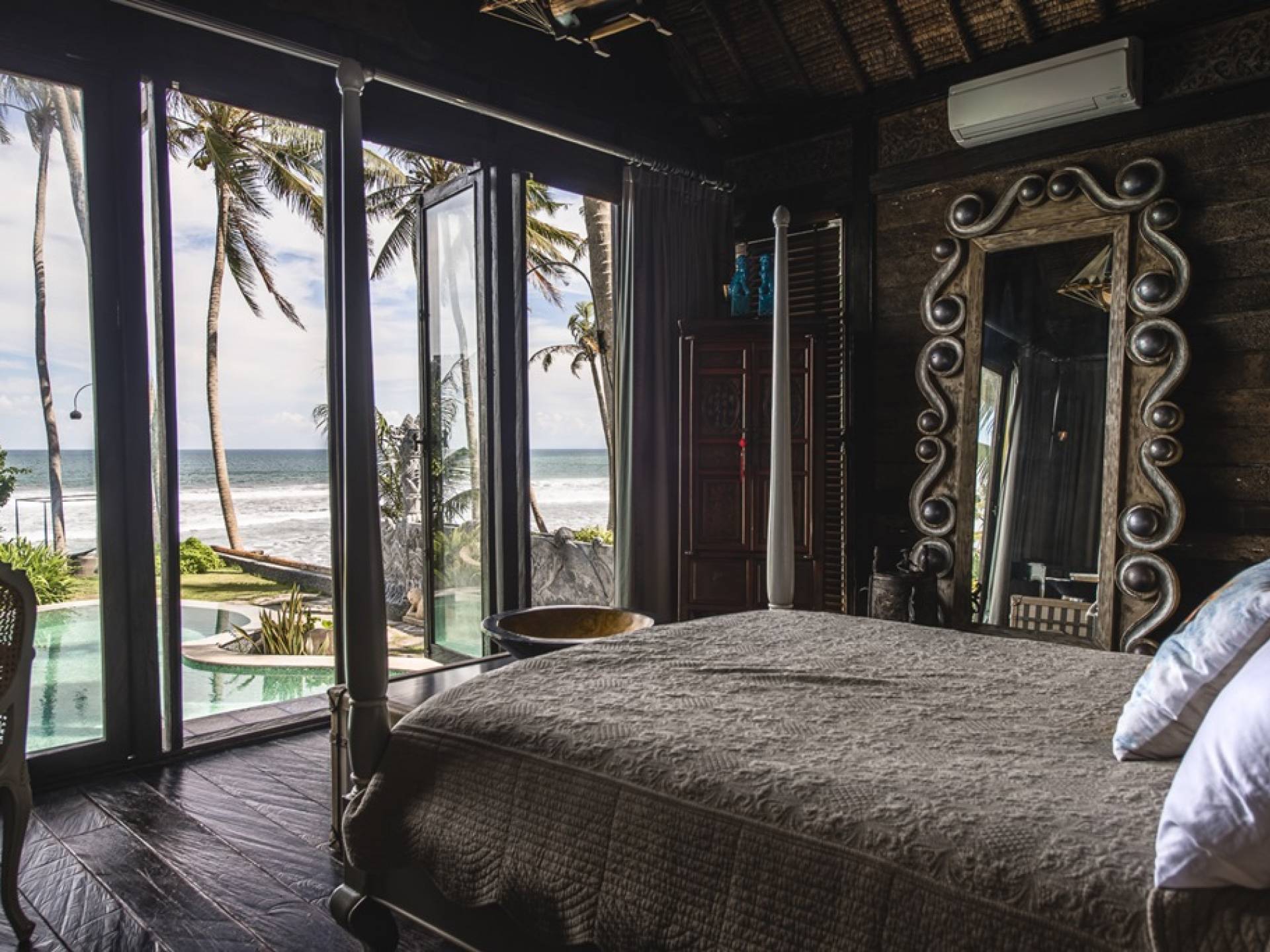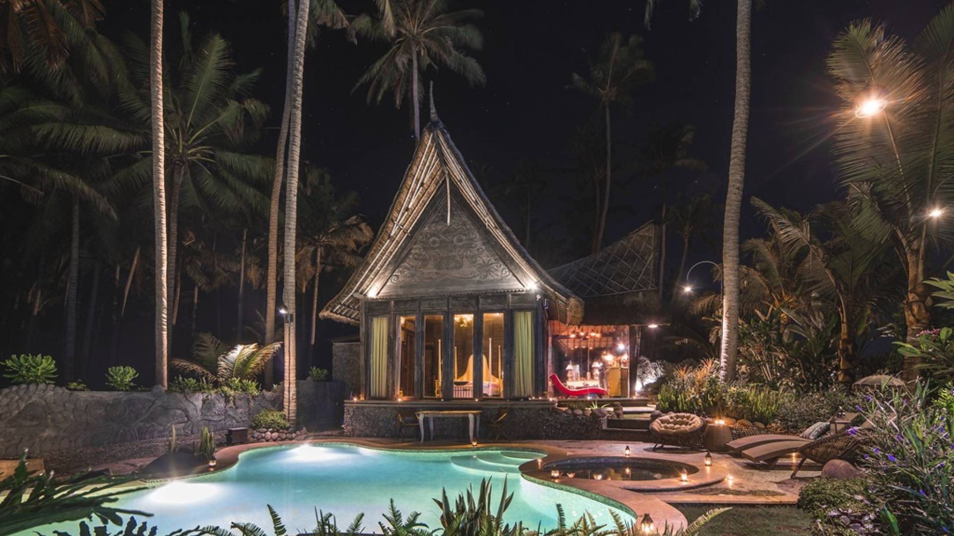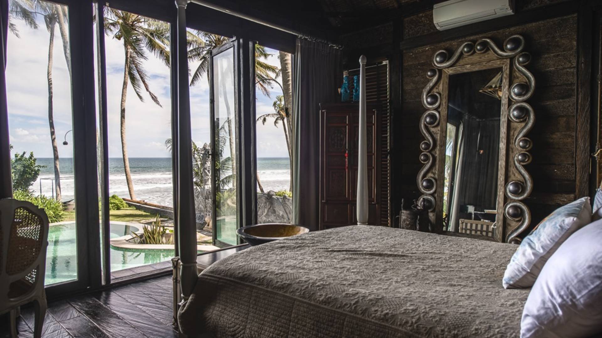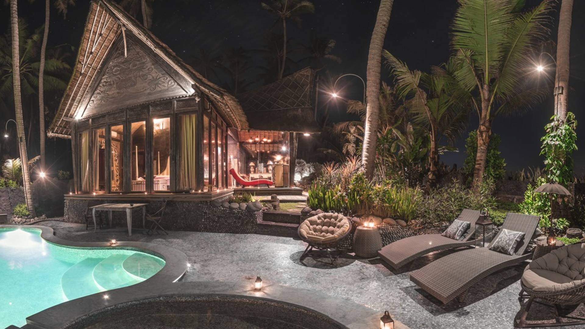 Fabuleuse villa située au bord de l'océan dans une petite palmeraie. L'atmosphère de cet endroit est extrêmement romantique - plages isolées, sable noir scintillant, rizières en terrasses émeraude sous le ciel étoilé. Construit en bois de fer avec d'immenses fenêtres panoramiques jusqu'au sol qui ouvrent une vue imprenable. Bungalow d'architecture - jeu éclectique des maisons de Sumatra Menang Kabo et au charme colonial, avec leur toit étonnant, s'ouvrent vers le haut comme les ailes d'un oiseau magique.