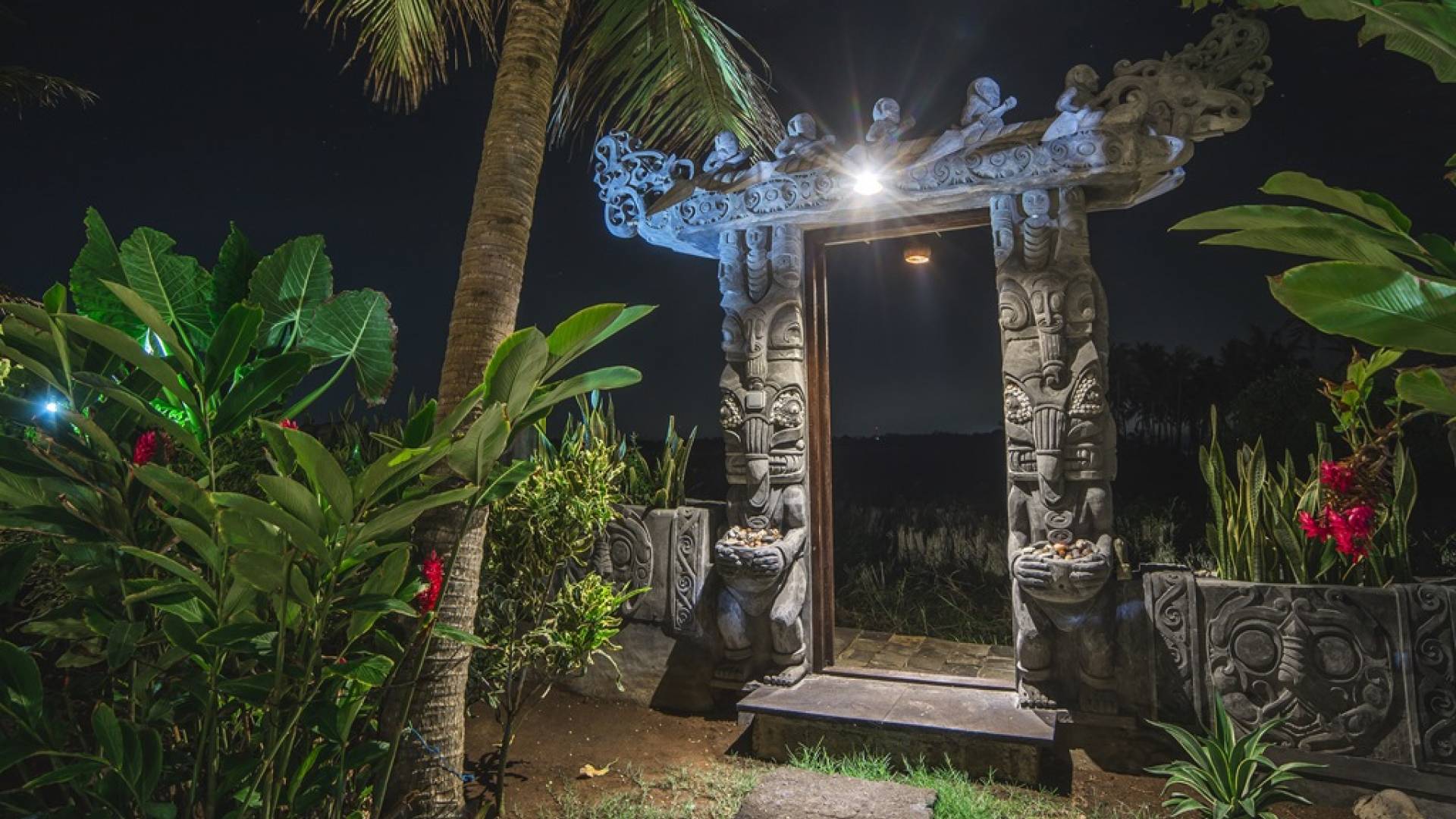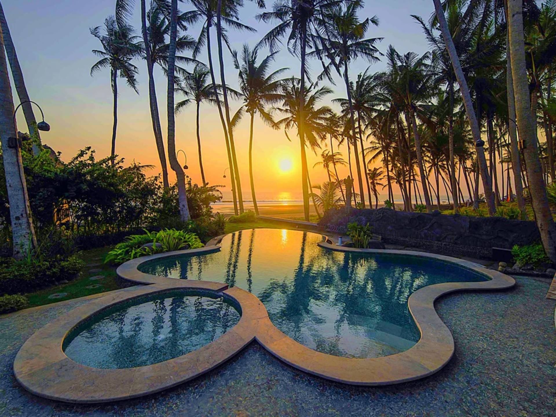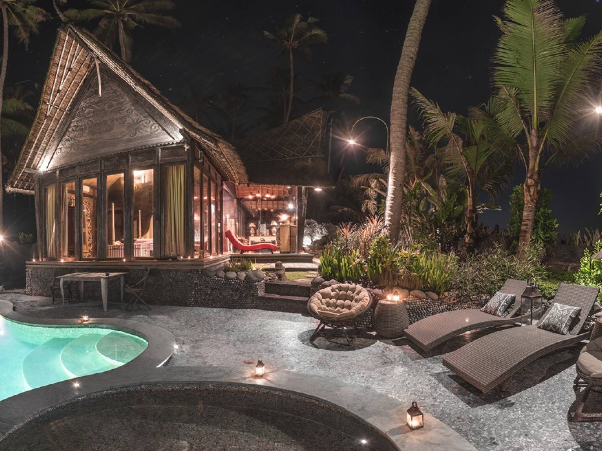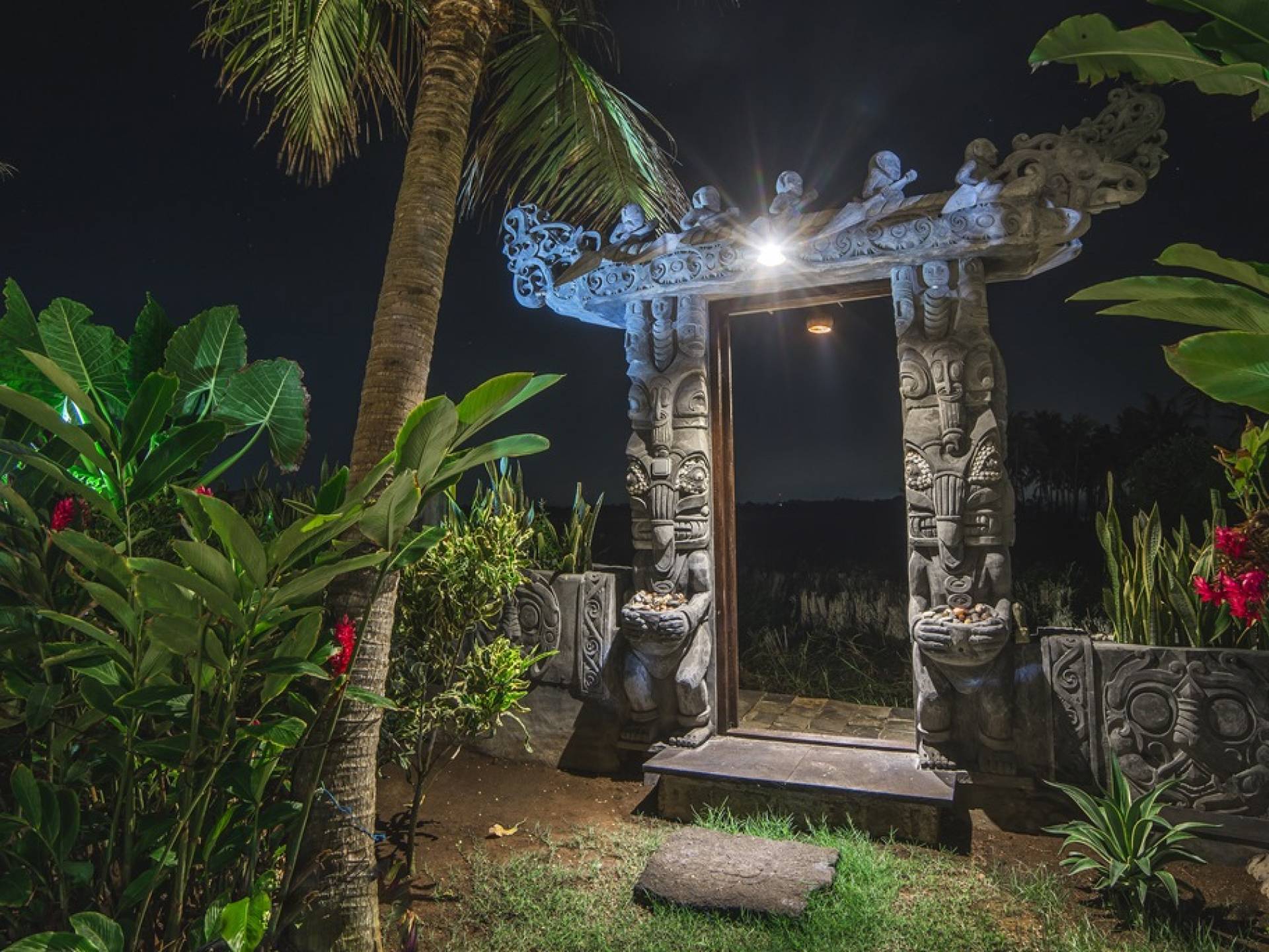 Fabuleuse villa située au bord de l'océan dans une petite palmeraie. L'atmosphère de cet endroit est extrêmement romantique - plages isolées, sable noir scintillant, rizières en terrasses émeraude sous le ciel étoilé. Construit en bois de fer avec d'immenses fenêtres panoramiques jusqu'au sol qui ouvrent une vue imprenable. Bungalow d'architecture - jeu éclectique des maisons de Sumatra Menang Kabo et au charme colonial, avec leur toit étonnant, s'ouvrent vers le haut comme les ailes d'un oiseau magique.