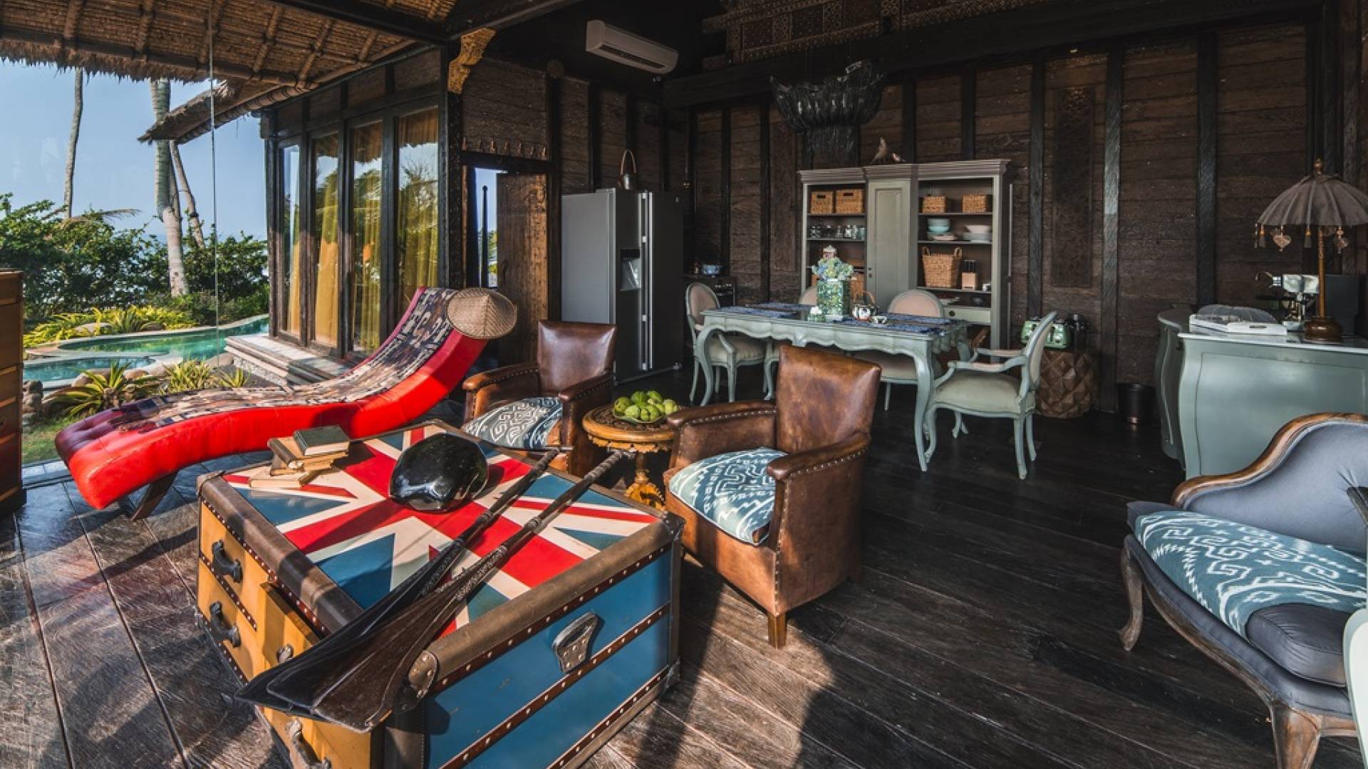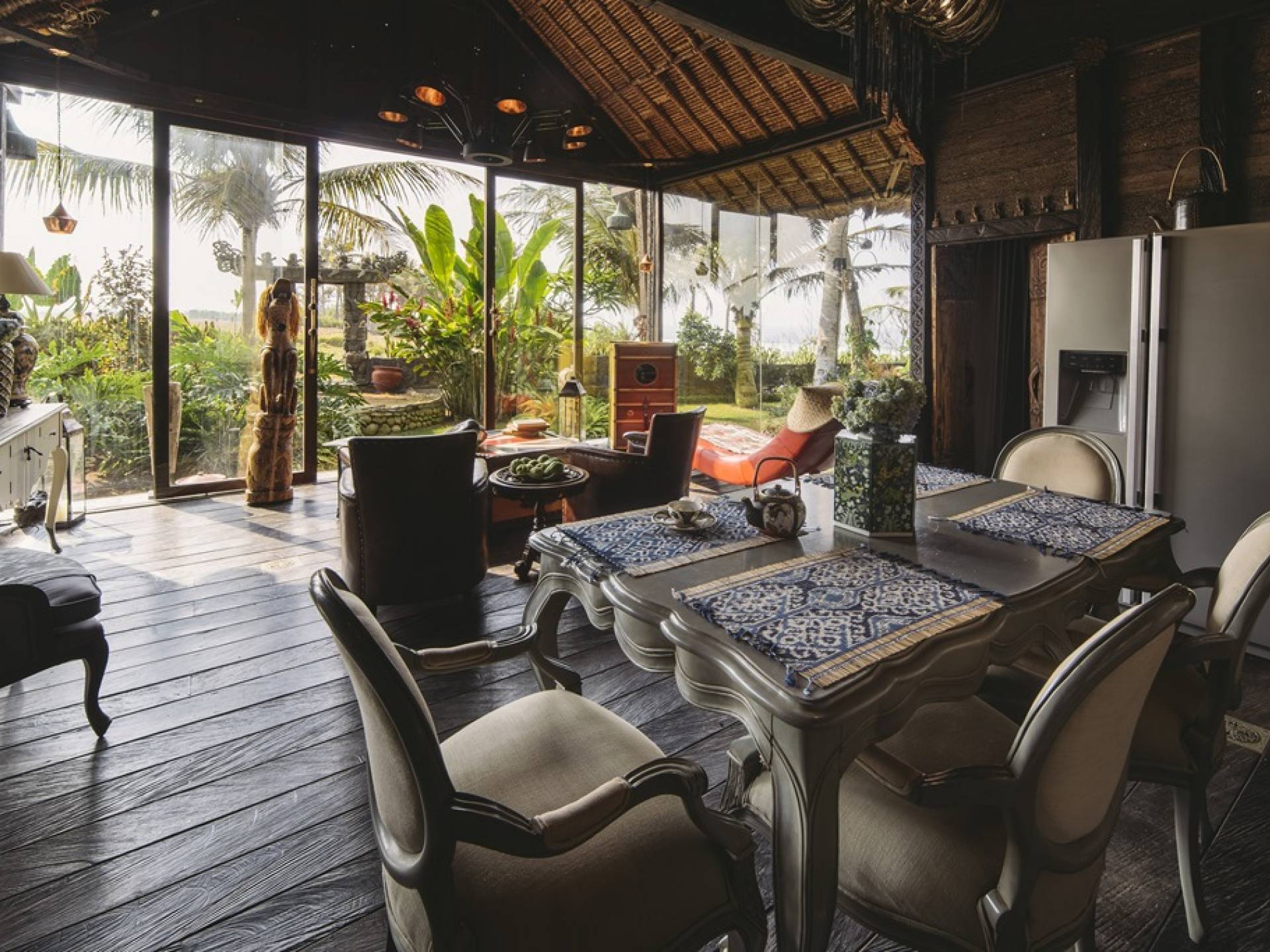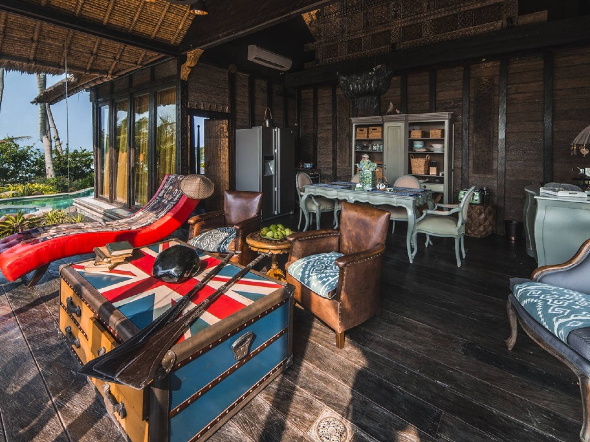 L'intérieur de la Villa Laut Bali combine des meubles design et des détails de différentes époques et pays, de nombreux objets uniques, créés d'après les croquis des propriétaires - architectes. Commodes Félix Monge, lustres fluides Terzani, un coin repas, Louis 15, lampe en porcelaine de Chine, antique, lustre bateau design, créé par les architectes, panneaux sculptés et portes collectés dans différentes îles d'Indonésie, beaucoup de beaux objets, tout ceci est une histoire d'une belle histoire de voyage et de romance.