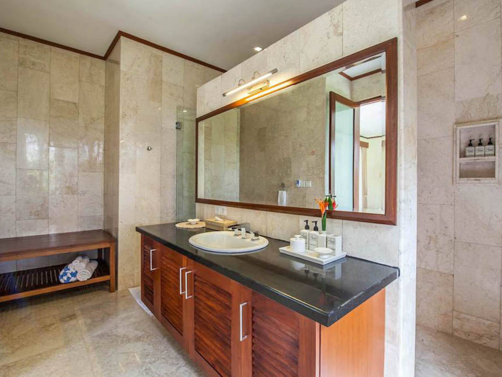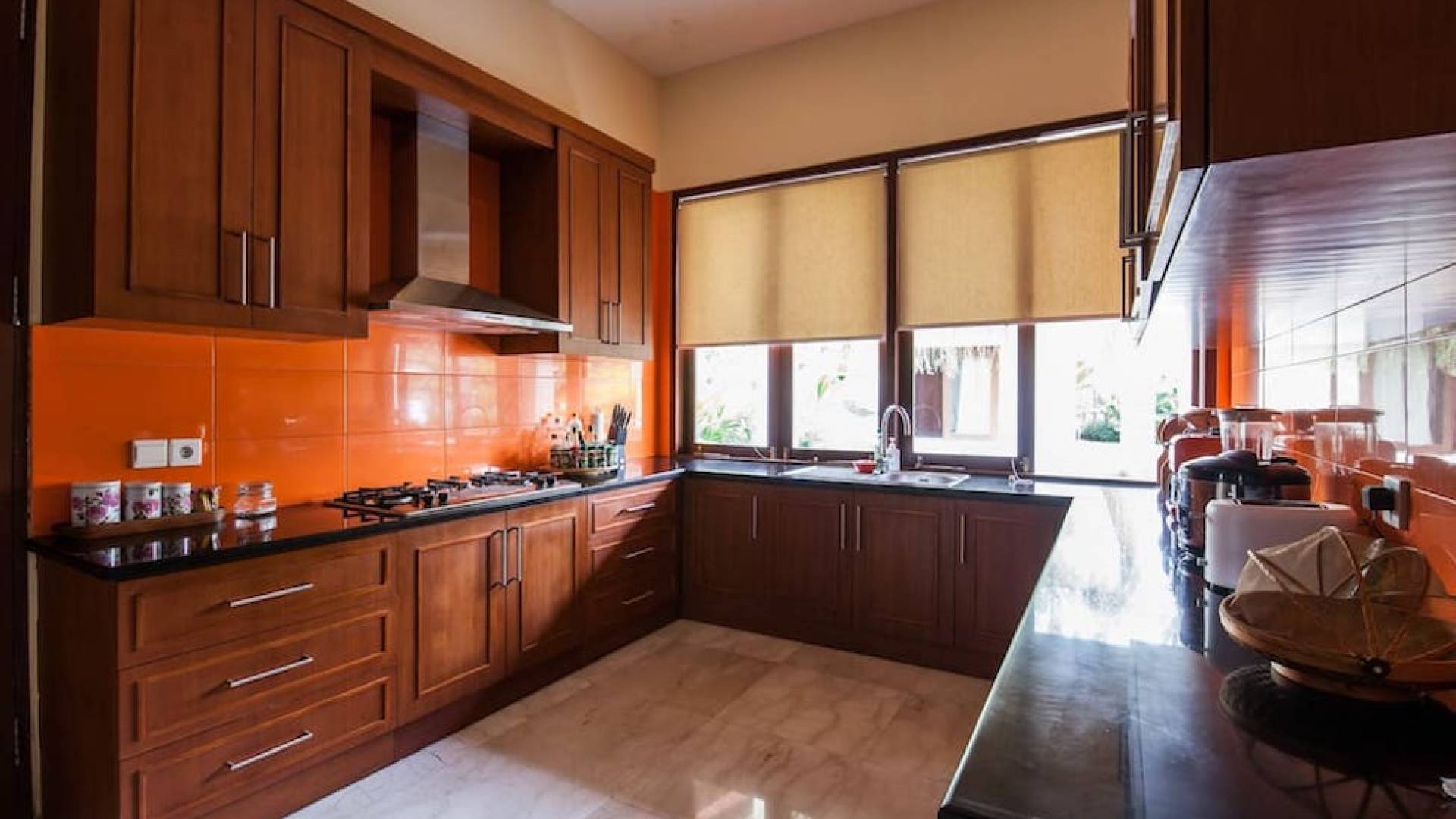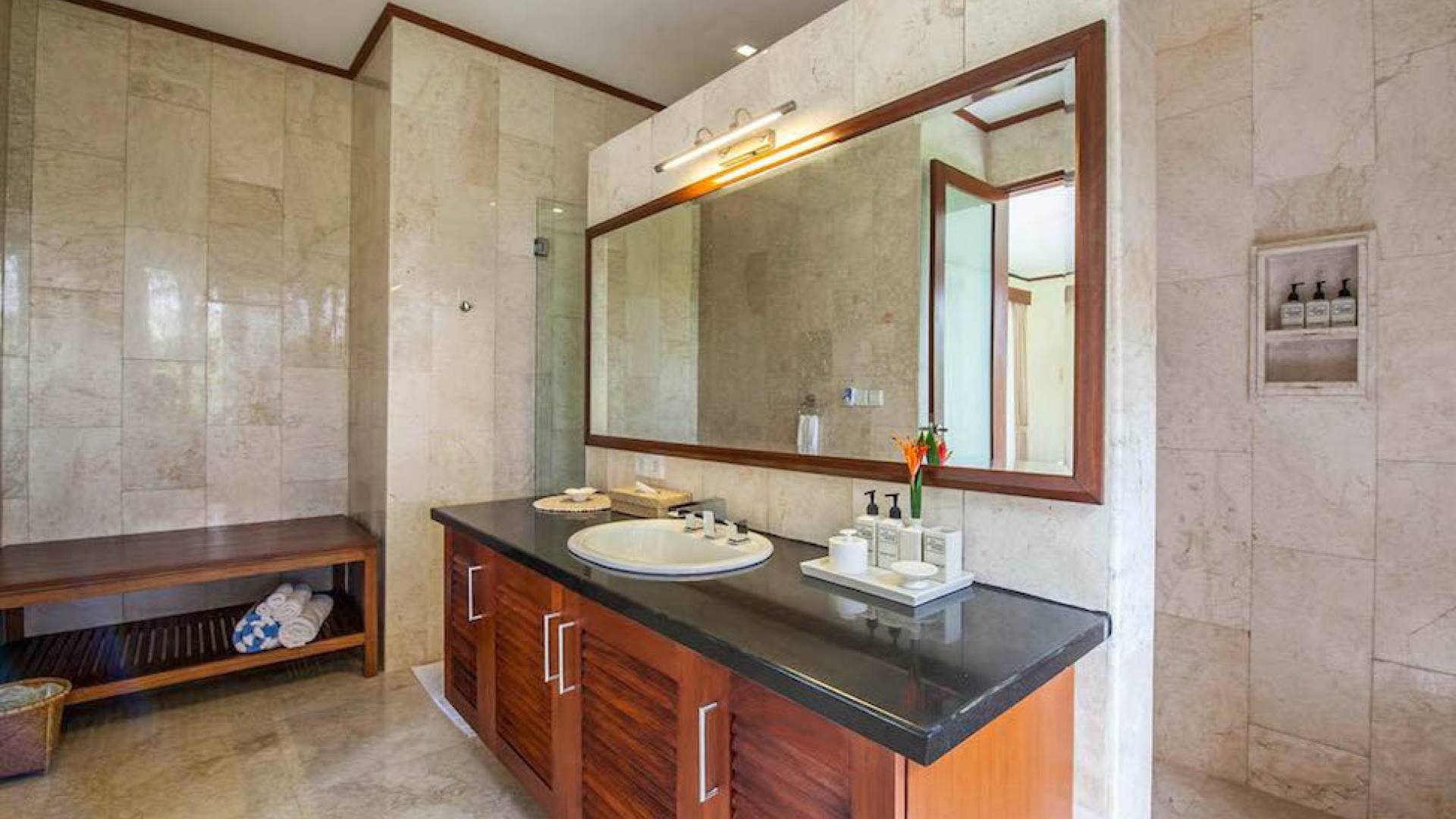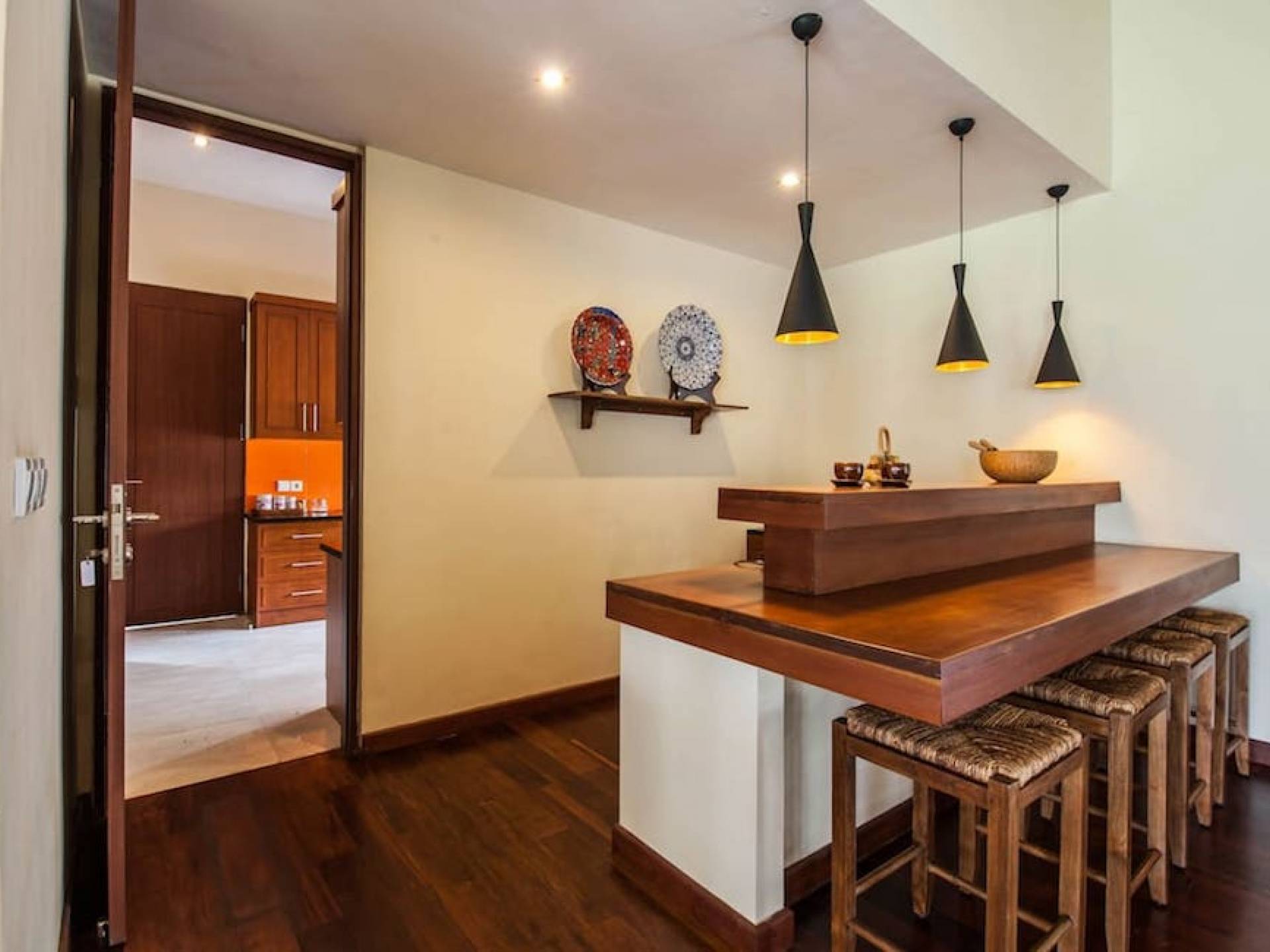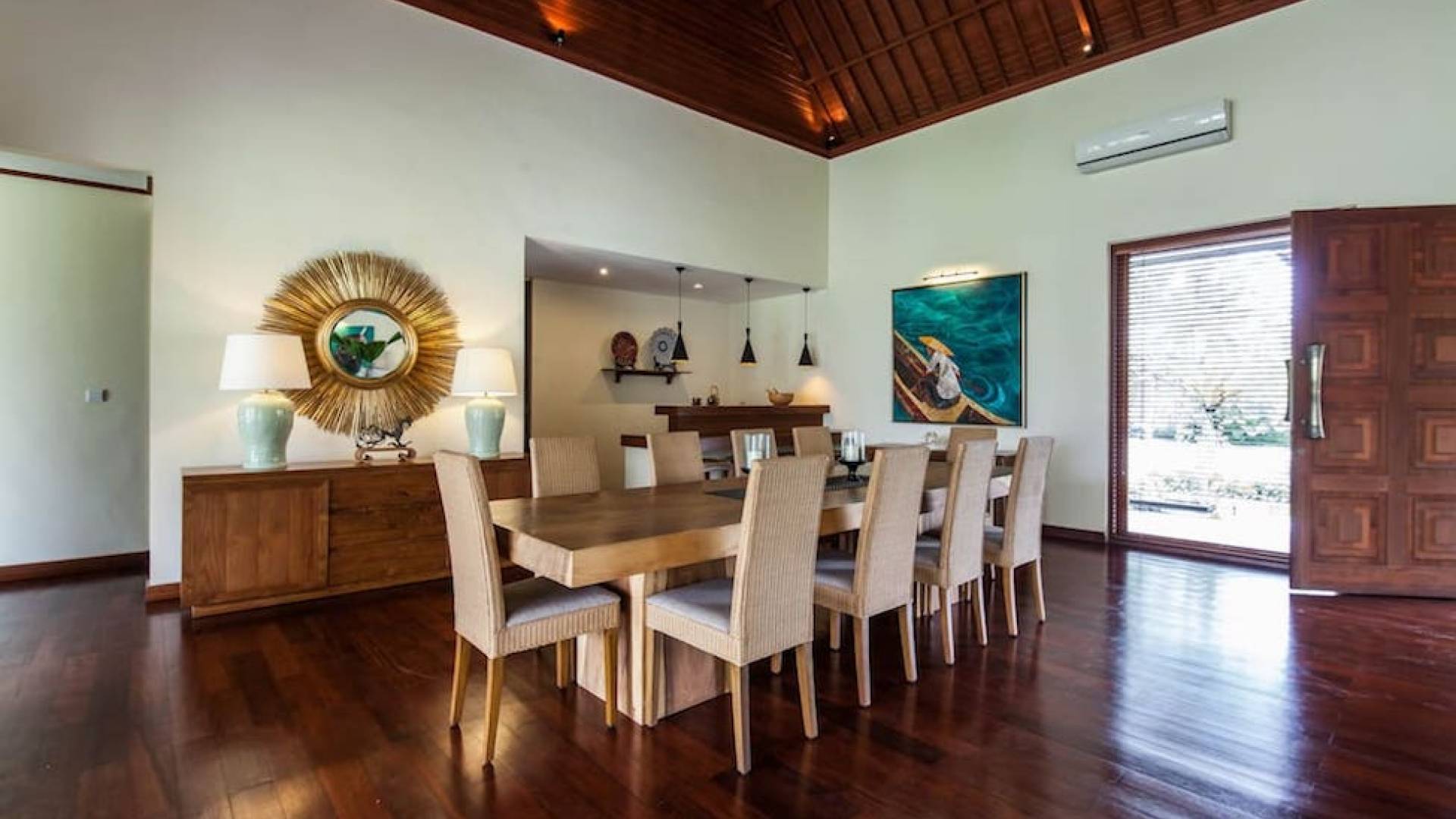 Intégrés dans le salon, une cuisine moderne et un bar ou un garde-manger sont également fournis au personnel pour préparer les délicieux repas servis aux clients de l'hôtel, en plus d'être utilisés par les clients eux-mêmes pour cuisiner leurs propres repas savoureux . De plus, cette maison dispose également de divers endroits pour vous détendre et vous détendre dans toute la résidence, par ex. le Bale au bord de la piscine ou le grand yoga Bale d'observation et de relaxation au sommet des suites d'invités. Il y a un jardin tropical exquis qui entoure un 14 m. piscine à débordement.