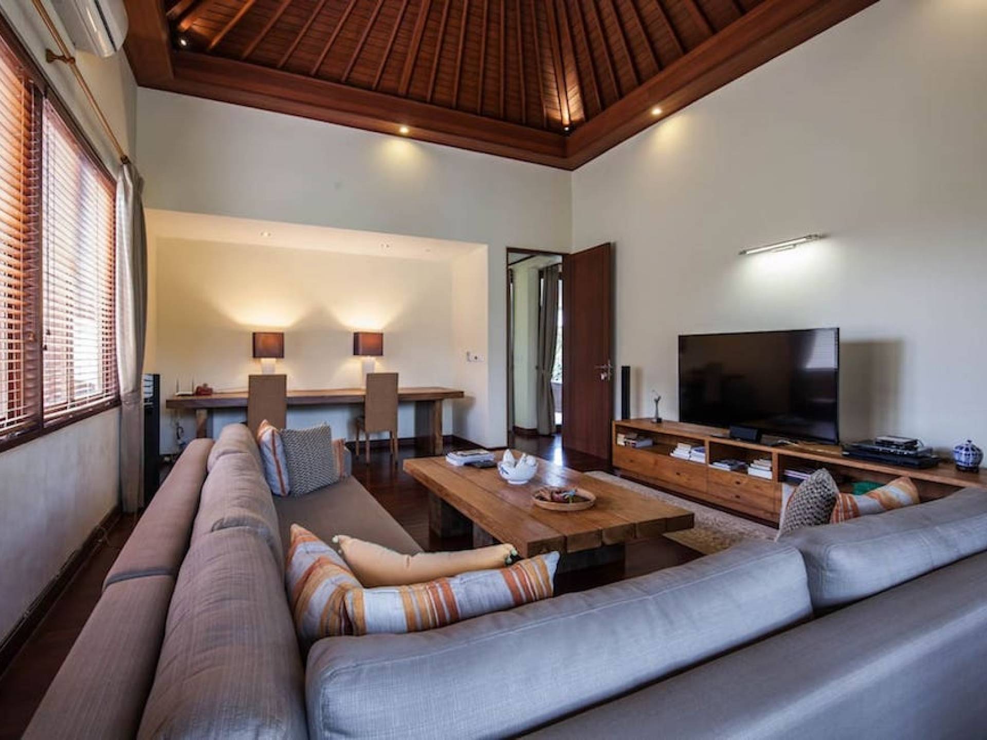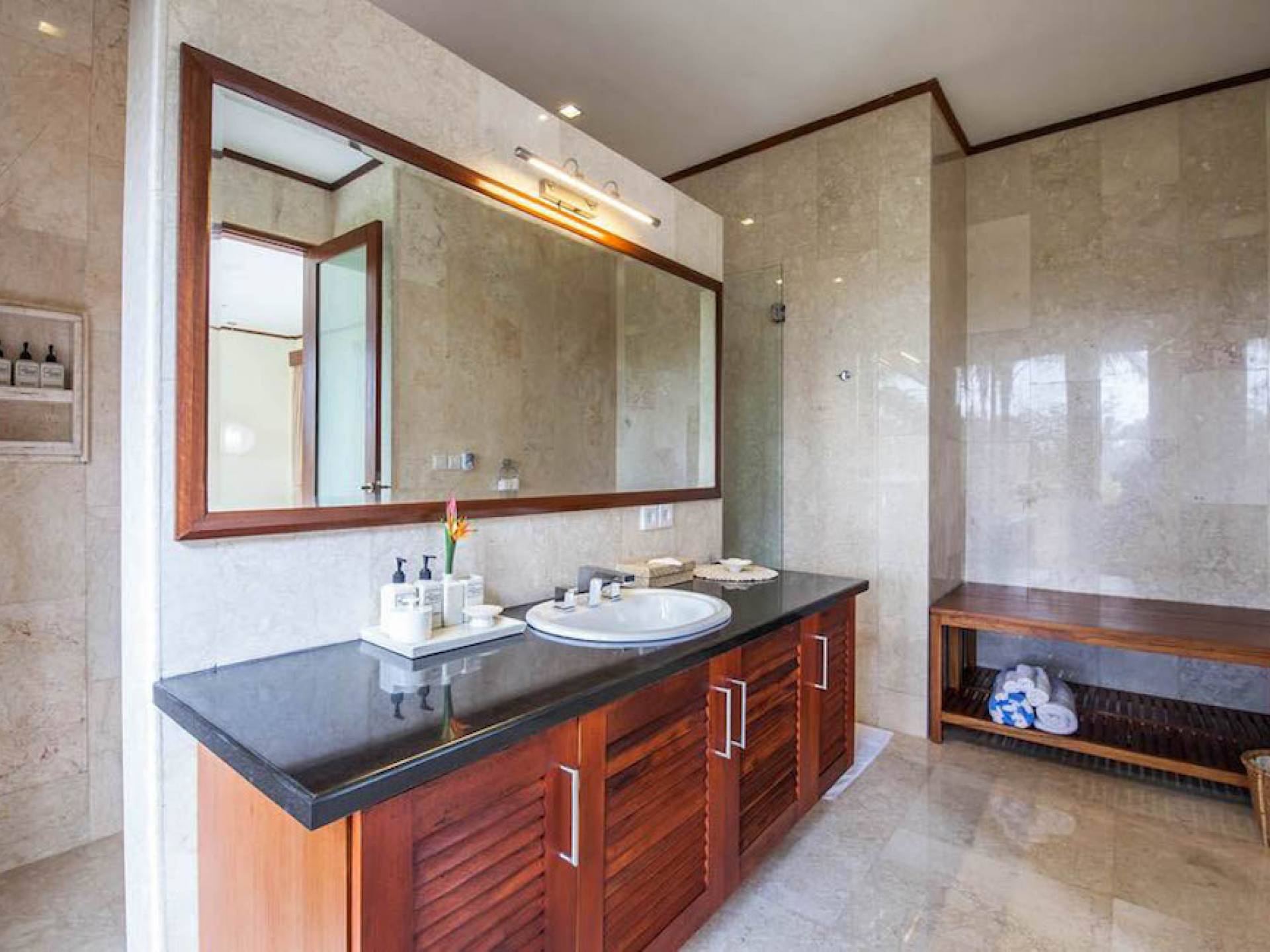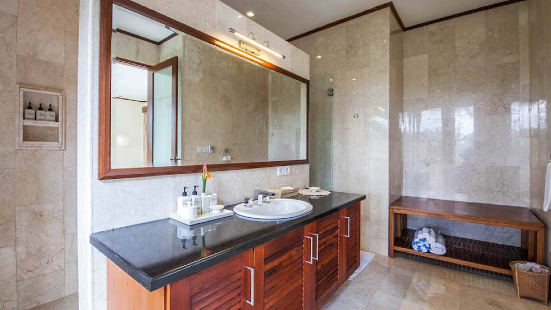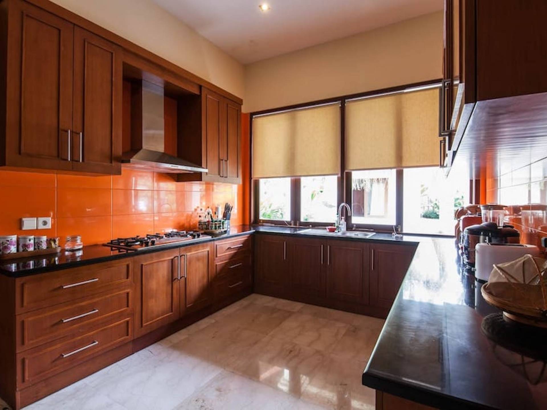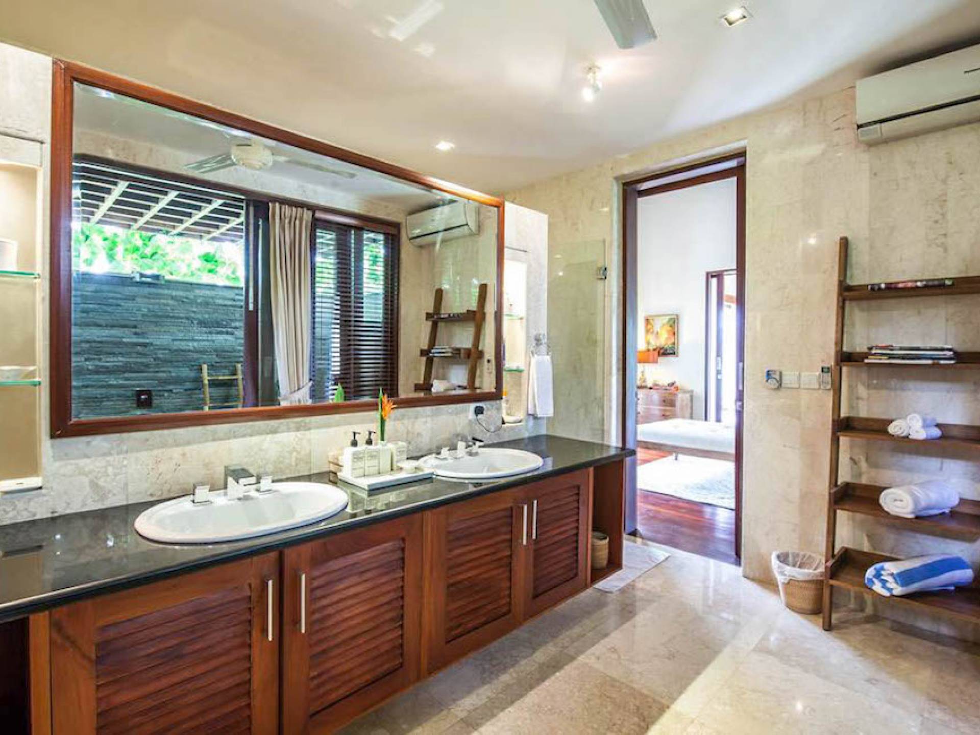 Intégrés dans le salon, une cuisine moderne et un bar ou un garde-manger sont également fournis au personnel pour préparer les délicieux repas servis aux clients de l'hôtel, en plus d'être utilisés par les clients eux-mêmes pour cuisiner leurs propres repas savoureux . De plus, cette maison dispose également de divers endroits pour vous détendre et vous détendre dans toute la résidence, par ex. le Bale au bord de la piscine ou le grand yoga Bale d'observation et de relaxation au sommet des suites d'invités. Il y a un jardin tropical exquis qui entoure un 14 m. piscine à débordement.