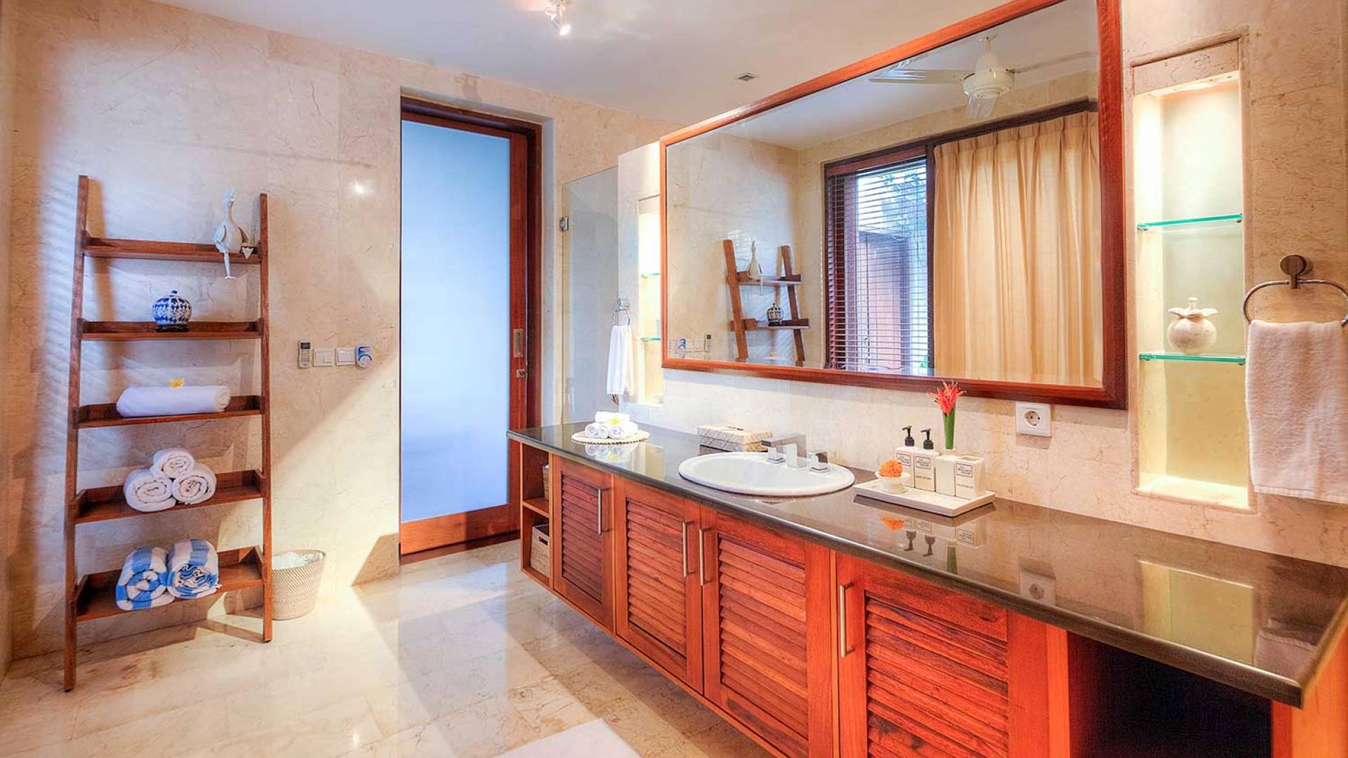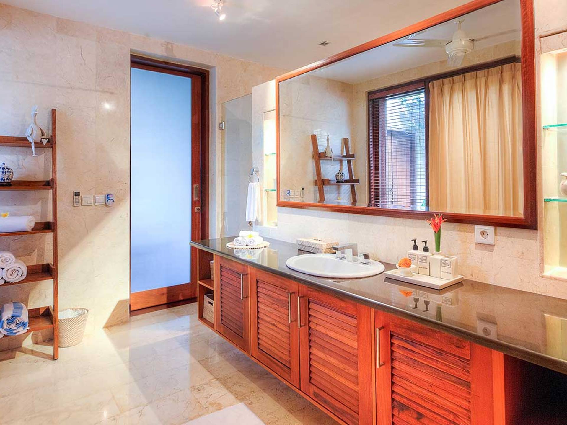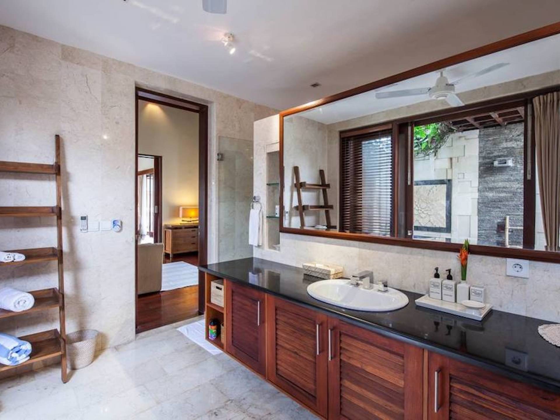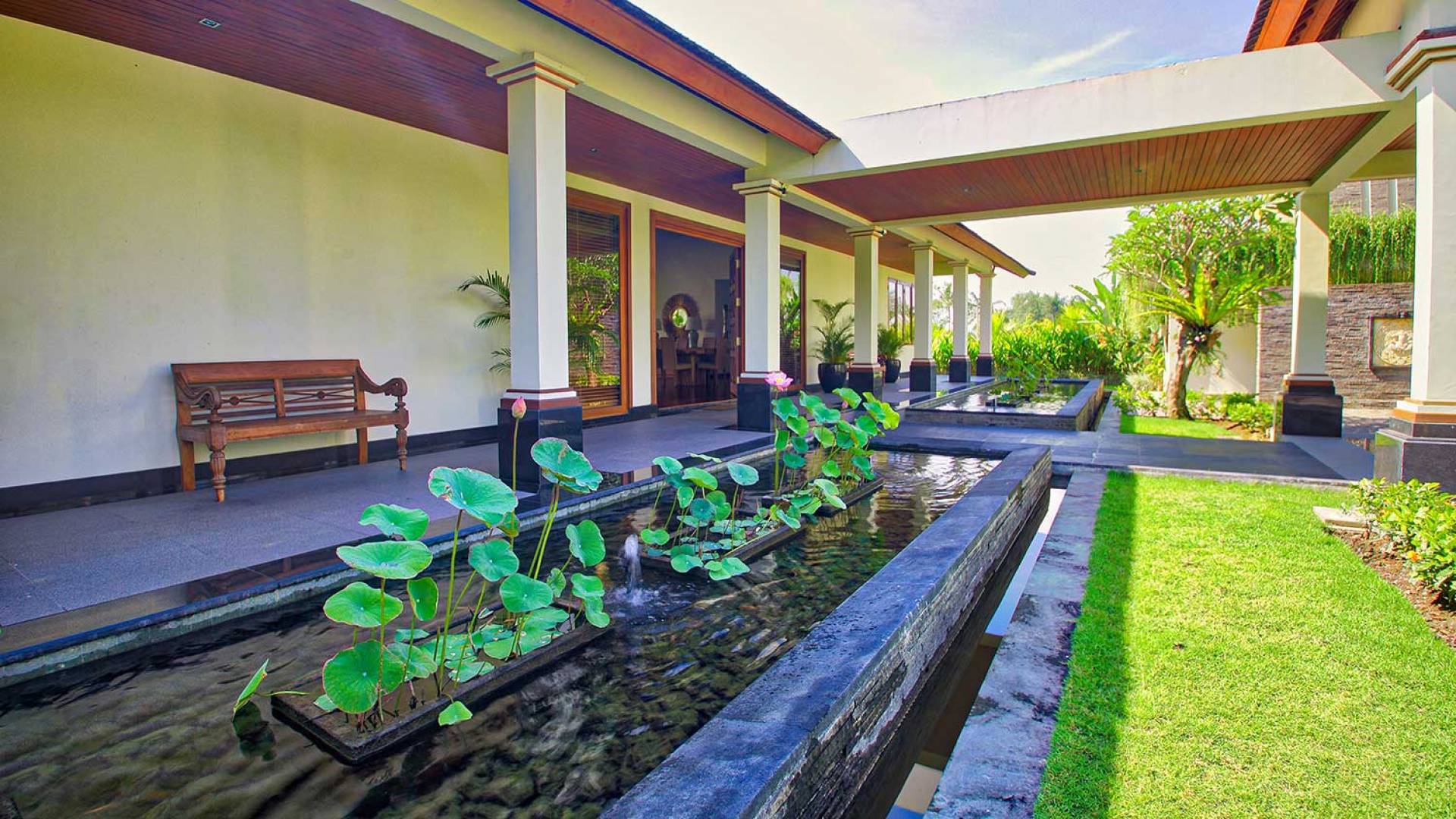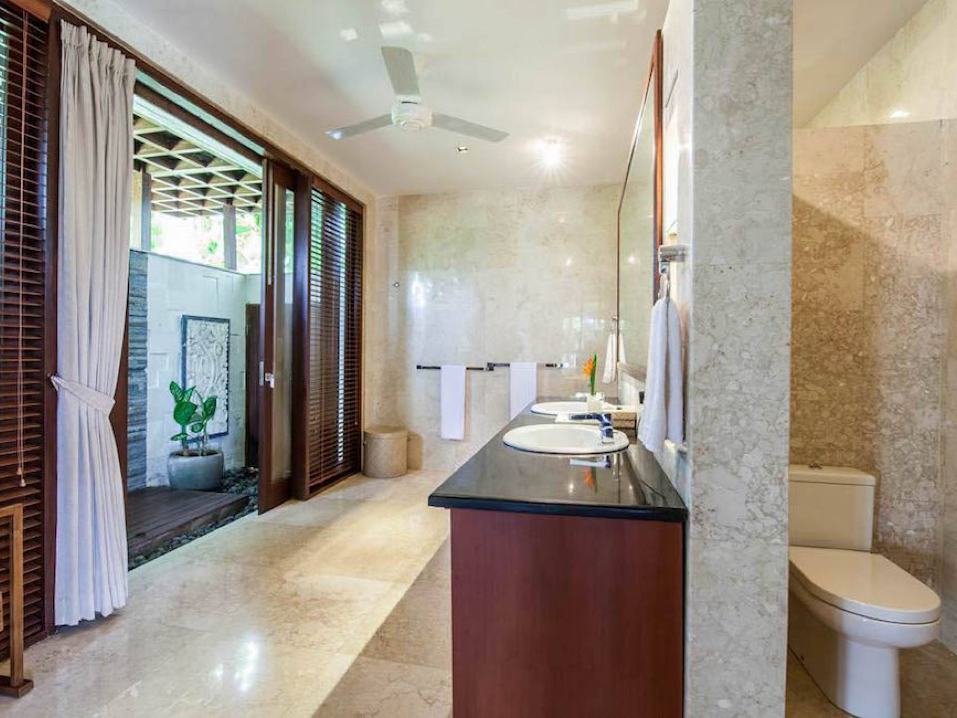 Intégrés dans le salon, une cuisine moderne et un bar ou un garde-manger sont également fournis au personnel pour préparer les délicieux repas servis aux clients de l'hôtel, en plus d'être utilisés par les clients eux-mêmes pour cuisiner leurs propres repas savoureux . De plus, cette maison dispose également de divers endroits pour vous détendre et vous détendre dans toute la résidence, par ex. le Bale au bord de la piscine ou le grand yoga Bale d'observation et de relaxation au sommet des suites d'invités. Il y a un jardin tropical exquis qui entoure un 14 m. piscine à débordement.