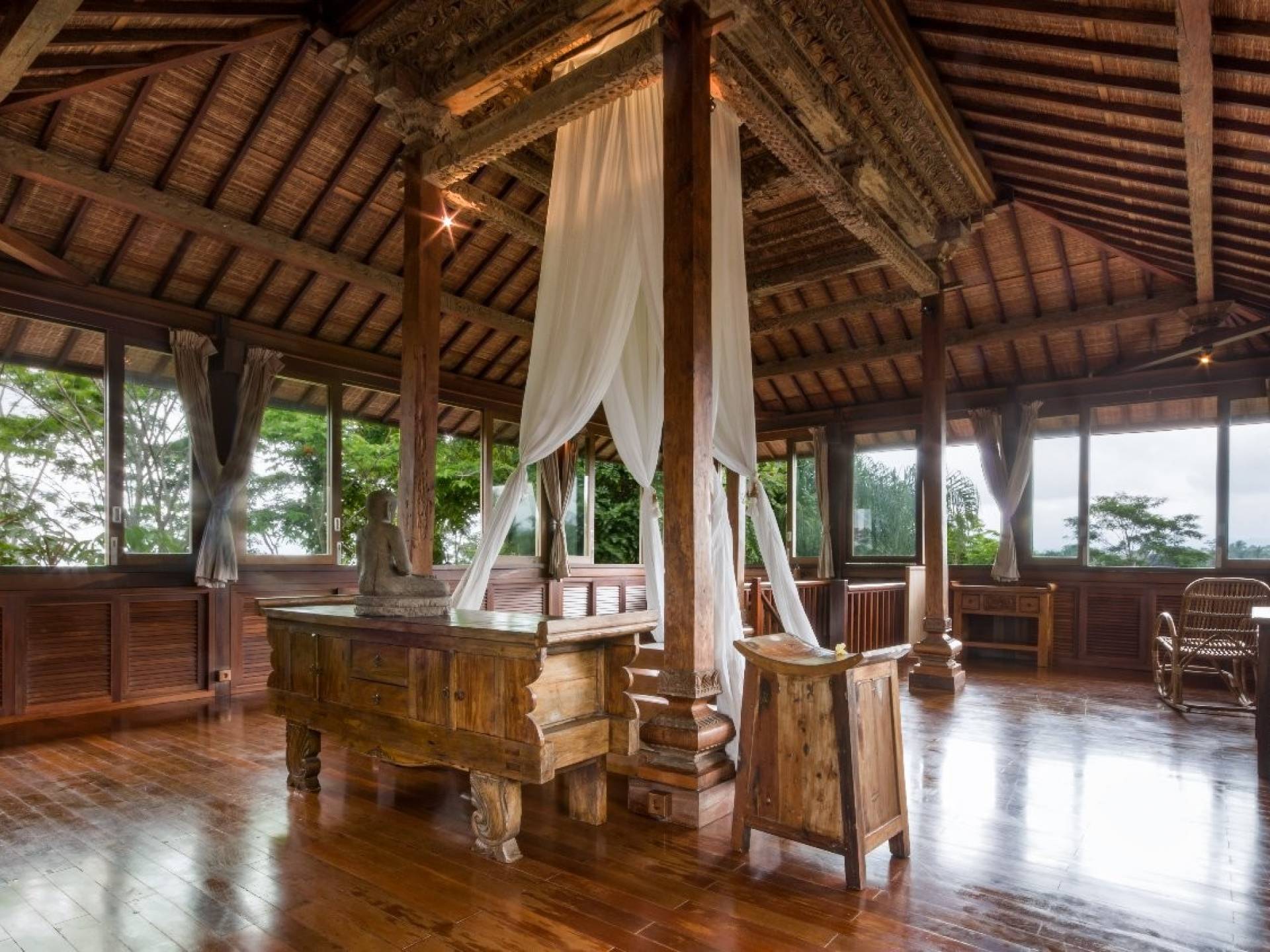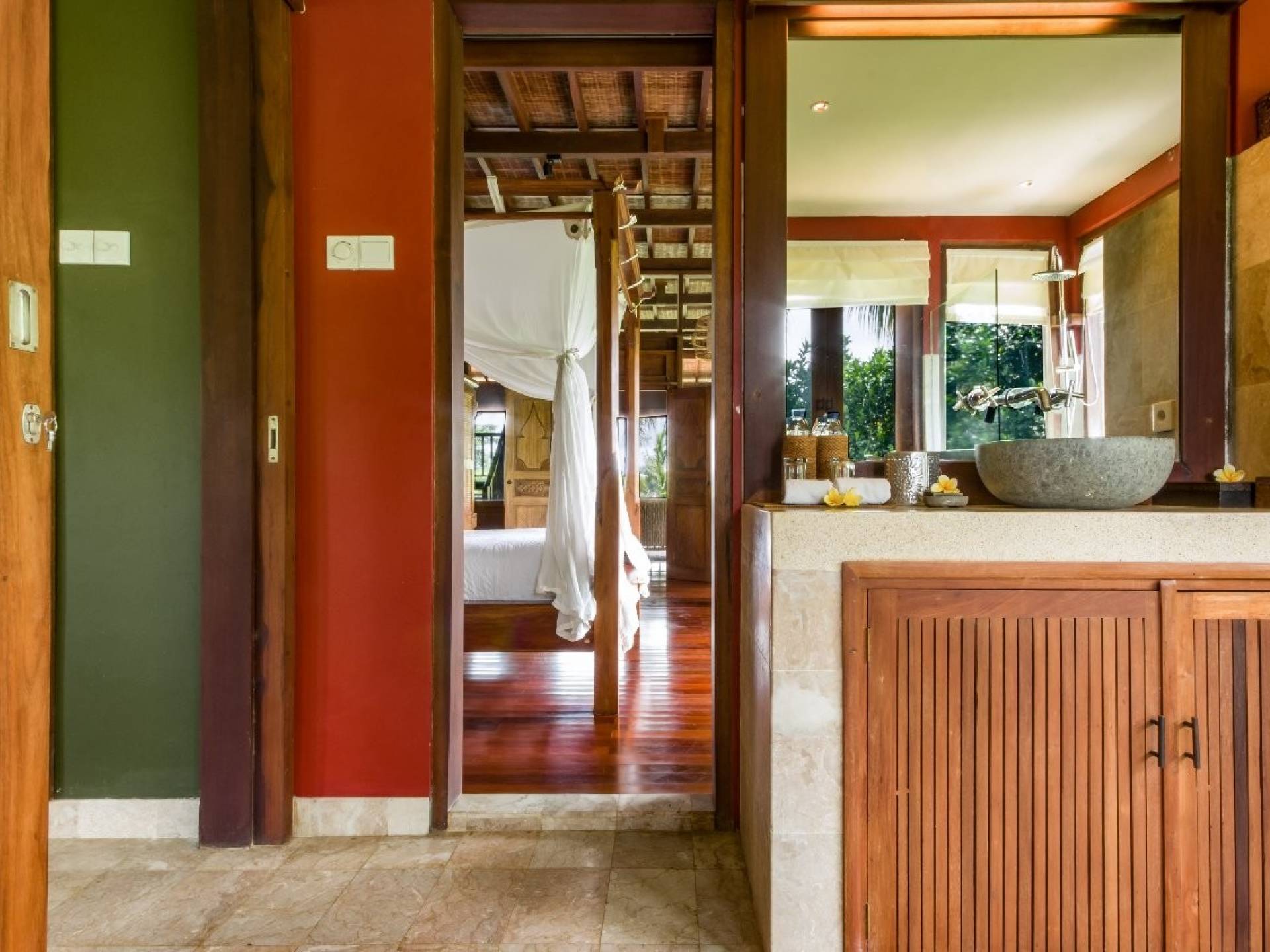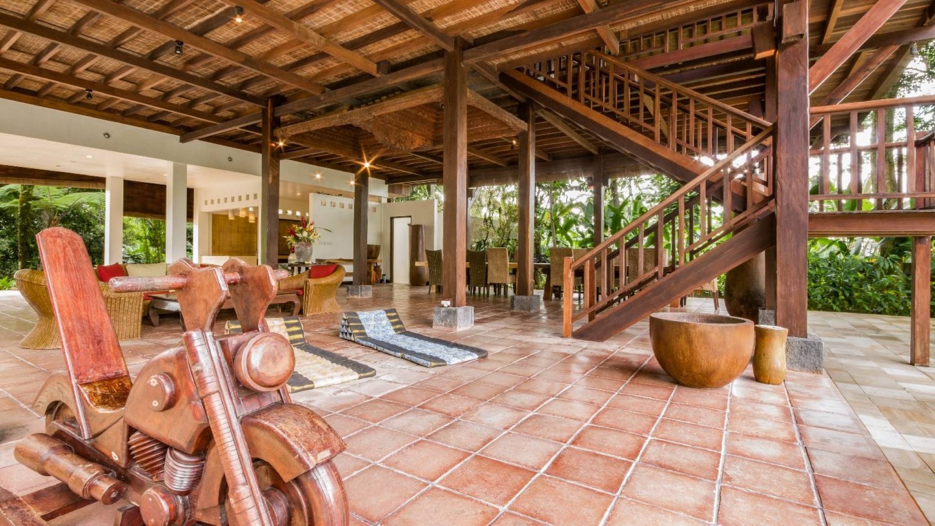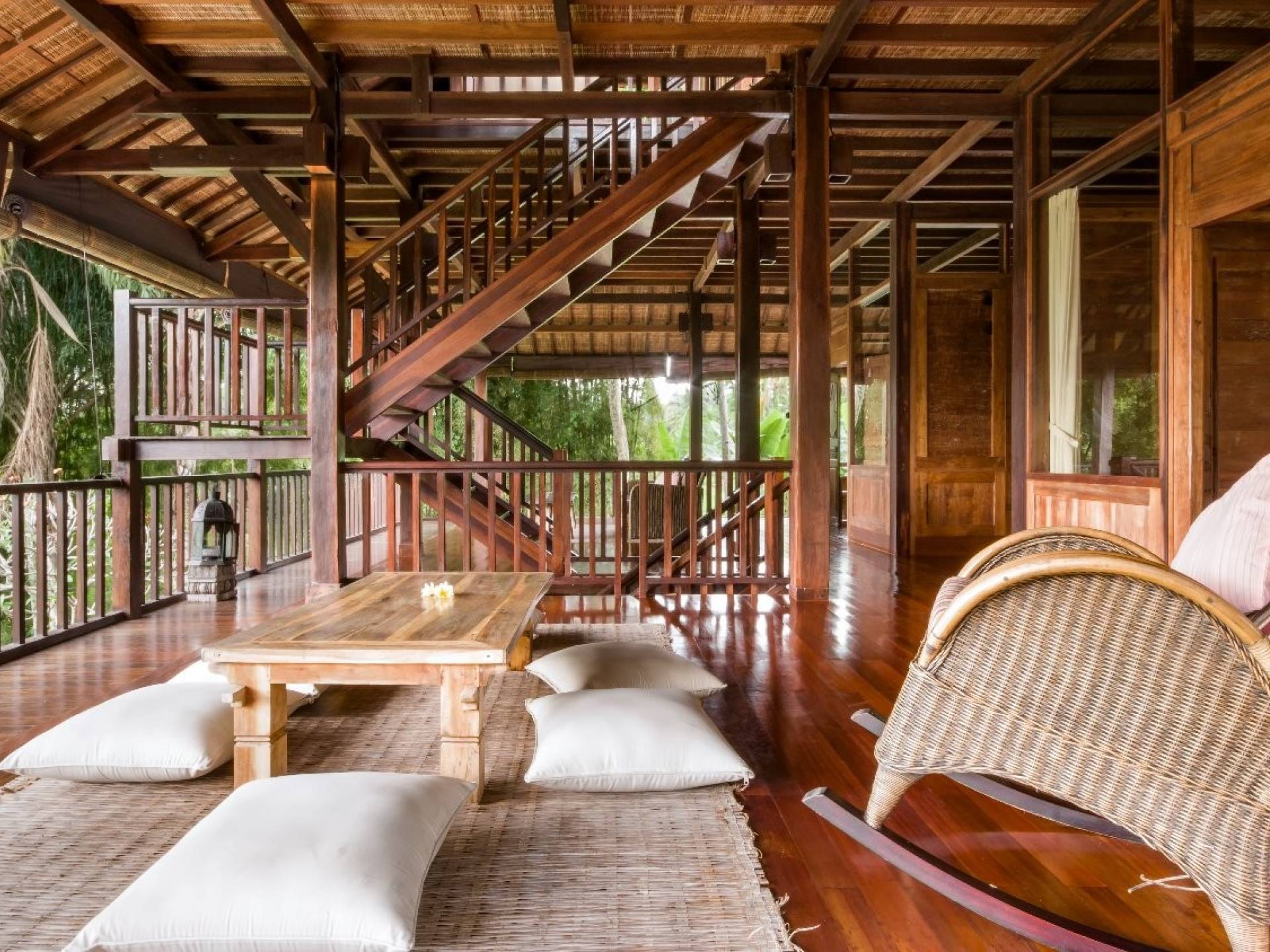 Entourée de verdure et décorée dans des tons de bois terreux avec des touches de détails de couleurs vives, cette villa en location conserve l'architecture traditionnelle pour vous offrir une expérience orientale complète. Les vastes jardins, les terrasses de la piscine et les coins salons ouverts aux premier et deuxième étages de la maison offrent de merveilleux espaces de vie en plein air. La quiétude et l'énergie de ce lieu vous feront vivre une expérience unique, alliant éléments traditionnels et modernes. Villa Atas Awan Ubud est plus qu'une simple location de villa; cela fait partie d'une expérience culturelle.