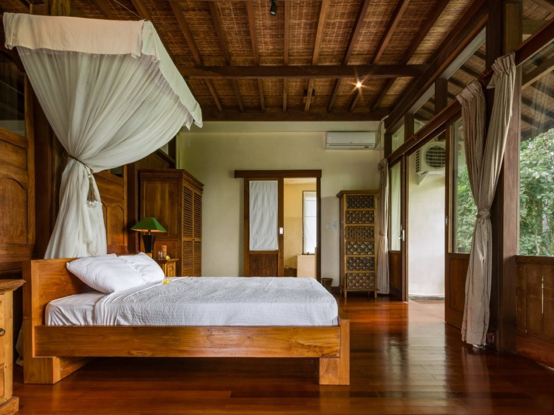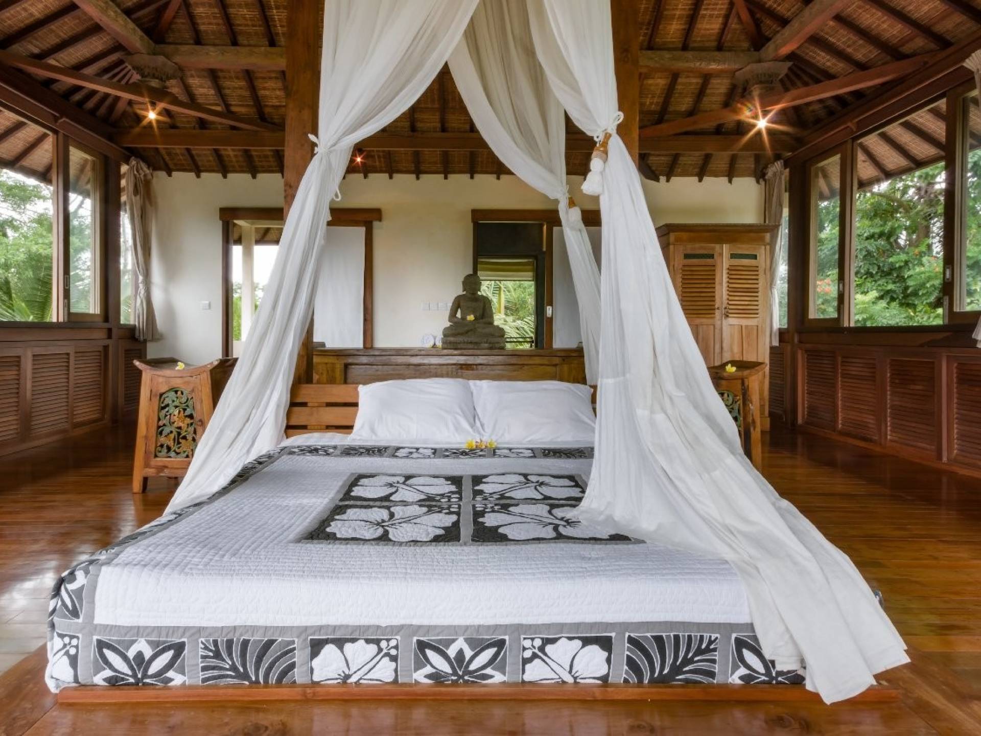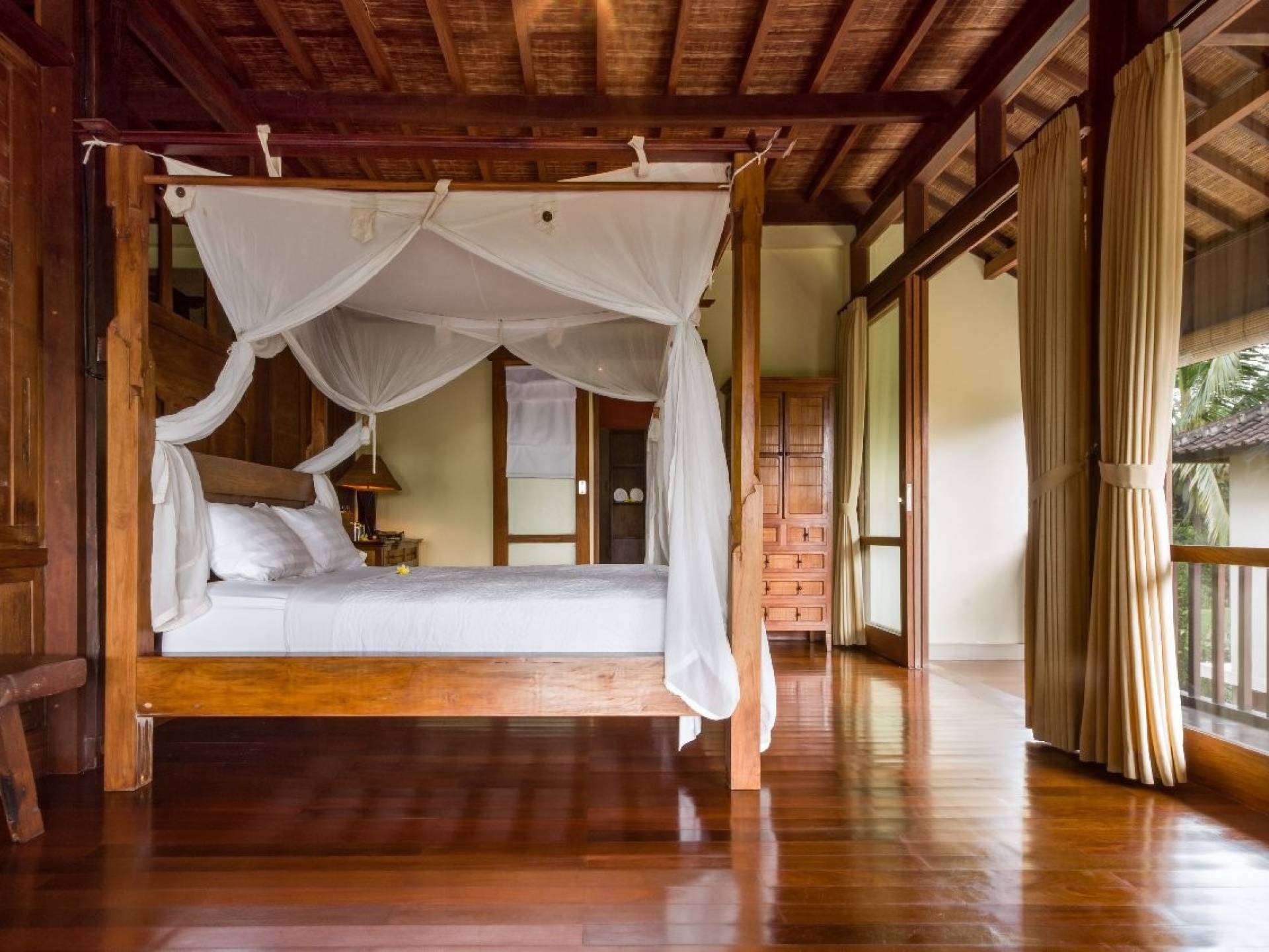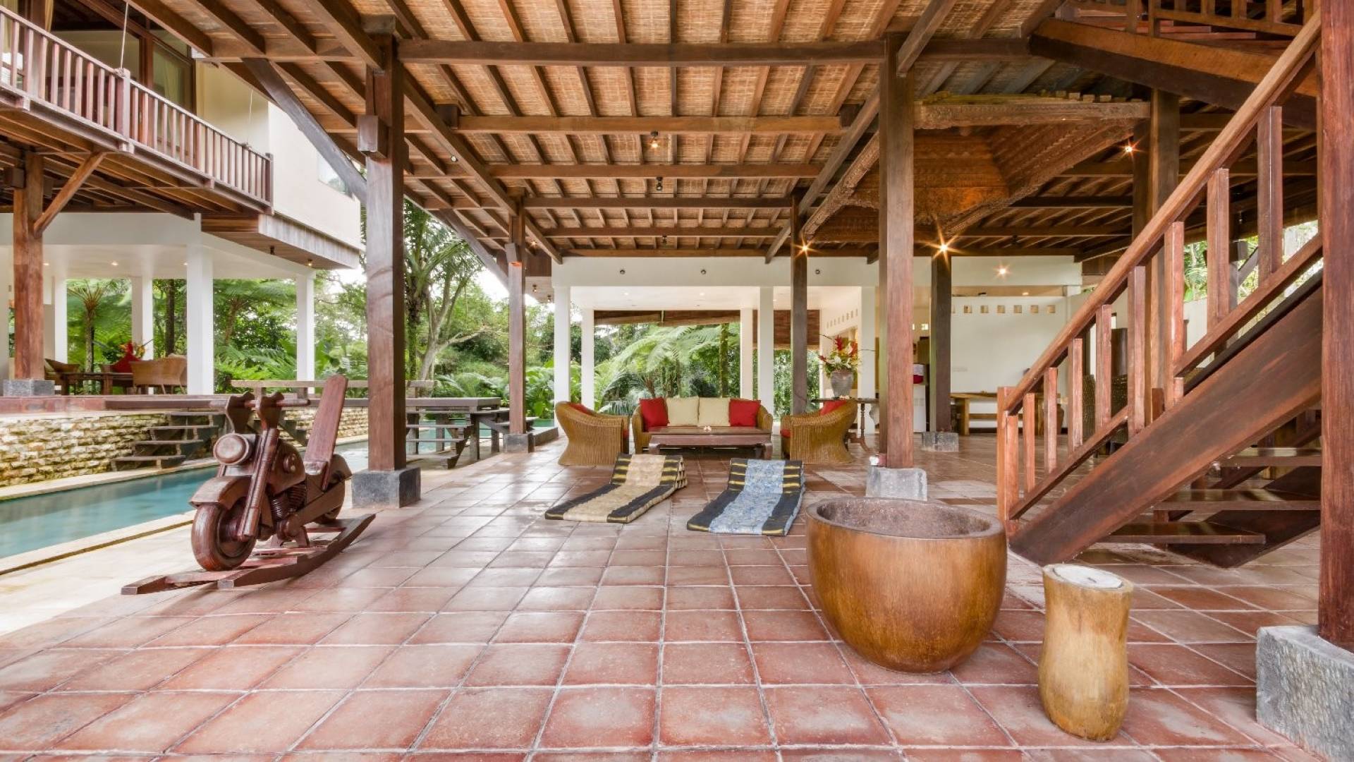Entourée de verdure et décorée dans des tons de bois terreux avec des touches de détails de couleurs vives, cette villa en location conserve l'architecture traditionnelle pour vous offrir une expérience orientale complète. Les vastes jardins, les terrasses de la piscine et les coins salons ouverts aux premier et deuxième étages de la maison offrent de merveilleux espaces de vie en plein air. La quiétude et l'énergie de ce lieu vous feront vivre une expérience unique, alliant éléments traditionnels et modernes. Villa Atas Awan Ubud est plus qu'une simple location de villa; cela fait partie d'une expérience culturelle.