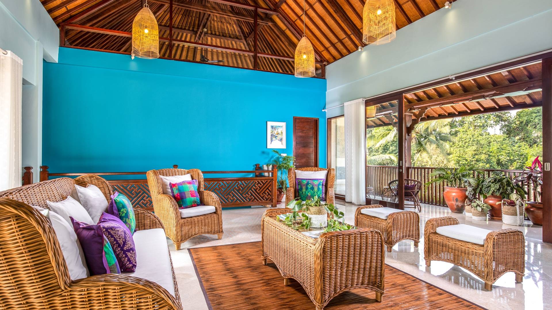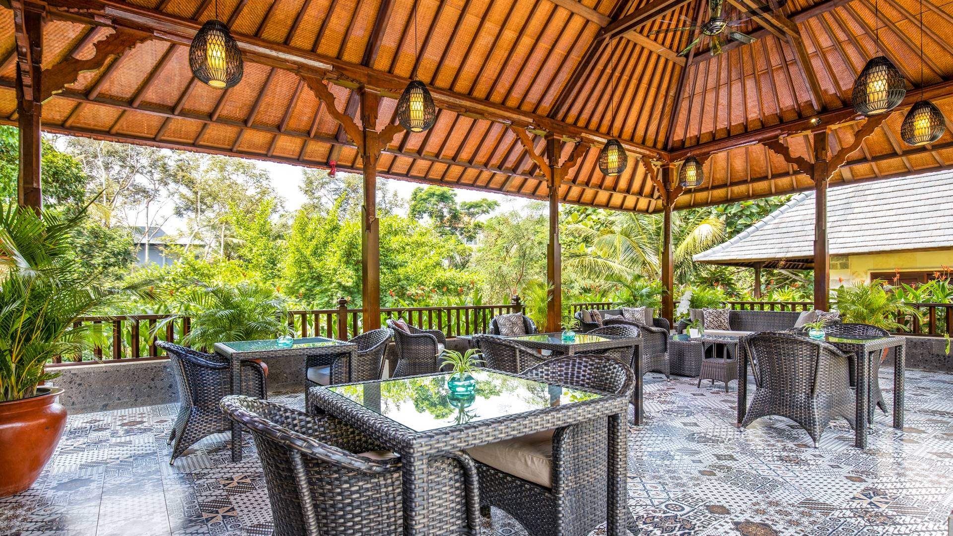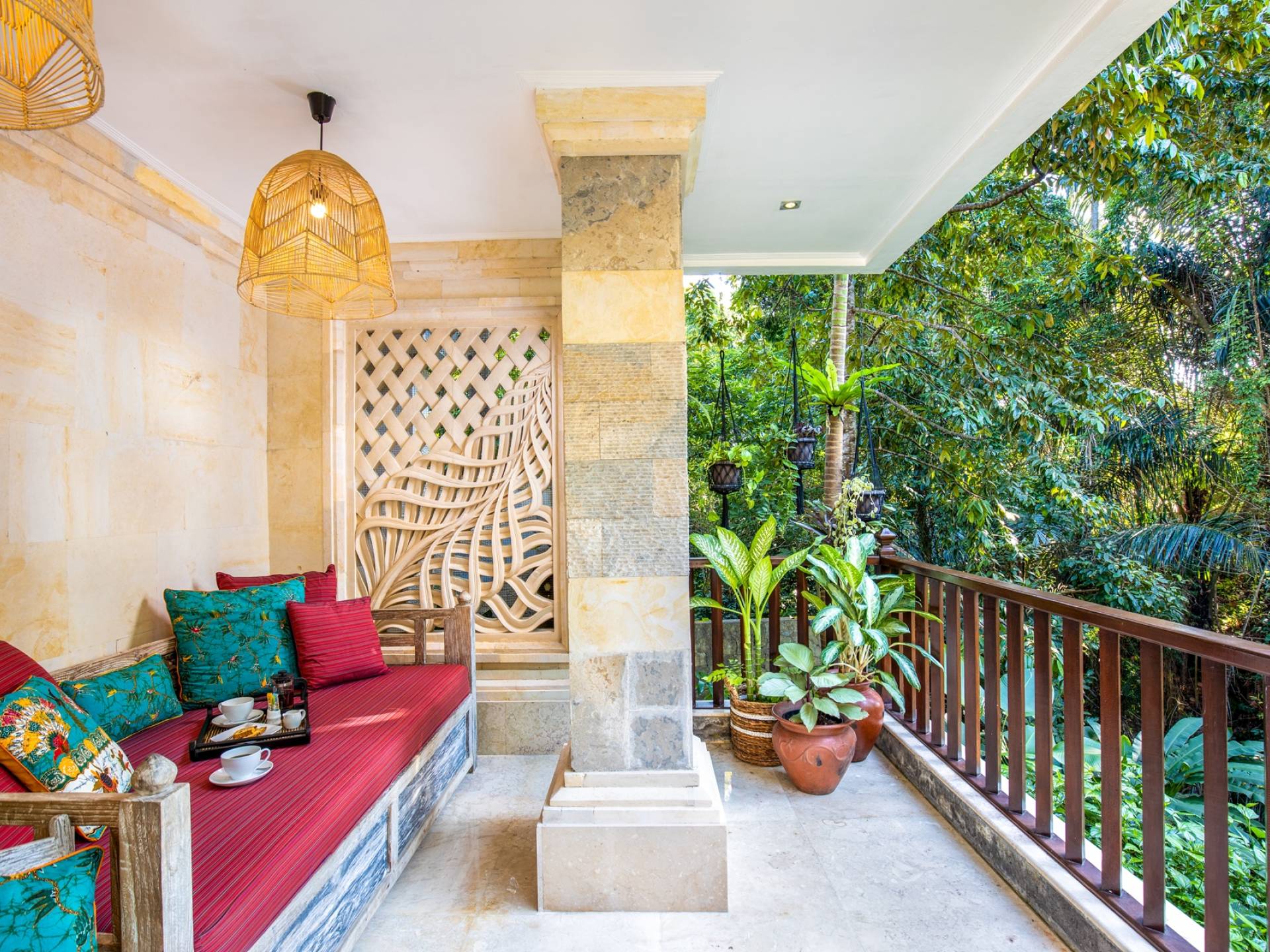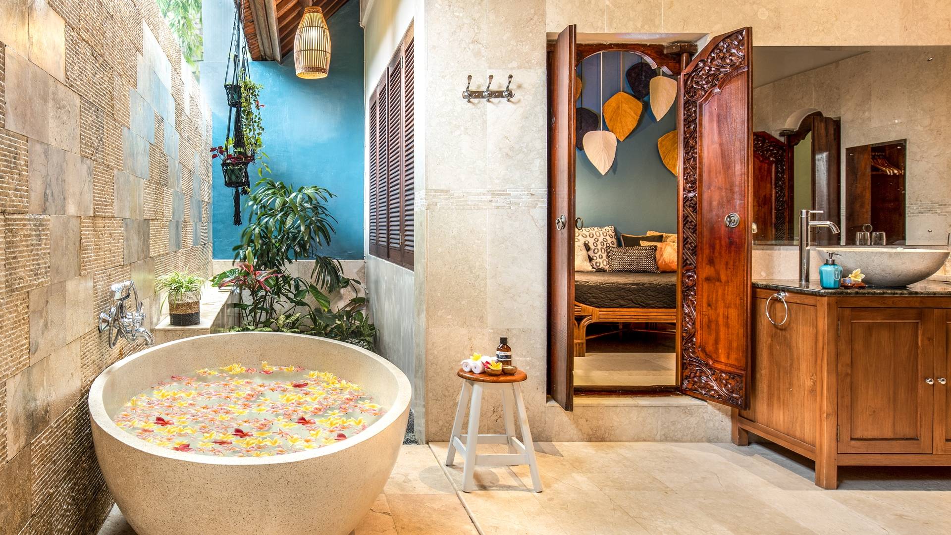La Villa Kano Sari se compose de six suites réparties autour d'une belle piscine, dans de magnifiques jardins tropicaux surplombant les gorges de la rivière Jero Gadung. Conçu à l'origine comme une maison familiale de luxe, il y a une abondance d'espaces privés et communs bien pensés. Toutes les suites sont conçues et décorées individuellement. Ces chambres très spacieuses sont lumineuses et aérées, chacune avec sa propre terrasse extérieure privée. Tous les espaces de couchage sont climatisés et disposent de meubles fabriqués à la main sur mesure, de draps et de tissus d'ameublement balinais raffinés, de lampes de lecture et de moustiquaires drapées.