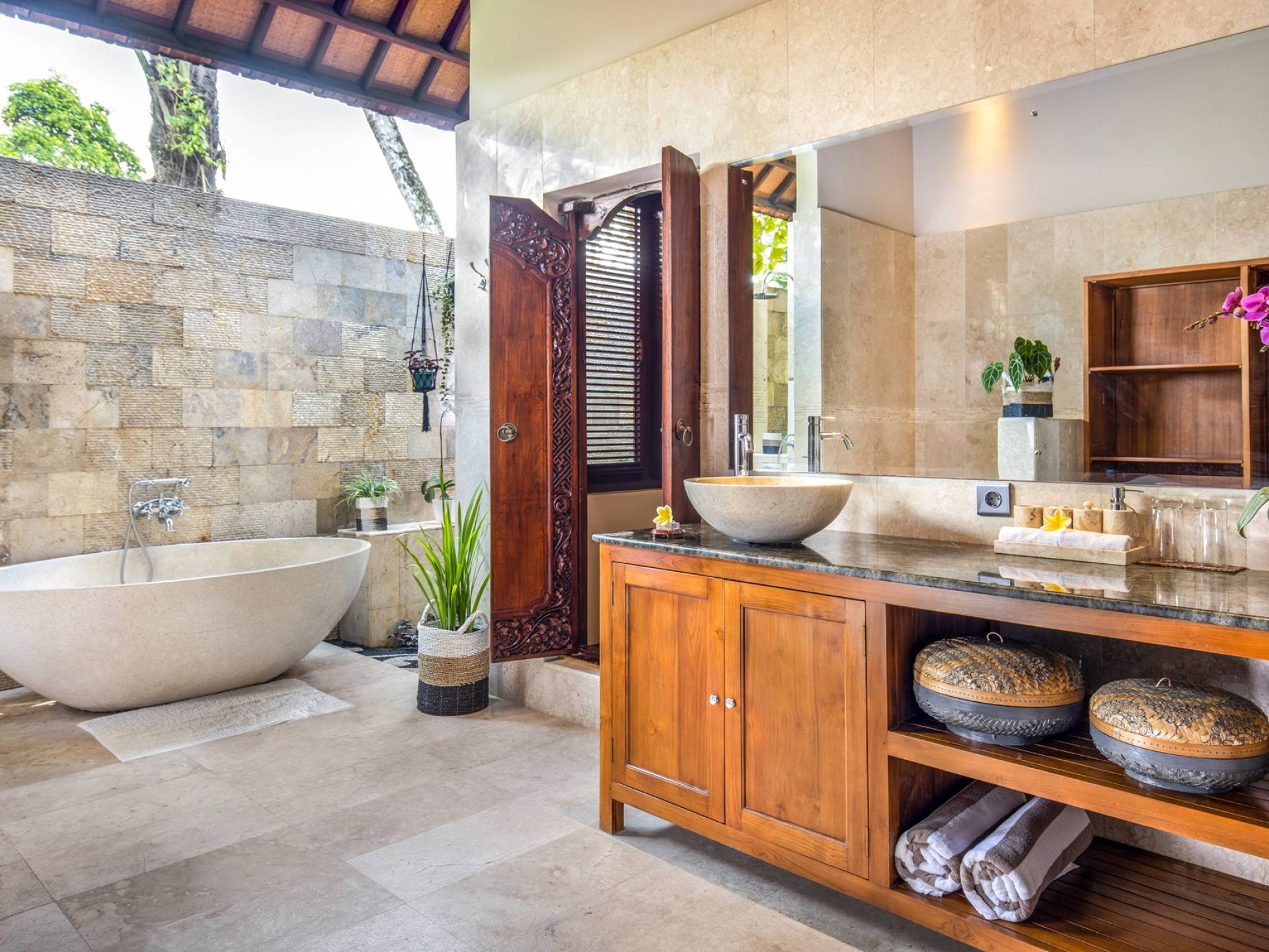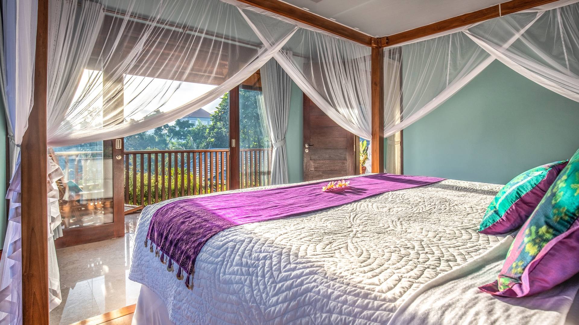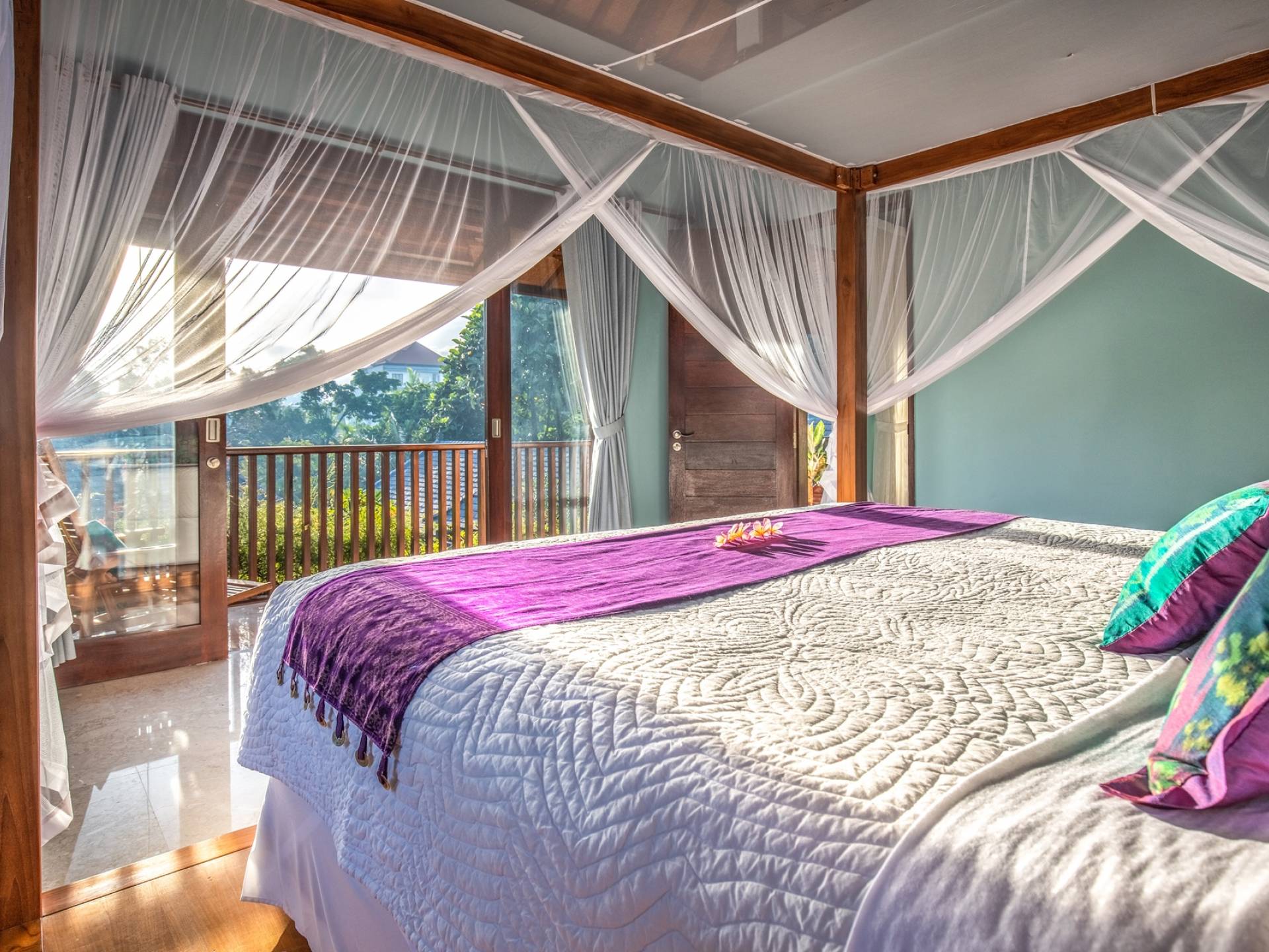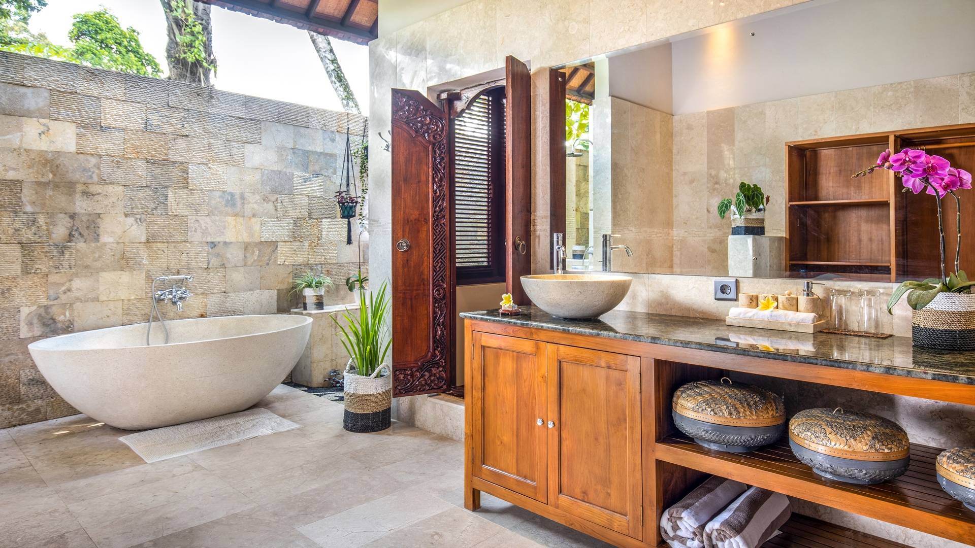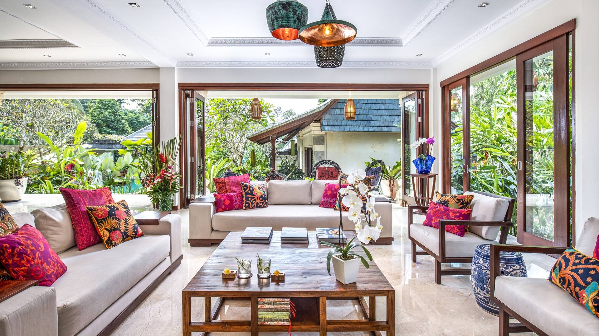 La Villa Kano Sari se compose de six suites réparties autour d'une belle piscine, dans de magnifiques jardins tropicaux surplombant les gorges de la rivière Jero Gadung. Conçu à l'origine comme une maison familiale de luxe, il y a une abondance d'espaces privés et communs bien pensés. Toutes les suites sont conçues et décorées individuellement. Ces chambres très spacieuses sont lumineuses et aérées, chacune avec sa propre terrasse extérieure privée. Tous les espaces de couchage sont climatisés et disposent de meubles fabriqués à la main sur mesure, de draps et de tissus d'ameublement balinais raffinés, de lampes de lecture et de moustiquaires drapées.