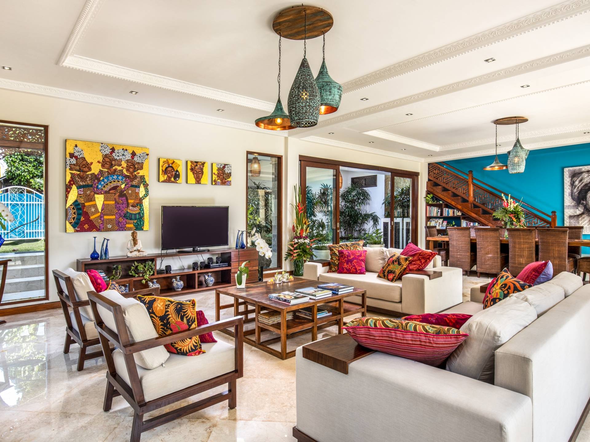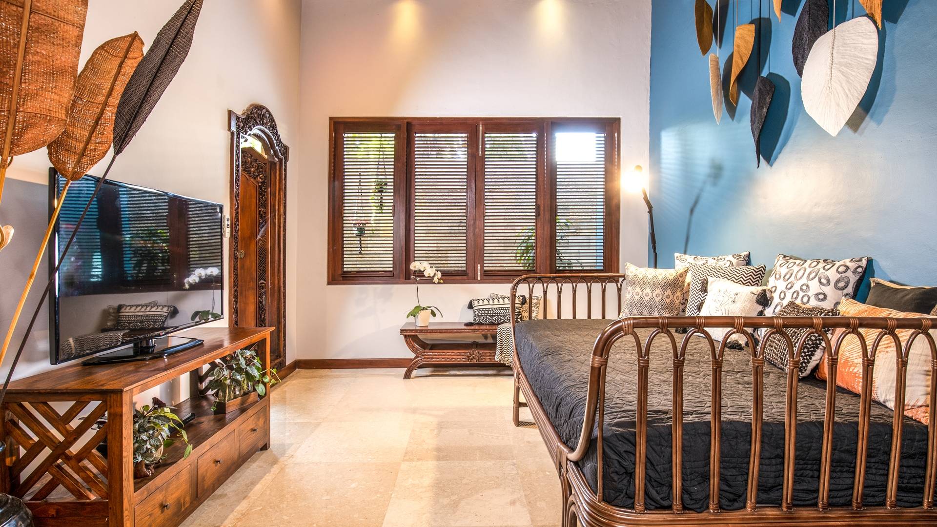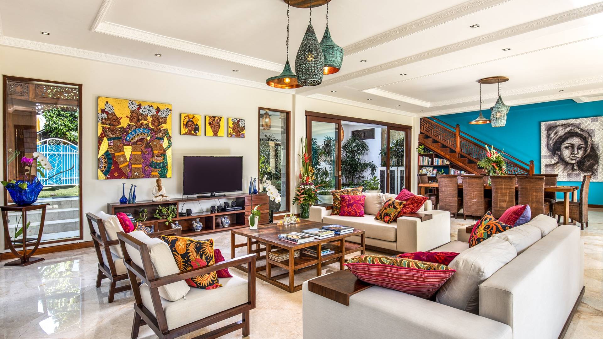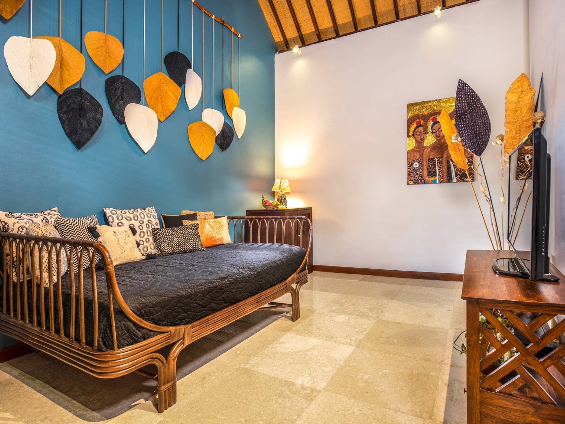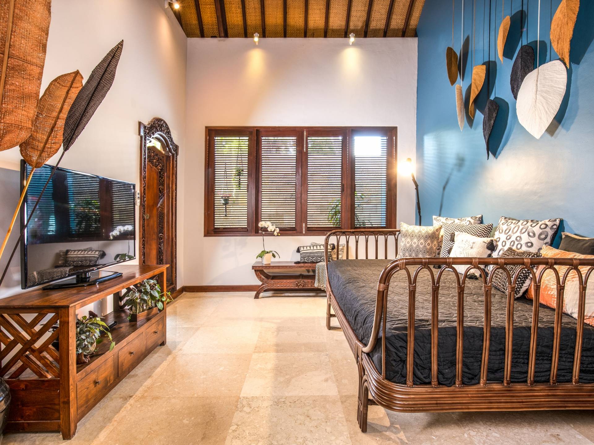 La Villa Kano Sari se compose de six suites réparties autour d'une belle piscine, dans de magnifiques jardins tropicaux surplombant les gorges de la rivière Jero Gadung. Conçu à l'origine comme une maison familiale de luxe, il y a une abondance d'espaces privés et communs bien pensés. Toutes les suites sont conçues et décorées individuellement. Ces chambres très spacieuses sont lumineuses et aérées, chacune avec sa propre terrasse extérieure privée. Tous les espaces de couchage sont climatisés et disposent de meubles fabriqués à la main sur mesure, de draps et de tissus d'ameublement balinais raffinés, de lampes de lecture et de moustiquaires drapées.