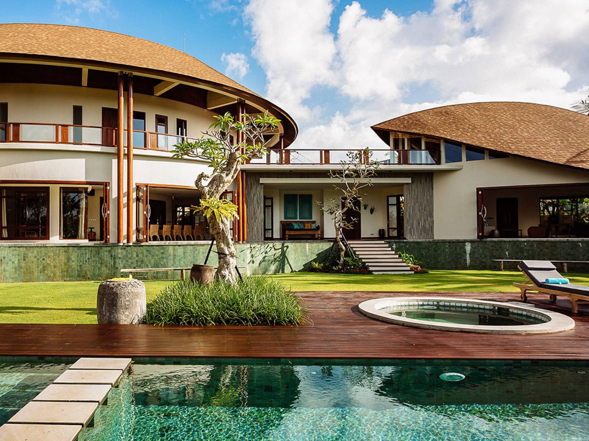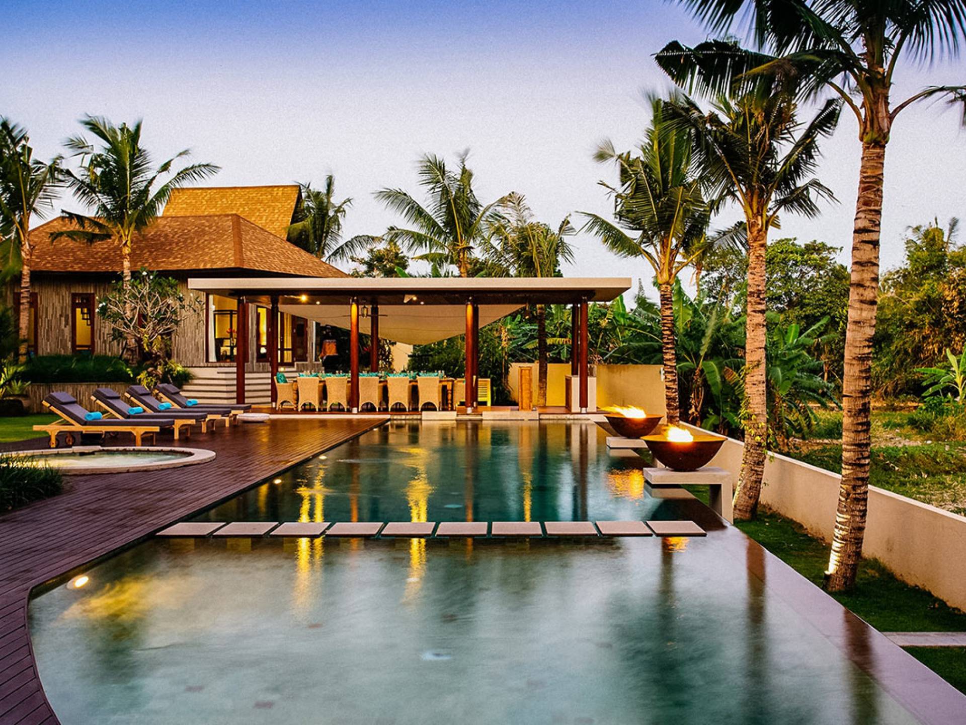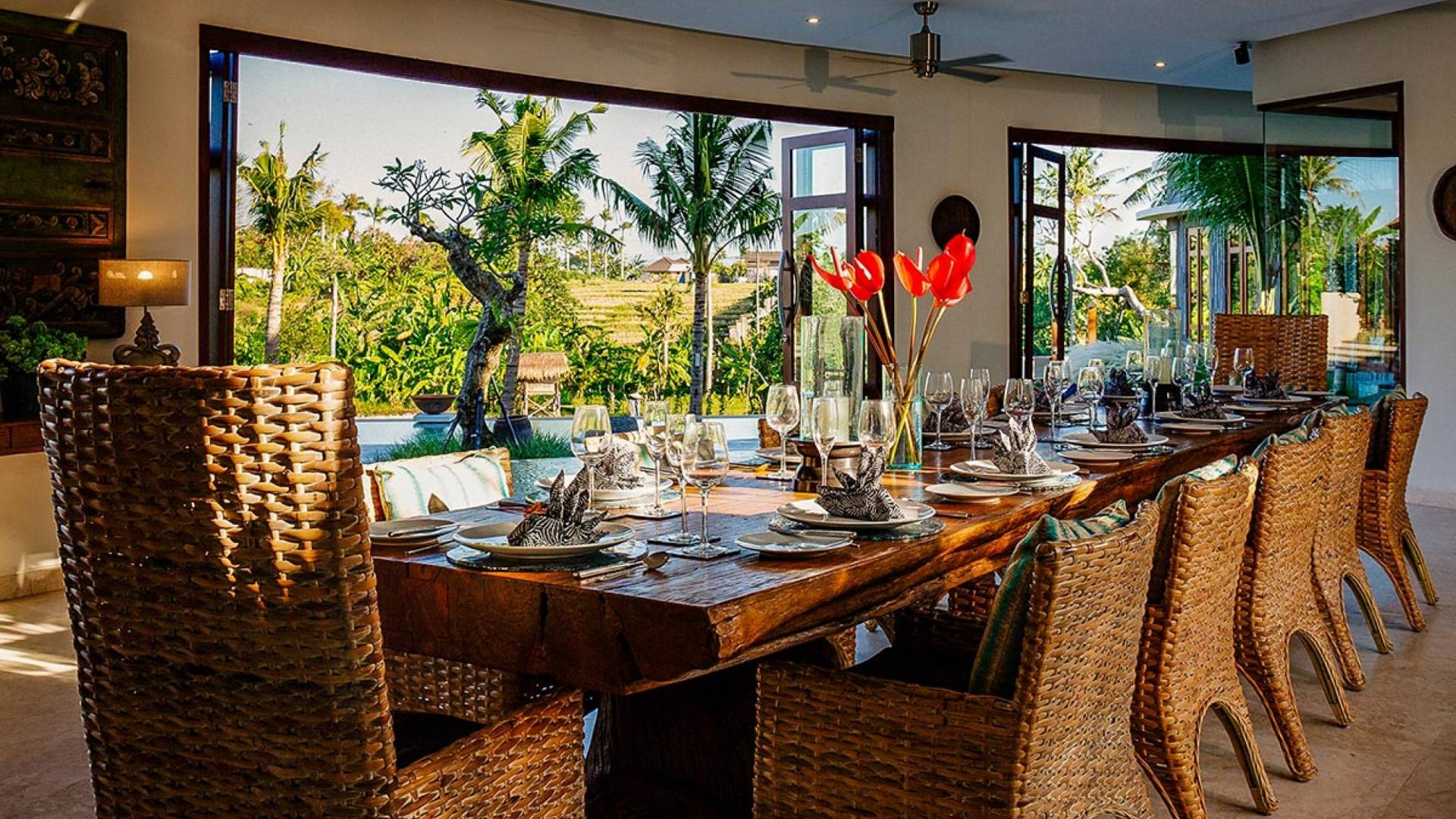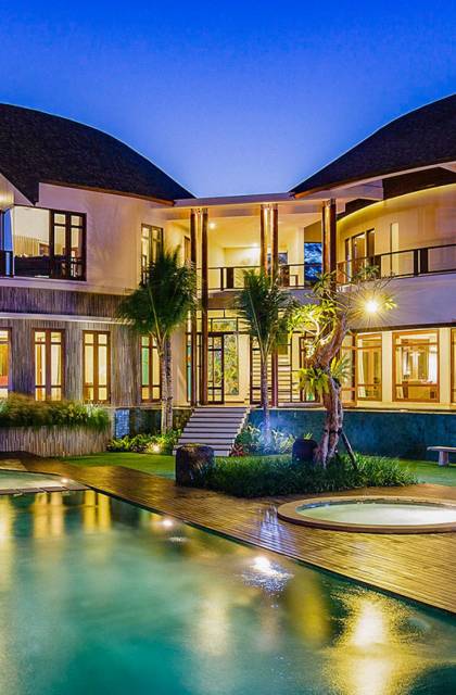 La Villa Umah Daun Umalas est une superbe villa haut de gamme dotée d'un personnel professionnel à quelques kilomètres des plages de Canggu sur la côte sud-ouest de Bali. Au sein de quatre bâtiments interconnectés coiffés de toits en forme de feuille se trouvent d'impressionnants salons et salles à manger formels, des suites de cinq chambres, une salle multimédia, une salle de billard, une bibliothèque, une salle de jeux pour enfants et une cuisine gastronomique avec une salle à vin climatisée. Dans le jardin bien entretenu, face aux rizières en terrasses émeraude, se trouve une salle à manger et un bar à côté de la piscine de 22 mètres avec un jacuzzi séparé, et à l'abri des regards se trouve une cabane dans les arbres pour enfants à deux niveaux. Ce joyau architectural est conçu pour des vacances en famille mémorables, des célébrations et des mariages romantiques.