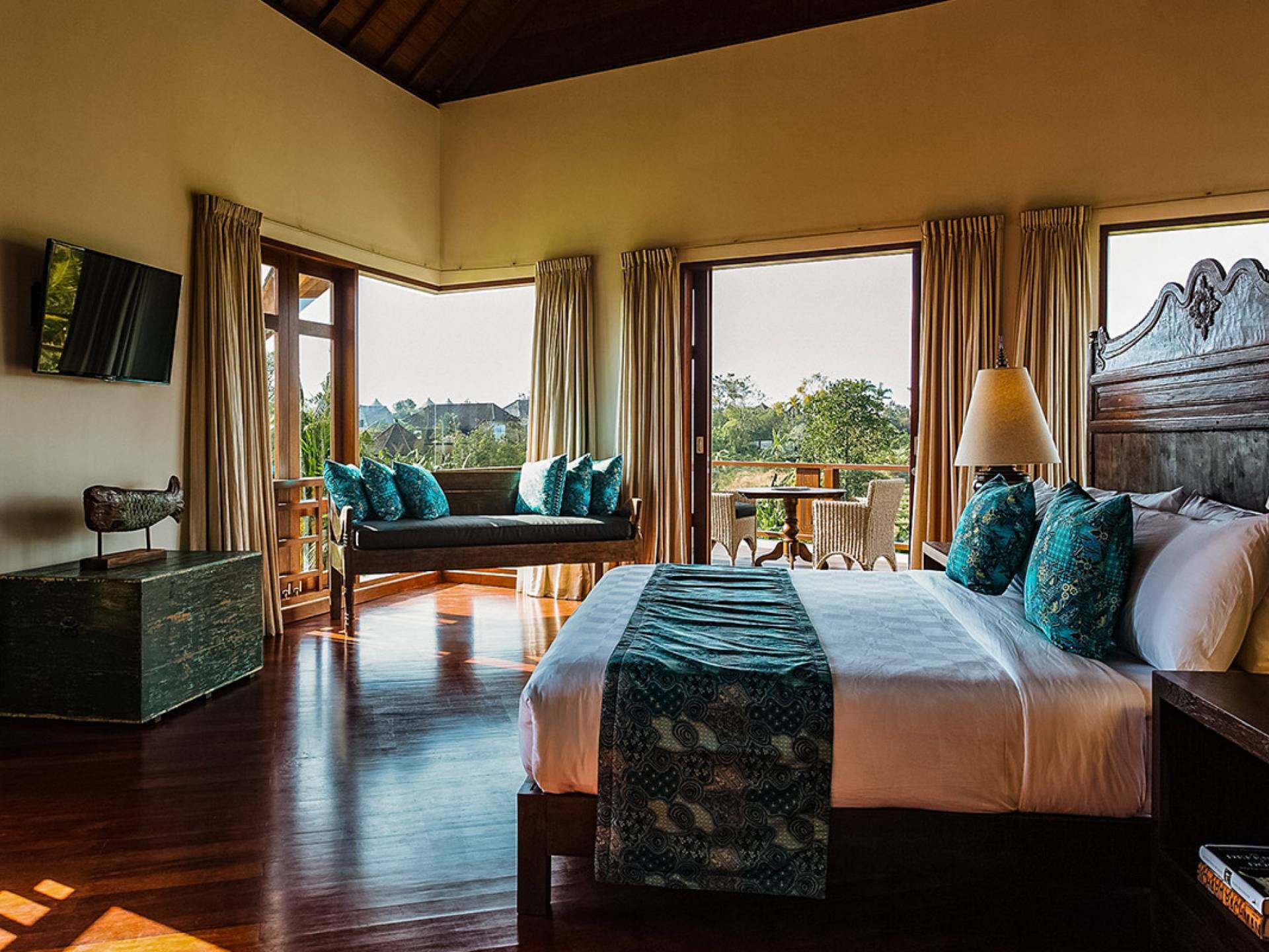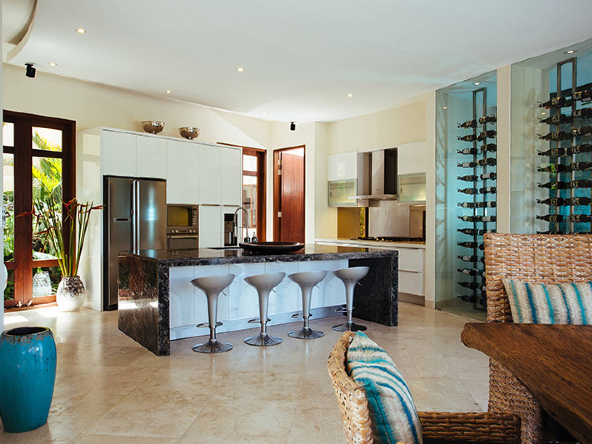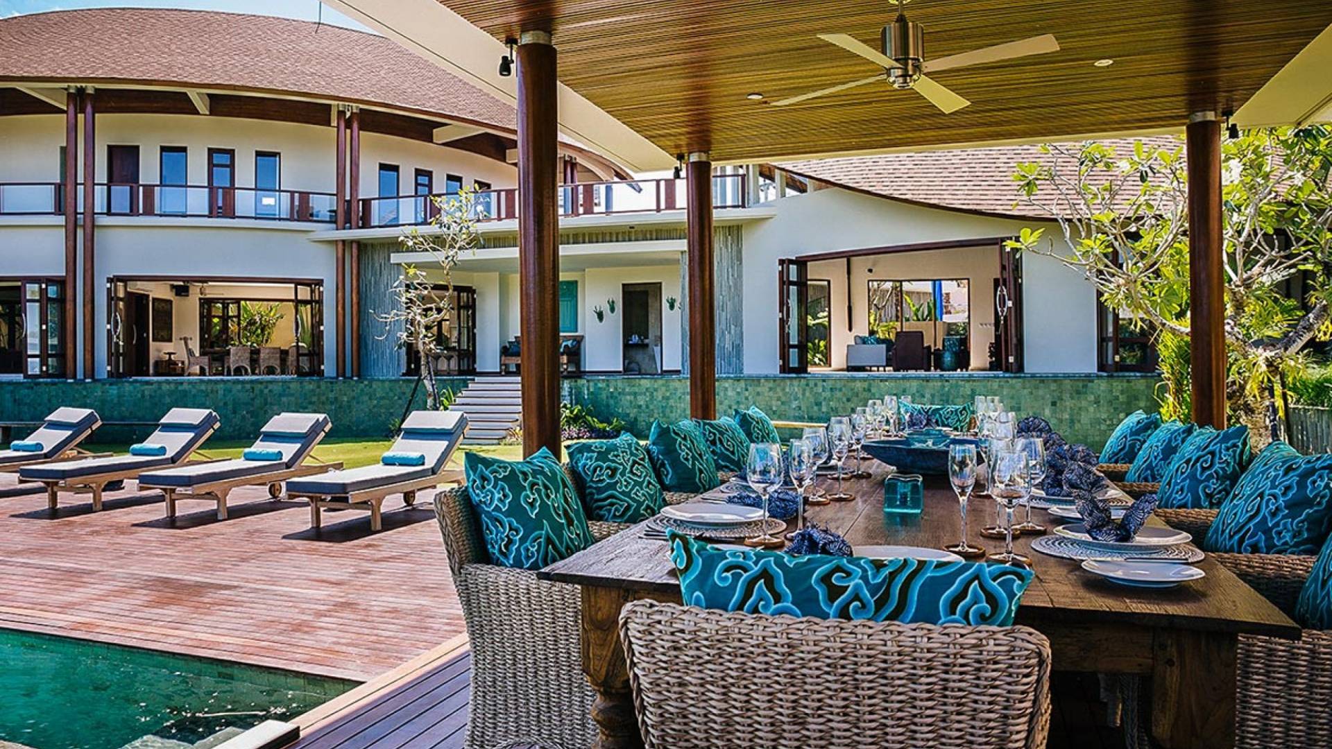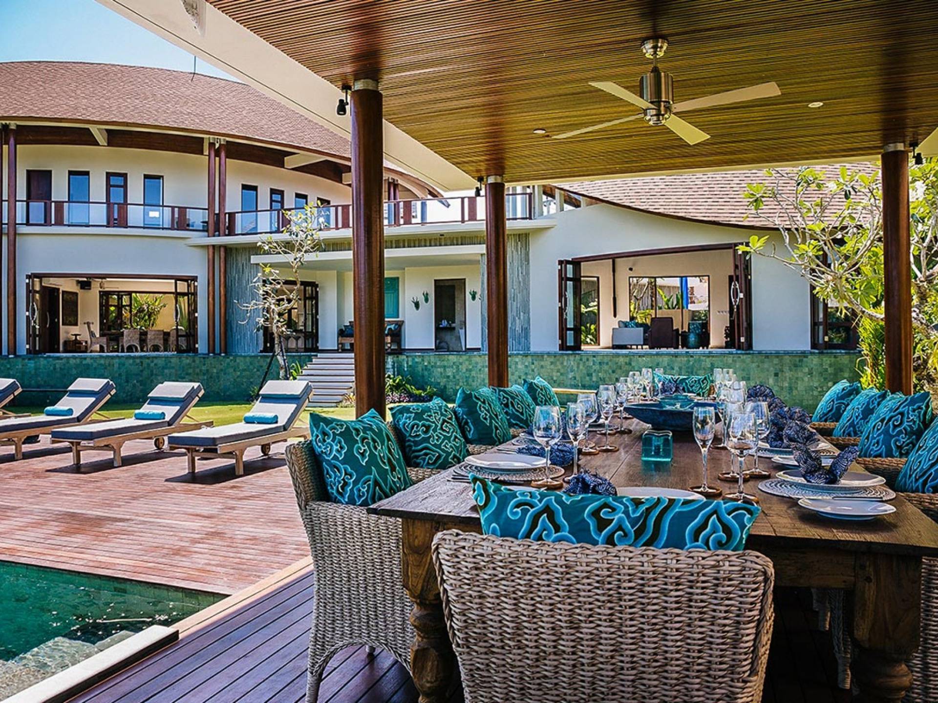 La Villa Umah Daun Umalas est une superbe villa haut de gamme dotée d'un personnel professionnel à quelques kilomètres des plages de Canggu sur la côte sud-ouest de Bali. Au sein de quatre bâtiments interconnectés coiffés de toits en forme de feuille se trouvent d'impressionnants salons et salles à manger formels, des suites de cinq chambres, une salle multimédia, une salle de billard, une bibliothèque, une salle de jeux pour enfants et une cuisine gastronomique avec une salle à vin climatisée. Dans le jardin bien entretenu, face aux rizières en terrasses émeraude, se trouve une salle à manger et un bar à côté de la piscine de 22 mètres avec un jacuzzi séparé, et à l'abri des regards se trouve une cabane dans les arbres pour enfants à deux niveaux. Ce joyau architectural est conçu pour des vacances en famille mémorables, des célébrations et des mariages romantiques.