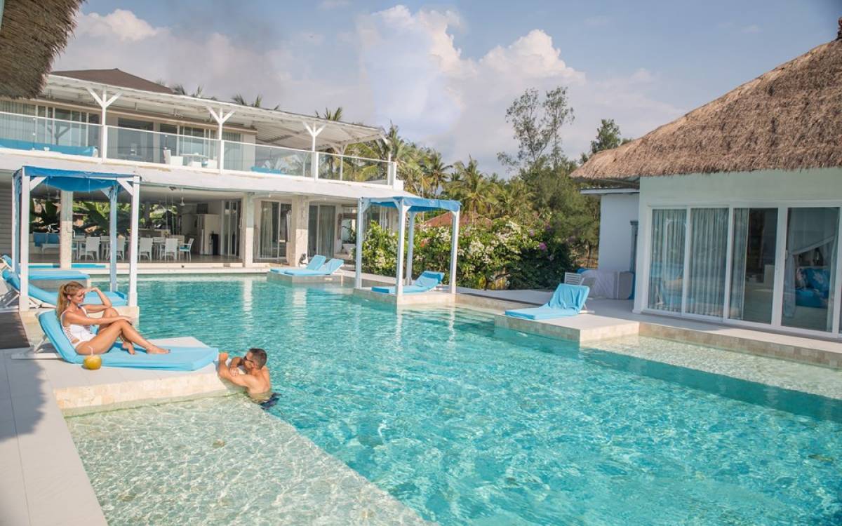 La Villa Gili Bali Beach est la villa avec piscine en bord de mer la plus exceptionnelle de Gili. Il se compose d'une villa privée de 2 chambres, qui comprend deux chambres (lit king-size), deux salles de bains, une piscine privée, une cuisine et un salon. La villa de plage de luxe de 500 m2 a été récemment finie et se compose de 2 bungalows de plage, 2 suites villa, 1 suite principale de luxe, une villa privée de 2 chambres et une piscine à débordement de 200 m2.