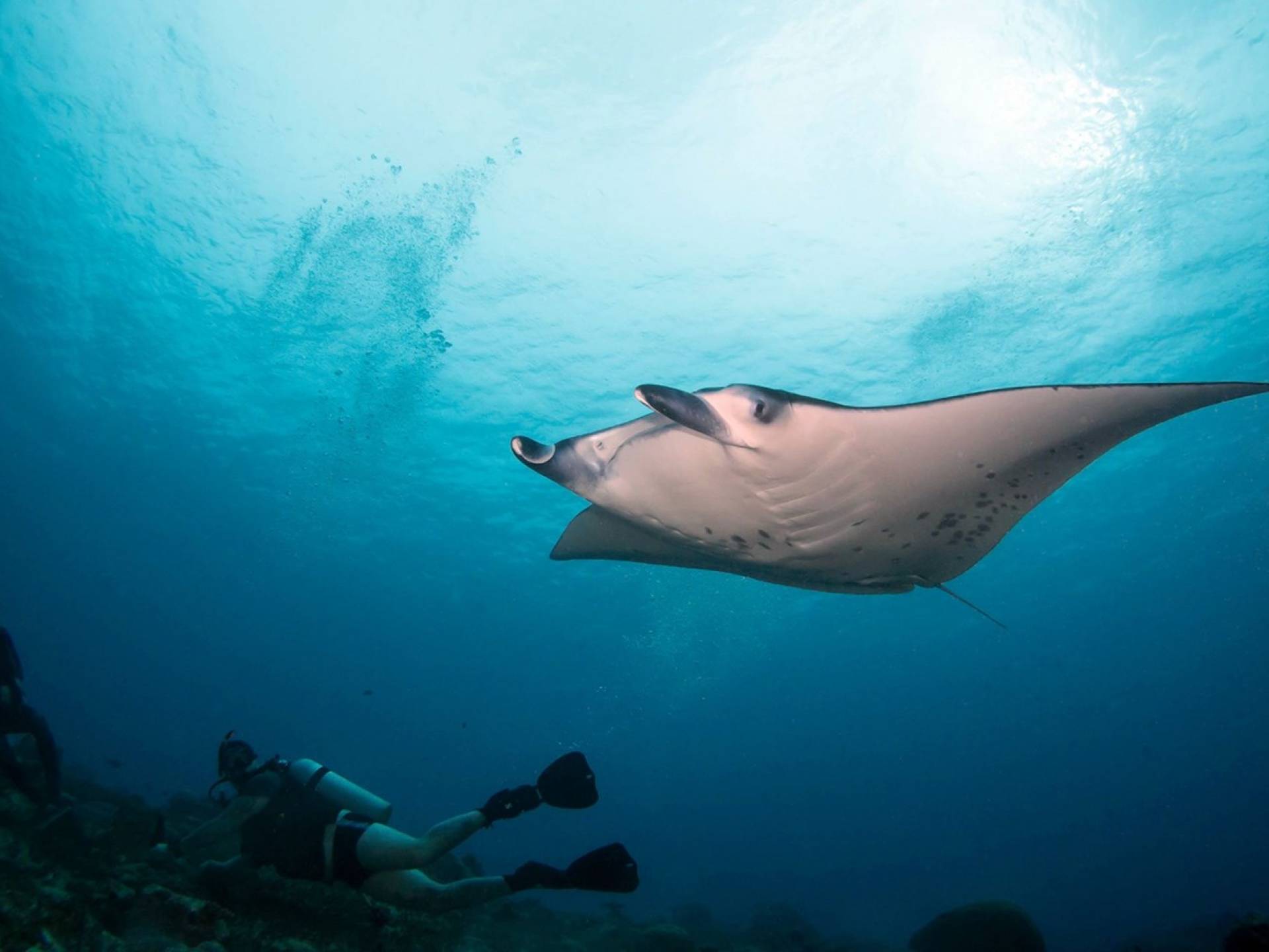 L'île de Seraya Kecil bénéficie de l'une des vies sous-marines les mieux préservées de la mer de Flores. Avec les efforts de conservation des coraux qui se déroulent à proximité, les récifs de la maison sont en bonne santé avec l'abondance de la vie sous-marine trouvée à seulement quelques pas du rivage de la station. Un éventail technicolor de cornes de cerf, de cornes d'élan et de coraux cérébraux vifs abrite la vie marine agitée : poisson-ange royal de la taille d'une assiette, raies aigles, oursins et étranges cousins à nageoires octogonales de la rascasse volante qui ressemble à des araignées subaquatiques. Vous pouvez également vous attendre à voir des bébés requins au large de la pointe nord et des tortues directement au centre du récif.