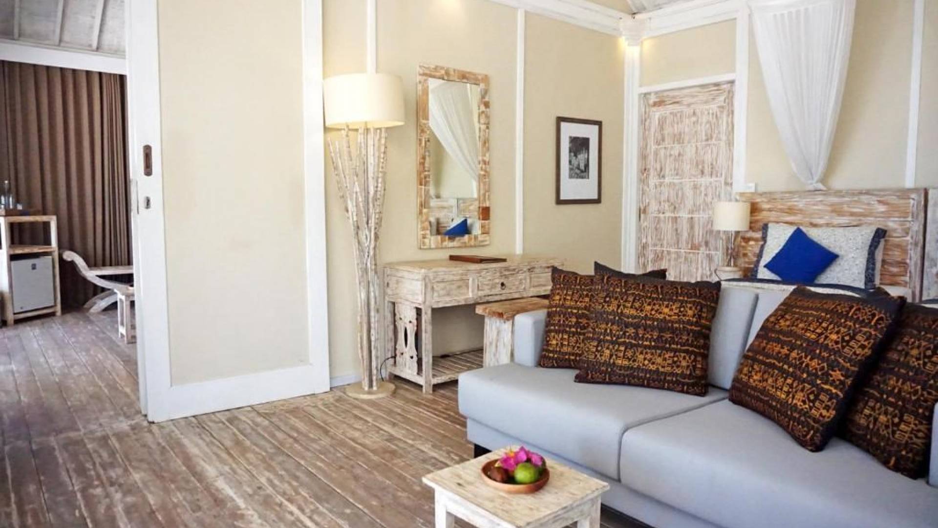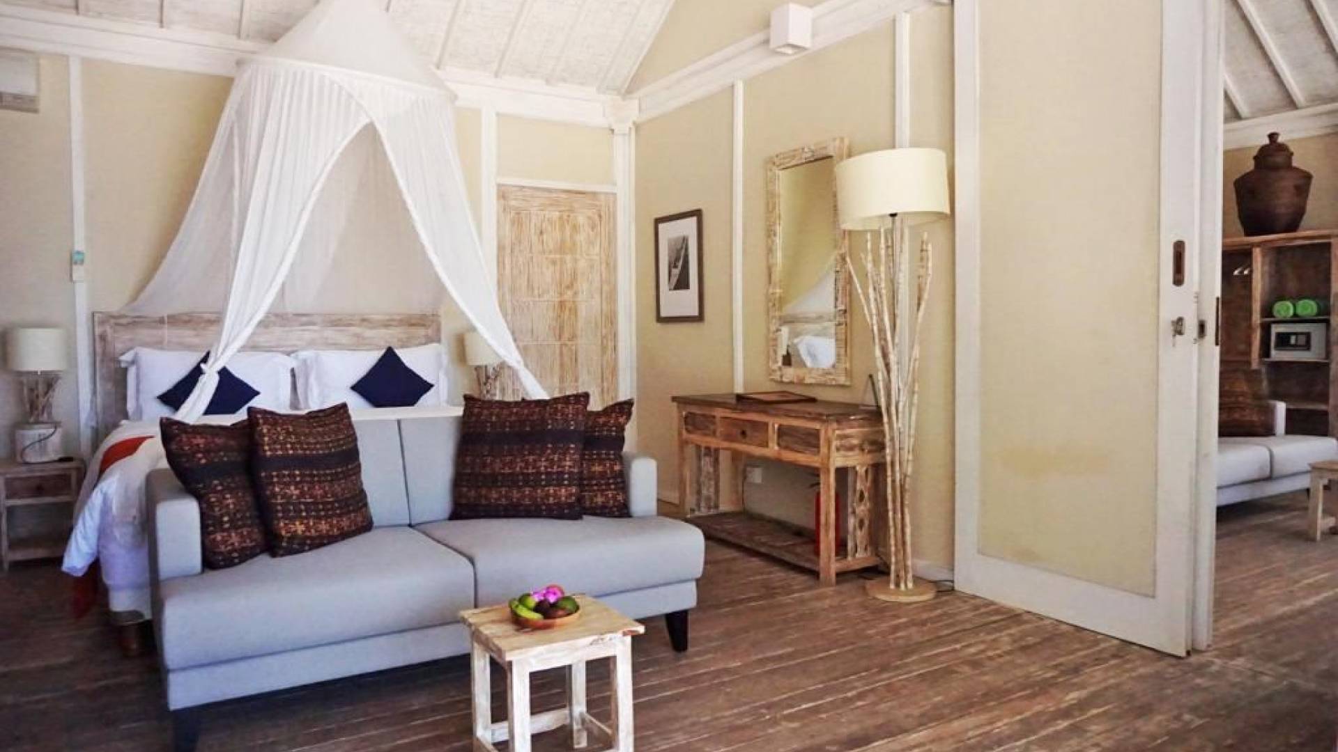 Le Family Beach Bungalow du Seraya Resort (chambres communicantes) capture vraiment la quintessence de l'expérience d'une île isolée. Construit sur une légère hauteur comme un clin d'œil à l'architecture locale, le bungalow en bois rustique est situé directement sur la plage face au magnifique blues de Flores et contient tout le confort de luxe pieds nus dont tous les aventuriers de Komodo ont besoin. Tous les bungalows de plage familiaux disposent de chambres communicantes, de leur propre balcon, parfaits pour savourer le lever du soleil ou simplement pour se détendre et lire.