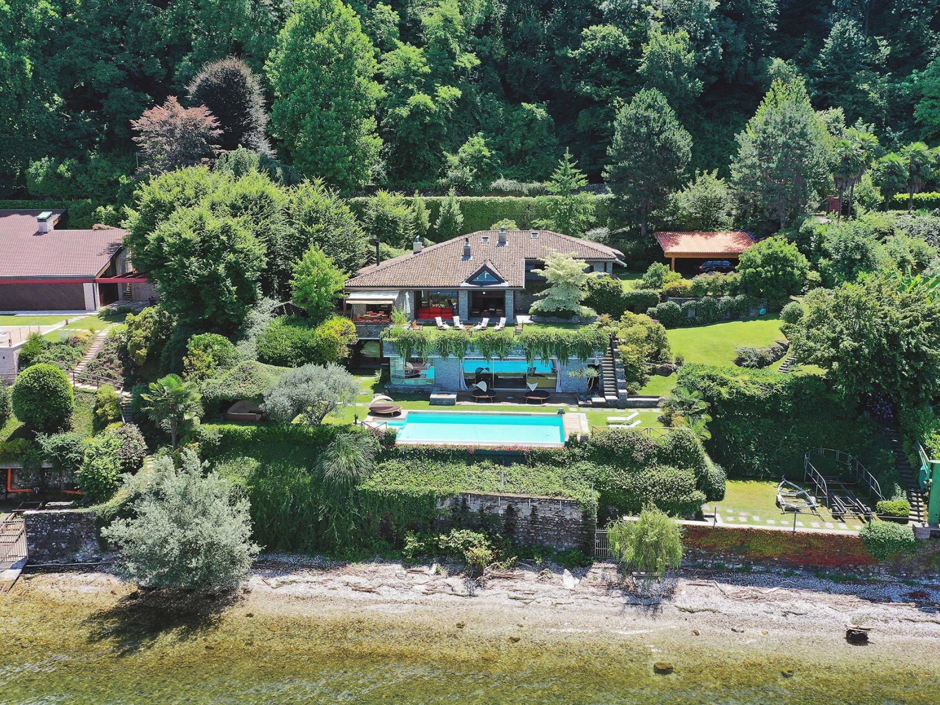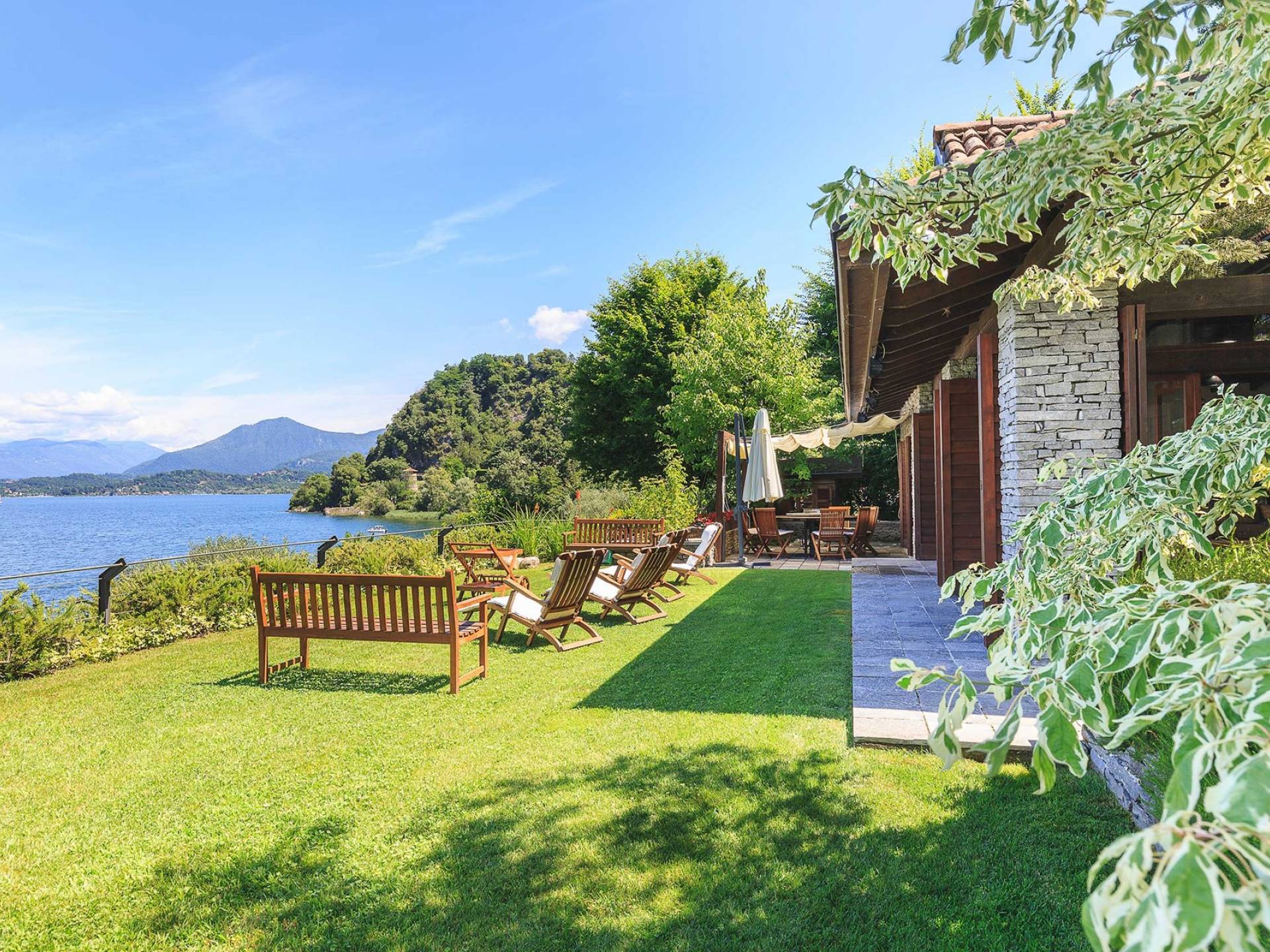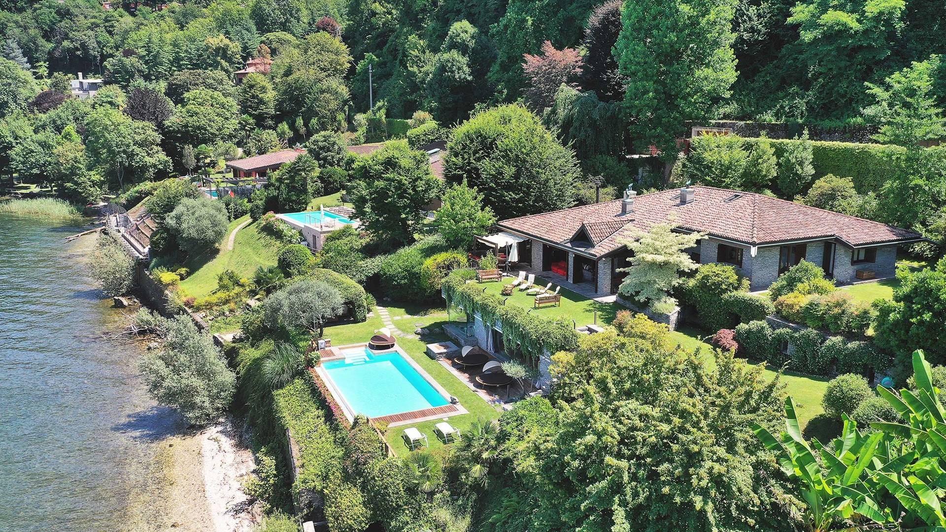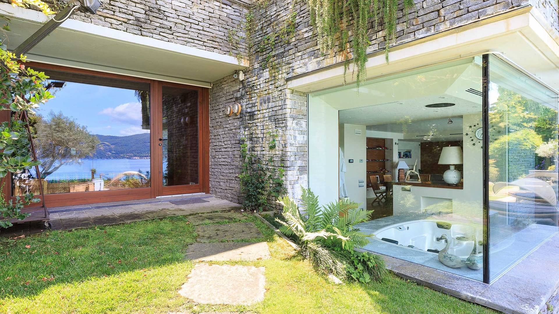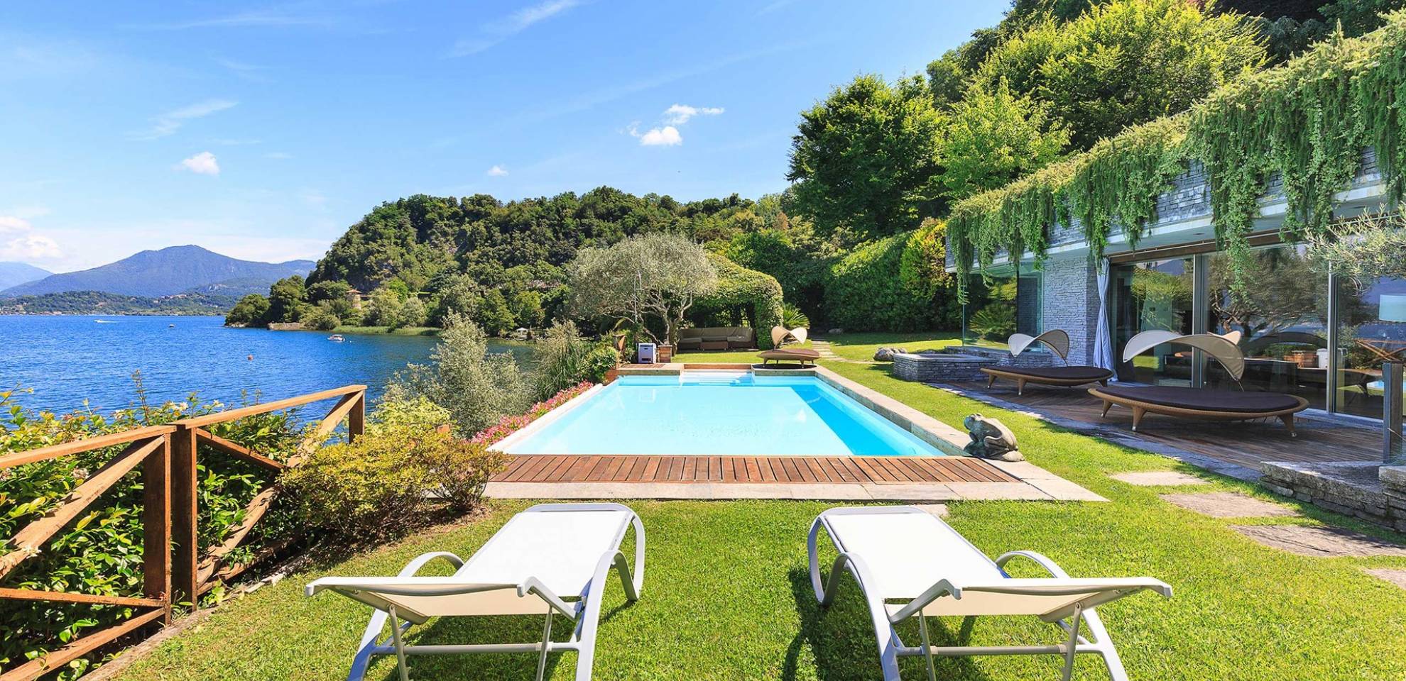 L'extérieur continuera de vous impressionner avec son jardin en terrasse avec plusieurs coins et pelouses pour s'asseoir et se détendre. La zone de la piscine comprend une piscine à débordement (équipée d'un système de nage à contre-courant) entourée de chaises longues et de lits, d'une douche extérieure et d'un joli belvédère fleuri avec des canapés pour rêver tout en regardant les bateaux qui passent. En suivant les escaliers en pierre, vous arriverez à une plage de galets pour une baignade rafraîchissante dans le lac.