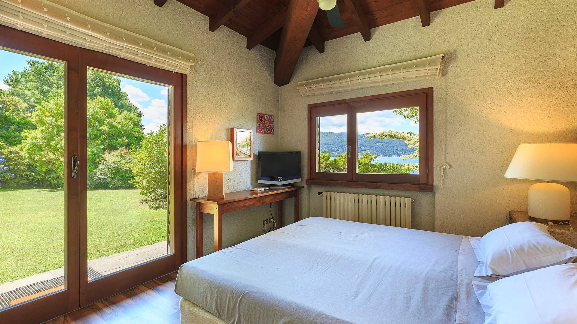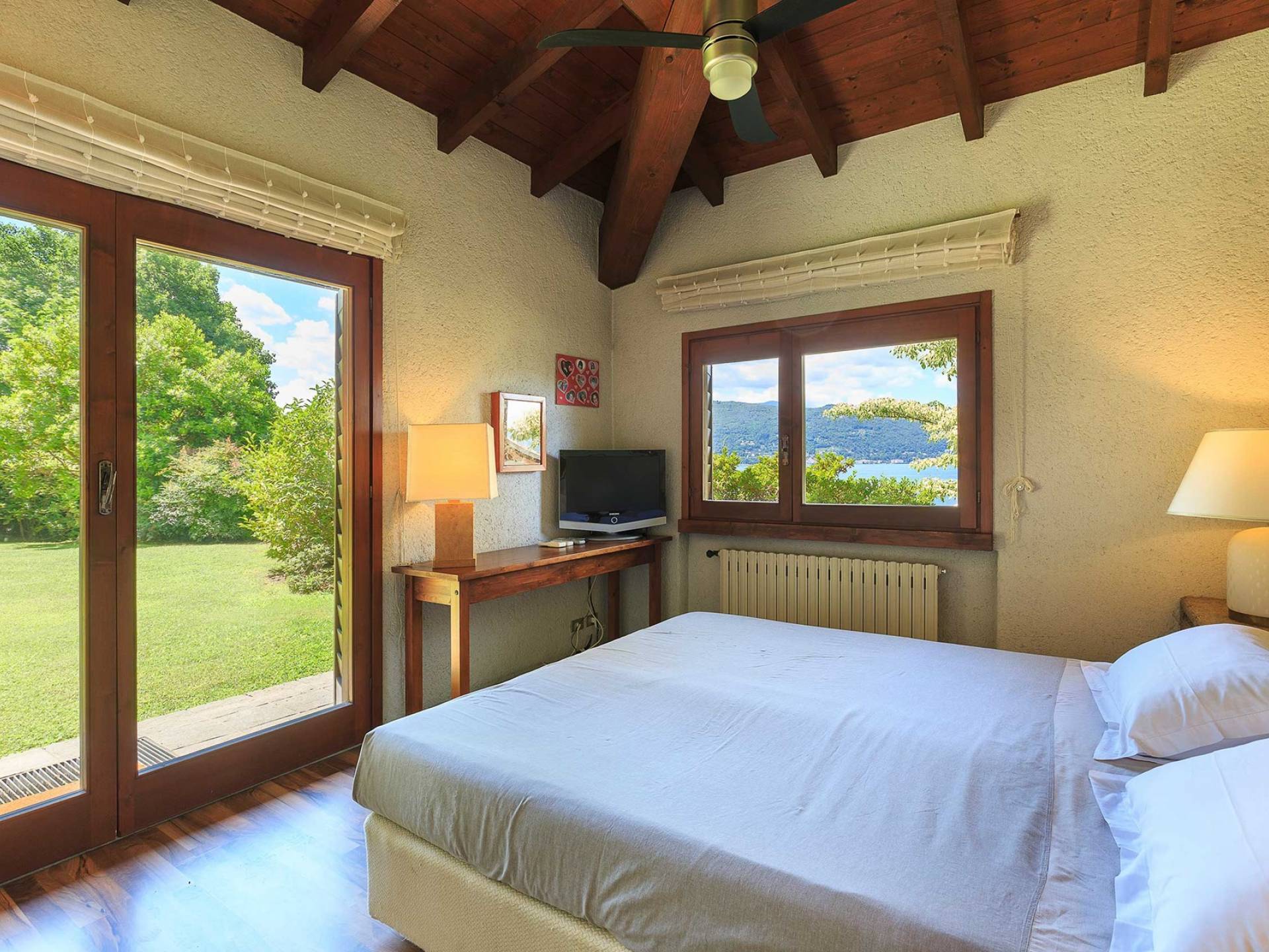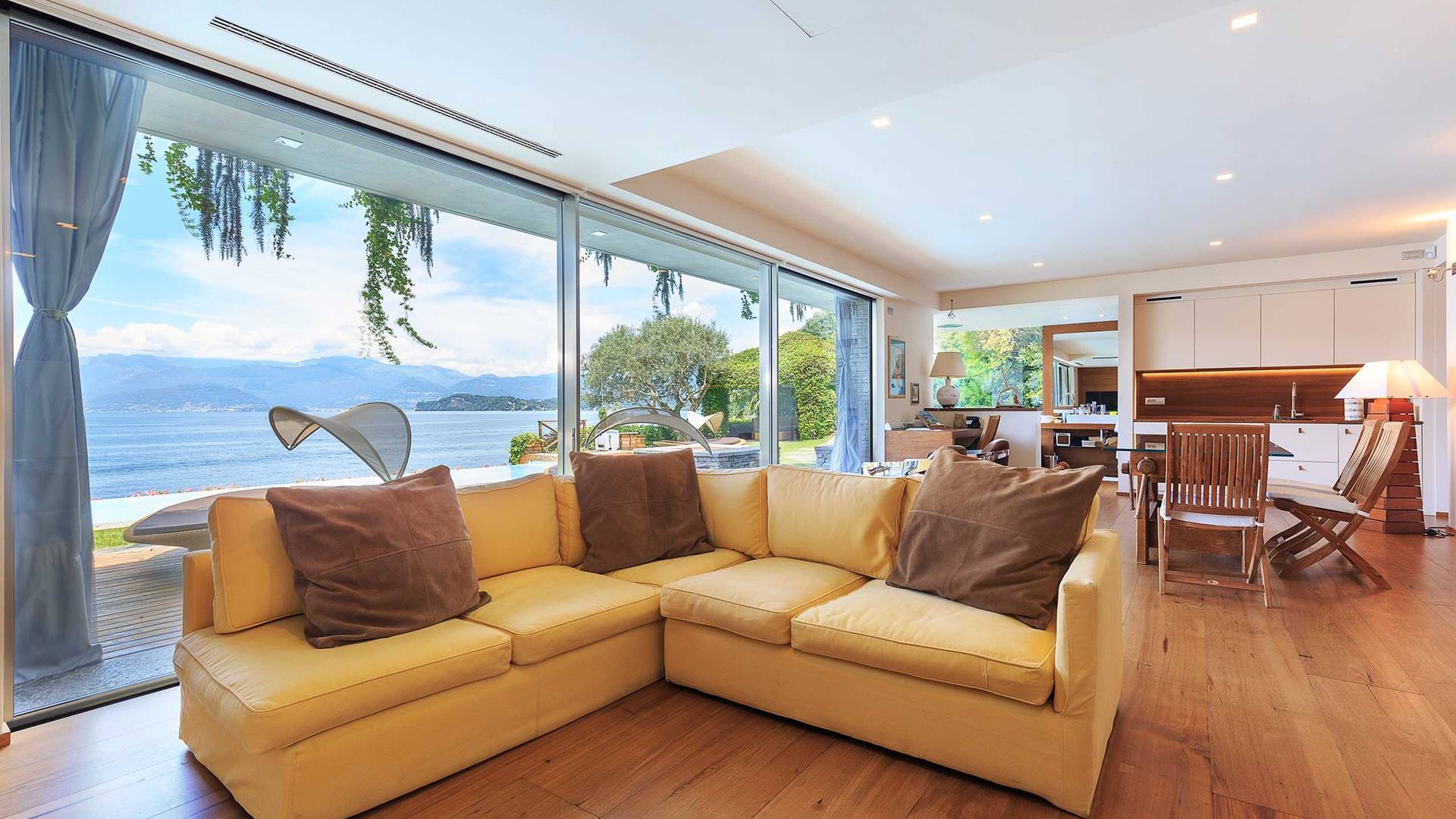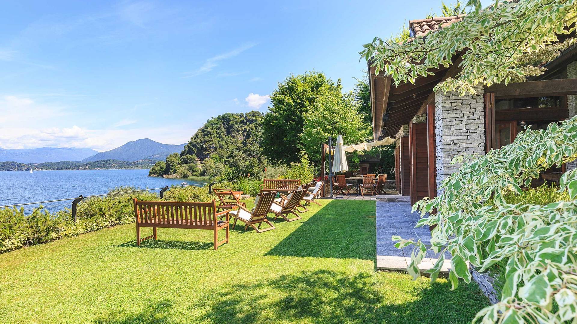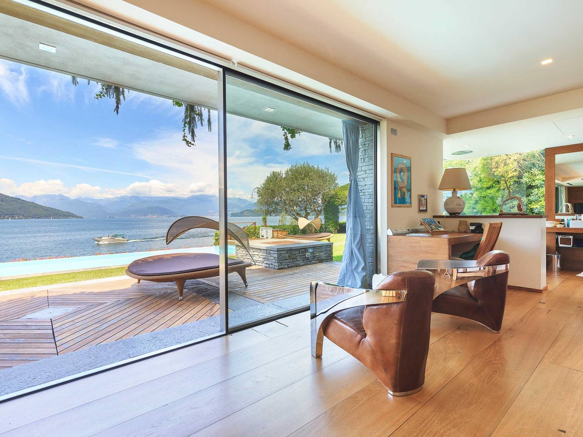 L'extérieur continuera de vous impressionner avec son jardin en terrasse avec plusieurs coins et pelouses pour s'asseoir et se détendre. La zone de la piscine comprend une piscine à débordement (équipée d'un système de nage à contre-courant) entourée de chaises longues et de lits, d'une douche extérieure et d'un joli belvédère fleuri avec des canapés pour rêver tout en regardant les bateaux qui passent. En suivant les escaliers en pierre, vous arriverez à une plage de galets pour une baignade rafraîchissante dans le lac.