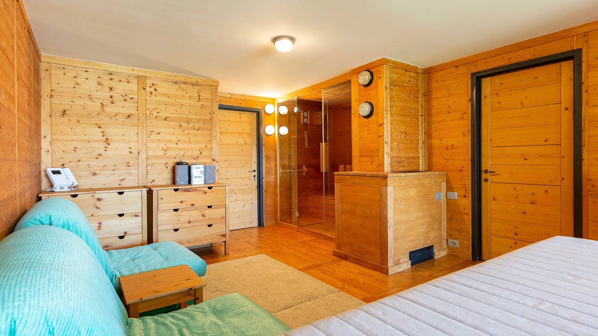 Dans cette zone nouvellement construite, vous trouverez une suite très spacieuse avec une kitchenette, une table et des fauteuils, un bureau, un canapé et une grande télévision, ainsi qu'un lit double rond d'où vous pourrez profiter d'une vue imprenable sur la piscine et le lac . Pourtant, dans cette incroyable suite, vous trouverez une salle de bain avec douche, fonctionnant également comme un bain à vapeur, et pour couronner le tout un jacuzzi avec des baies vitrées donnant sur le lac. Finalement, il y a une pièce, servant de cinquième chambre avec 2 lits simples, avec sauna et salle de bain avec douche.