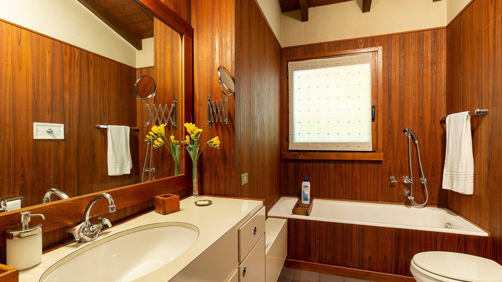 Le niveau supérieur continue dans la zone nuit avec 3 chambres climatisées: une chambre avec lit double et salle de bain avec baignoire, une chambre avec lit double, une chambre avec un lit simple et 2 salles de bains (une avec baignoire et une avec douche). En allant vers le niveau inférieur, vous traverserez un espace pour enfants avec télévision et musique, connecté à une terrasse extérieure couverte avec une cheminée à foyer ouvert, vers l'extension nouvellement ajoutée.