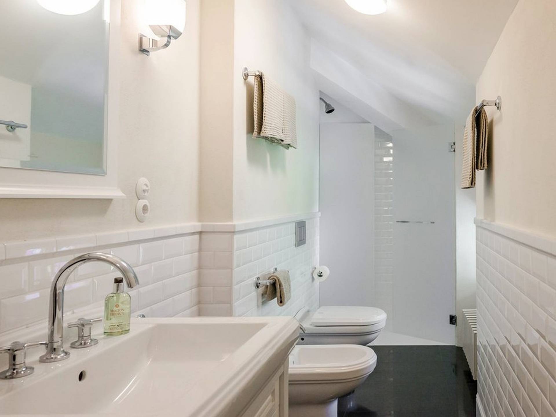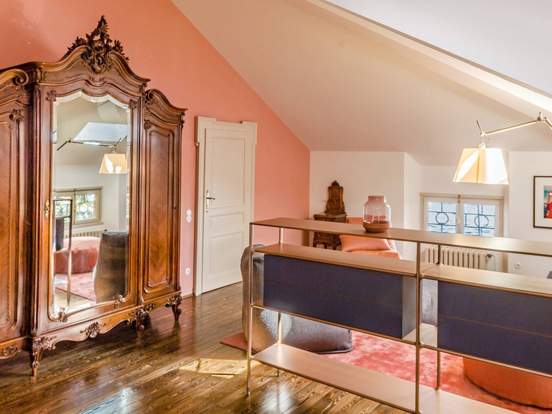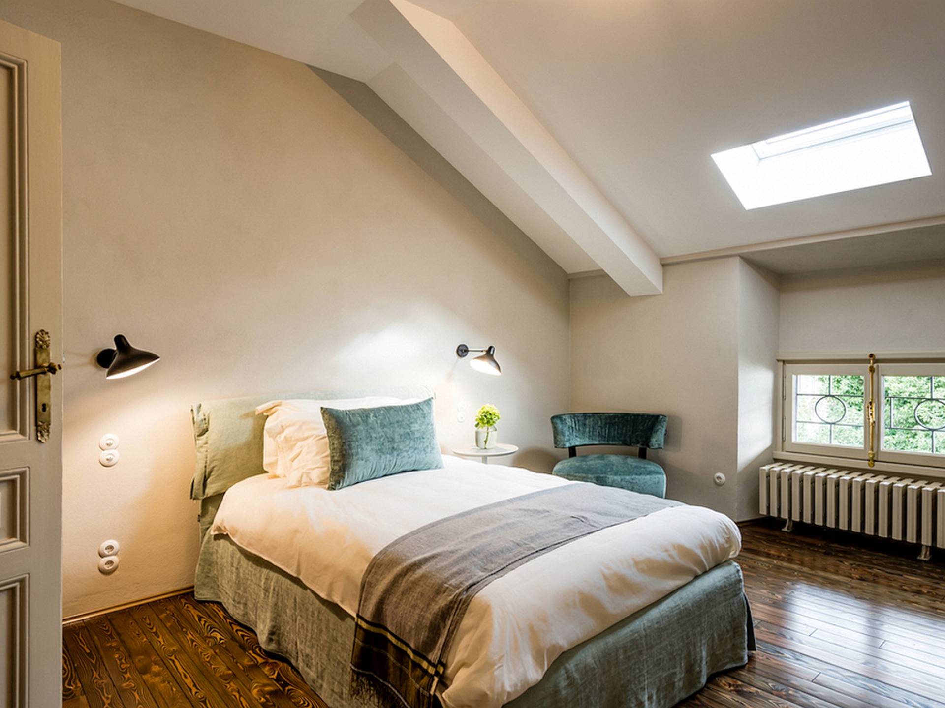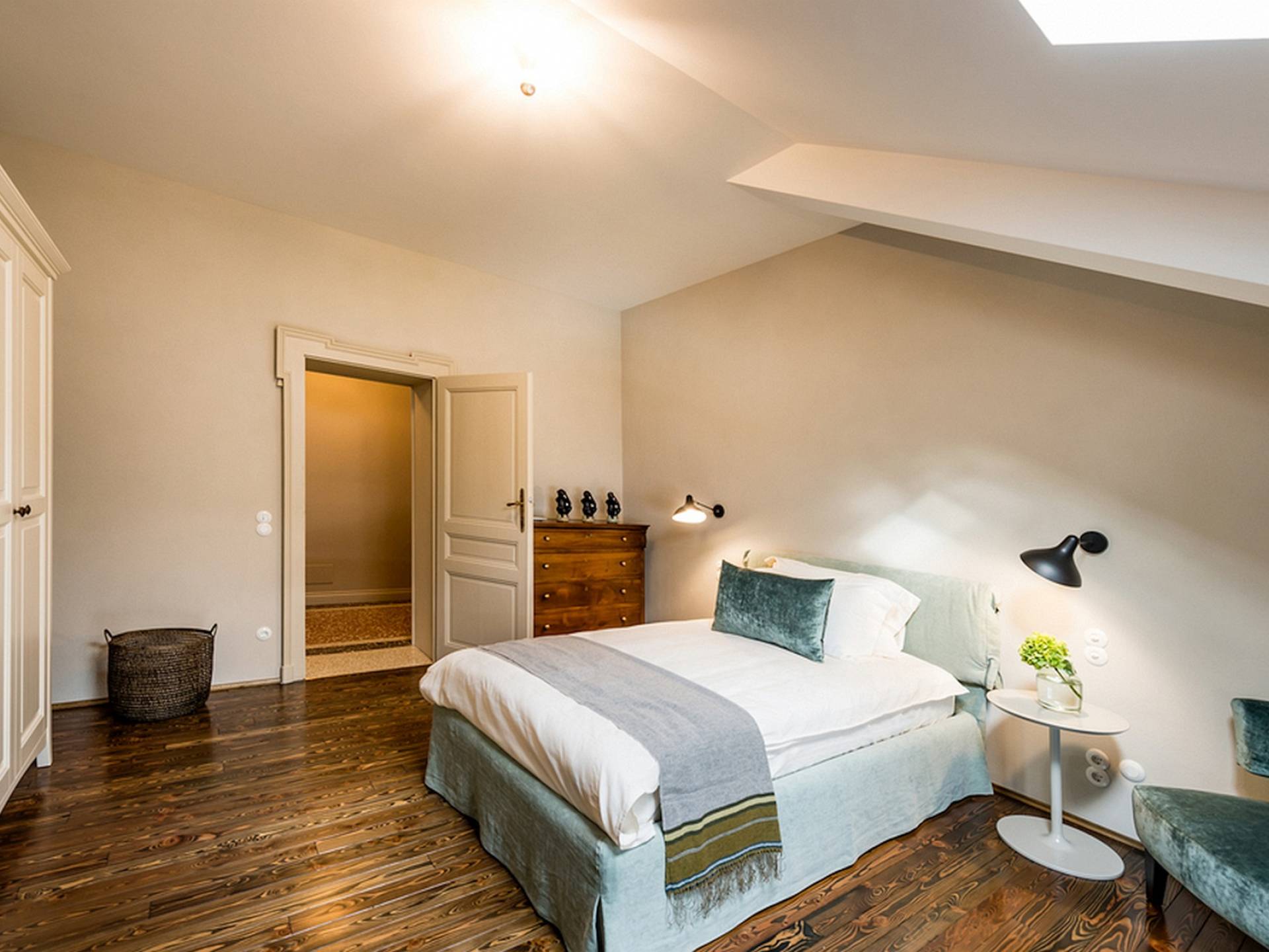 La grande villa de trois étages (450 m²) peut accueillir jusqu'à 10 personnes dans 6 chambres. En entrant au rez-de-chaussée par l'élégant escalier et le couloir, vous trouverez un salon confortable avec cheminée, piano et très grande télévision avec système de son surround, un coin salon unique dans la véranda avec des vitraux colorés, une salle à manger et un , cuisine entièrement équipée. Toilette. Le premier étage est composé de 3 chambres (une grande suite et 2 chambres avec lit double) et 2 salles de bain (une grande salle de bain avec douche à l'italienne et une plus petite salle de bain avec douche). Une grande terrasse avec transats et parasols offre un espace pour des après-midi de détente à l'ombre. Le deuxième étage est également composé de 3 chambres (une grande suite, une chambre avec lit double, une chambre avec grand lit simple), et 2 salles de bain (une grande salle de bain avec baignoire îlot antique et douche à l'italienne et une salle de bain plus petite avec douche). Au sous-sol, vous trouverez un réfrigérateur à vin, rempli d'une sélection de vins rouges et blancs (disponibles à l'achat), et une buanderie avec lave-linge et sèche-linge.