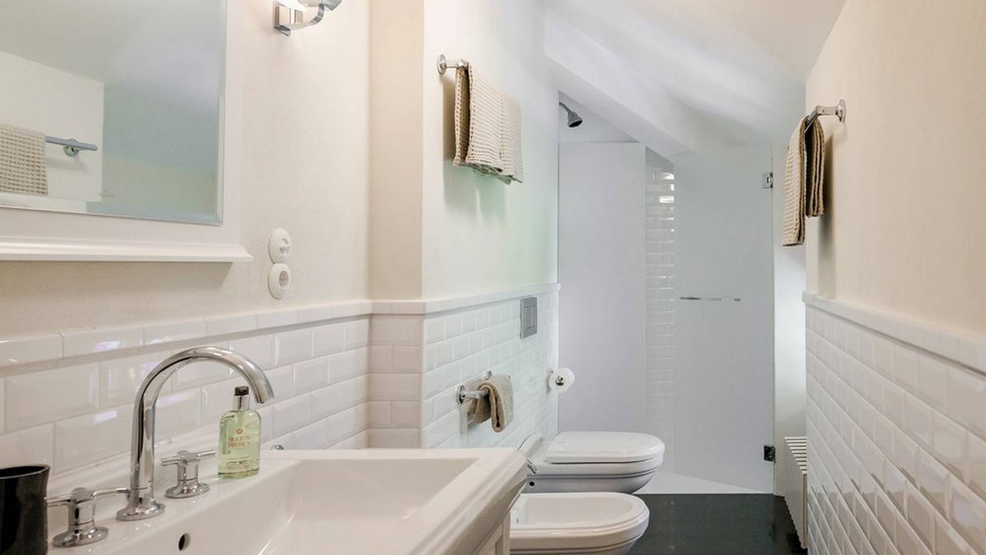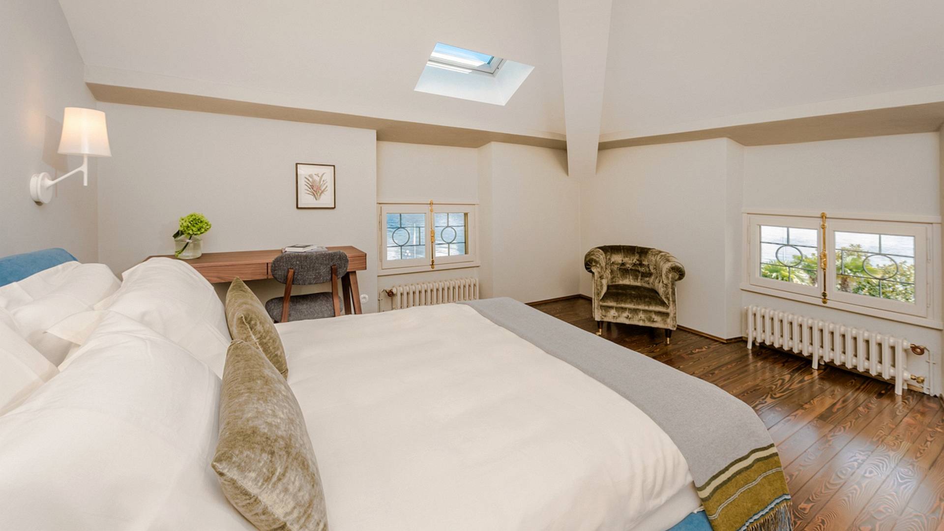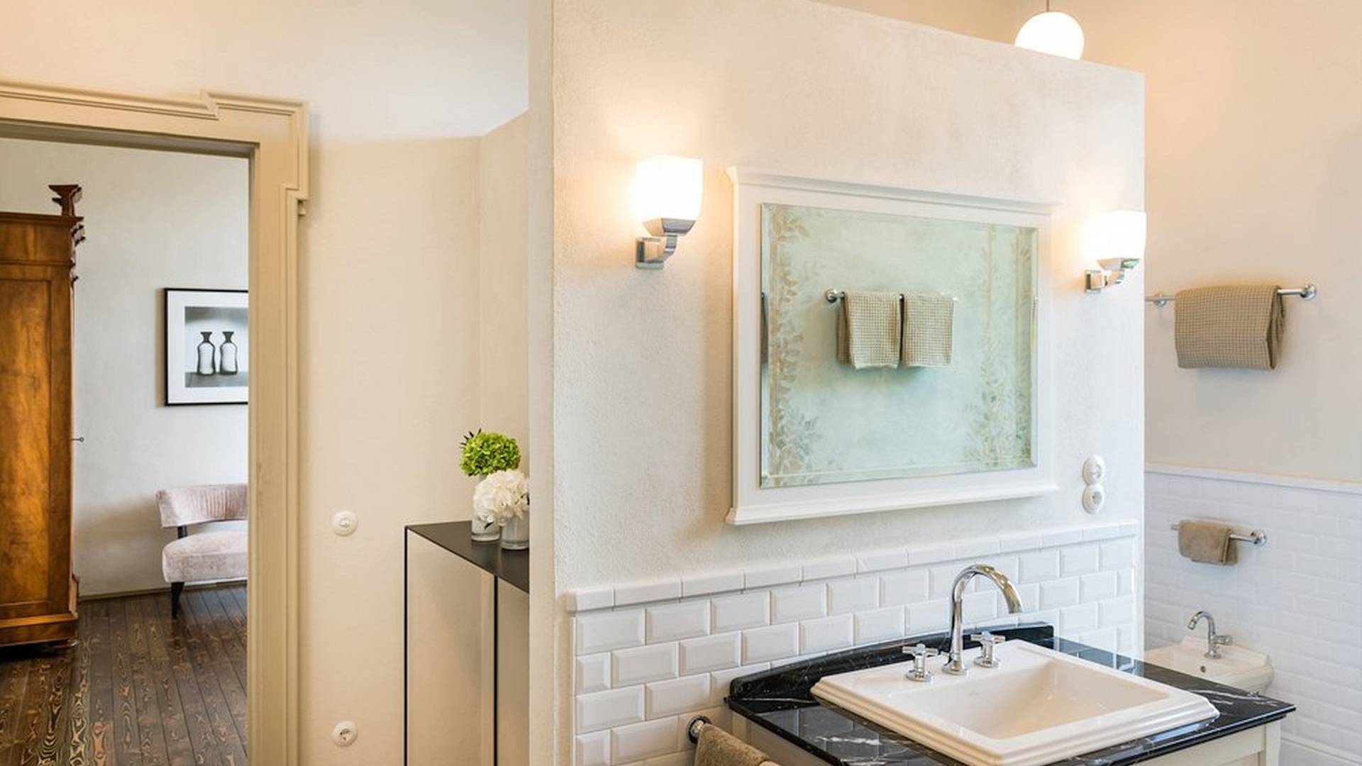 La grande villa de trois étages (450 m²) peut accueillir jusqu'à 10 personnes dans 6 chambres. En entrant au rez-de-chaussée par l'élégant escalier et le couloir, vous trouverez un salon confortable avec cheminée, piano et très grande télévision avec système de son surround, un coin salon unique dans la véranda avec des vitraux colorés, une salle à manger et un , cuisine entièrement équipée. Toilette. Le premier étage est composé de 3 chambres (une grande suite et 2 chambres avec lit double) et 2 salles de bain (une grande salle de bain avec douche à l'italienne et une plus petite salle de bain avec douche). Une grande terrasse avec transats et parasols offre un espace pour des après-midi de détente à l'ombre. Le deuxième étage est également composé de 3 chambres (une grande suite, une chambre avec lit double, une chambre avec grand lit simple), et 2 salles de bain (une grande salle de bain avec baignoire îlot antique et douche à l'italienne et une salle de bain plus petite avec douche). Au sous-sol, vous trouverez un réfrigérateur à vin, rempli d'une sélection de vins rouges et blancs (disponibles à l'achat), et une buanderie avec lave-linge et sèche-linge.
