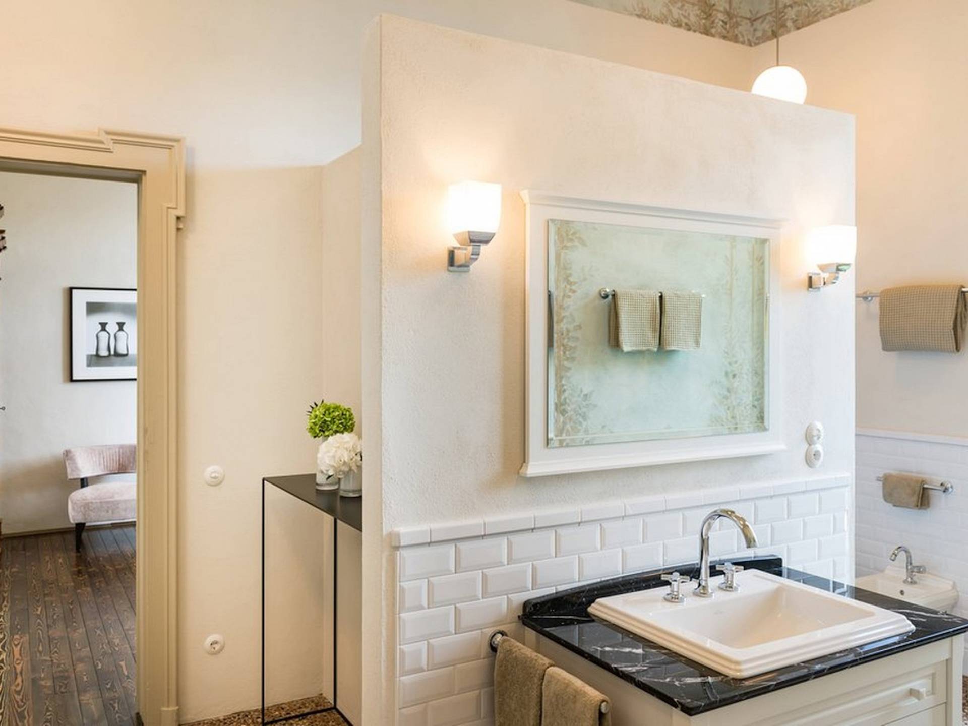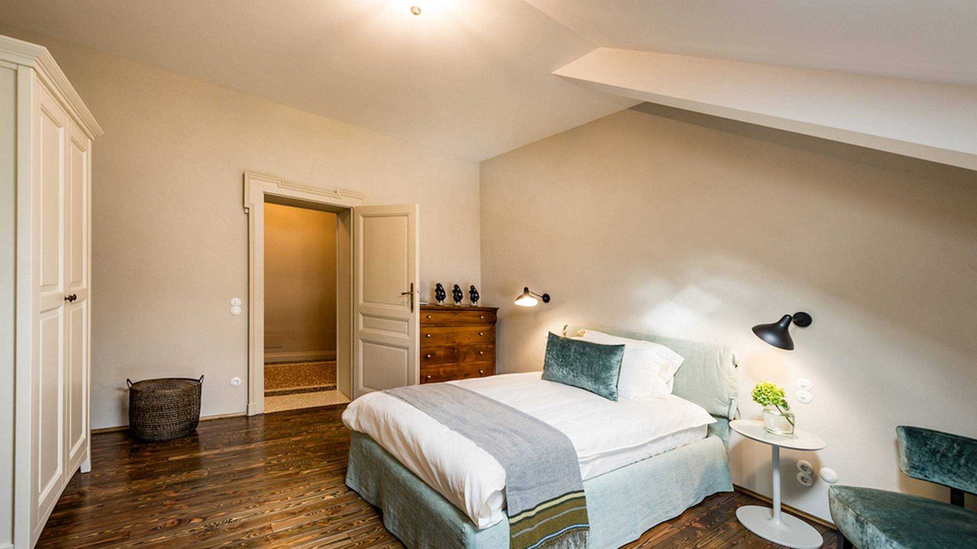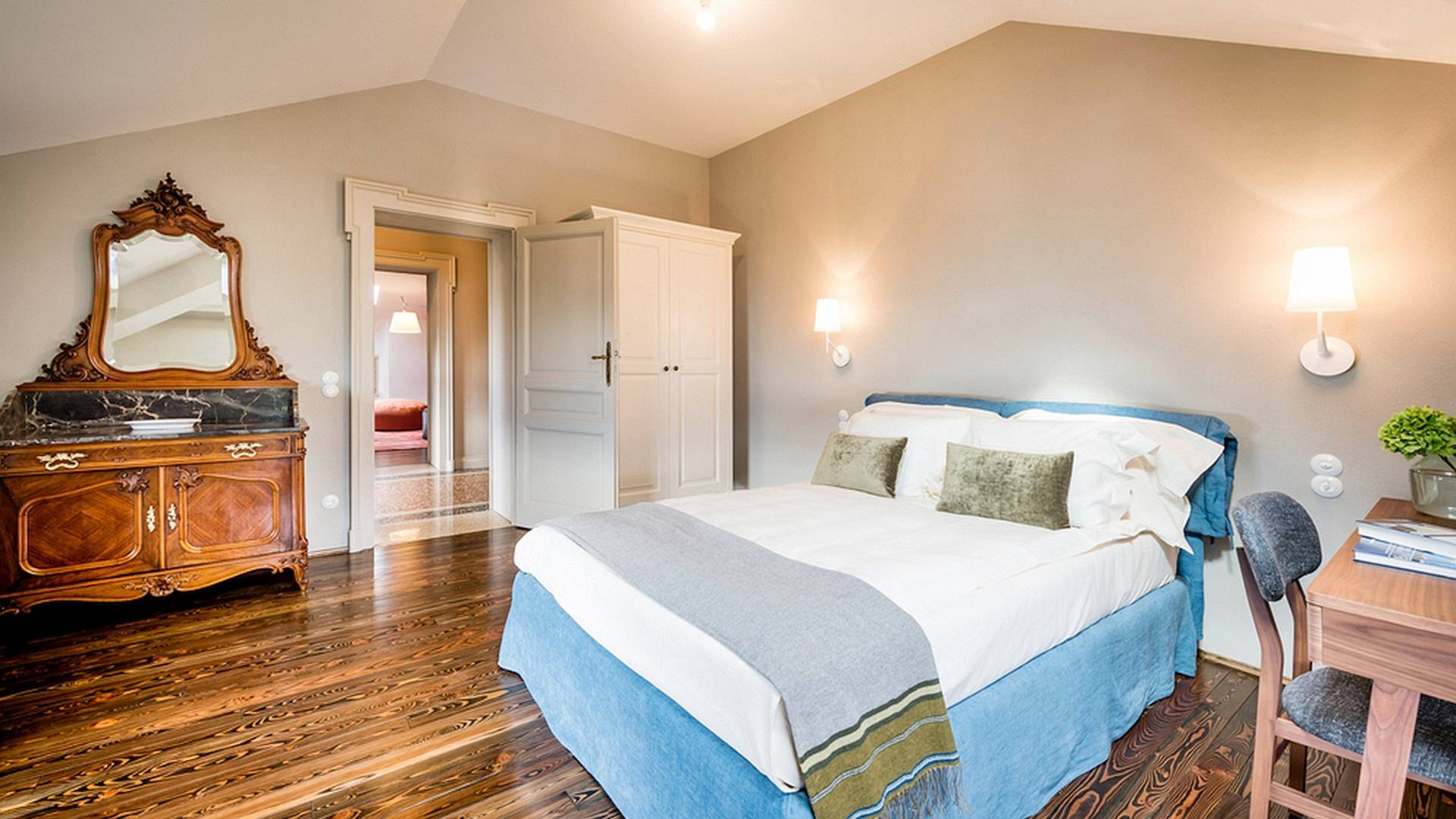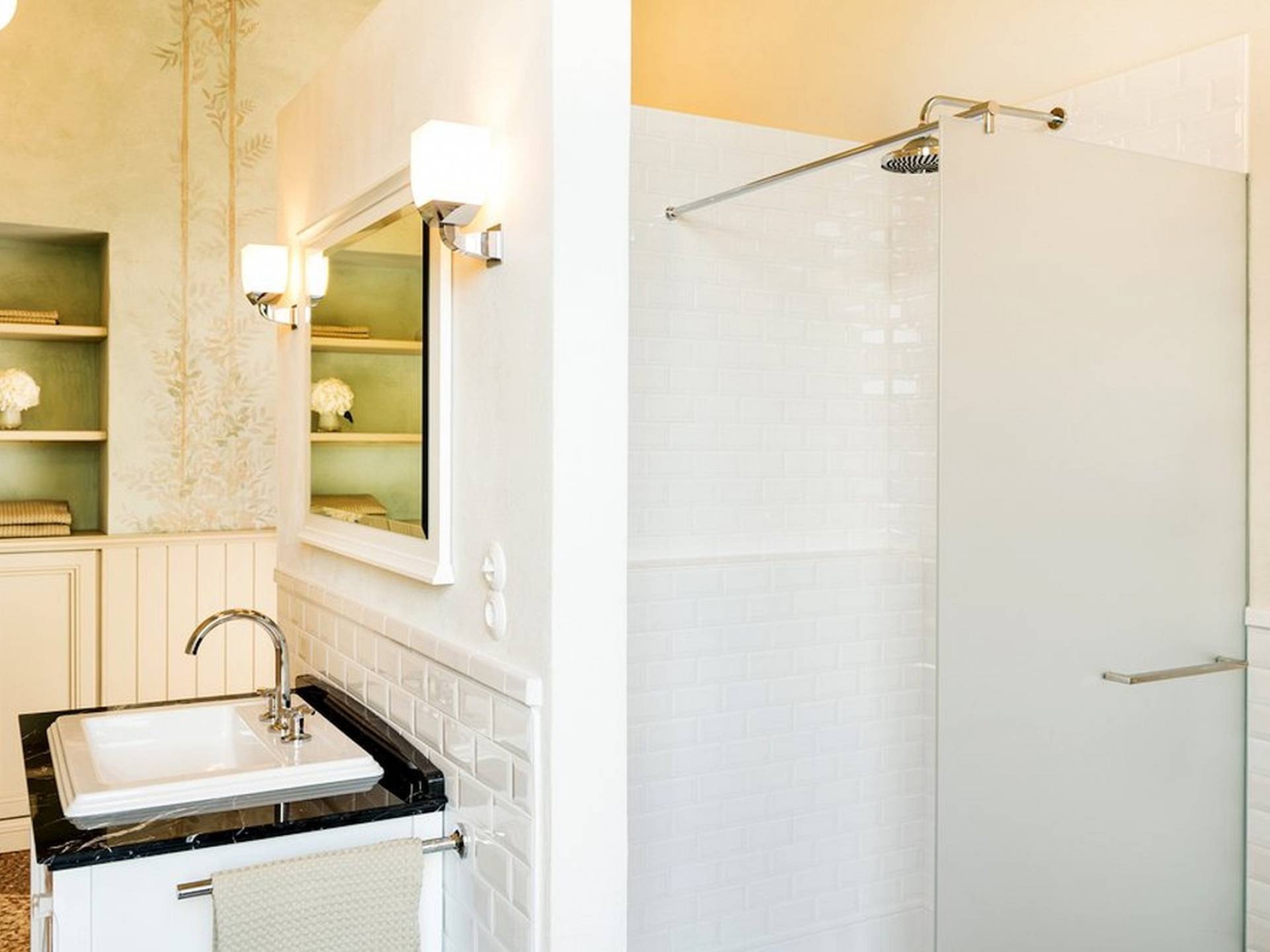 La grande villa de trois étages (450 m²) peut accueillir jusqu'à 10 personnes dans 6 chambres. En entrant au rez-de-chaussée par l'élégant escalier et le couloir, vous trouverez un salon confortable avec cheminée, piano et très grande télévision avec système de son surround, un coin salon unique dans la véranda avec des vitraux colorés, une salle à manger et un , cuisine entièrement équipée. Toilette. Le premier étage est composé de 3 chambres (une grande suite et 2 chambres avec lit double) et 2 salles de bain (une grande salle de bain avec douche à l'italienne et une plus petite salle de bain avec douche). Une grande terrasse avec transats et parasols offre un espace pour des après-midi de détente à l'ombre. Le deuxième étage est également composé de 3 chambres (une grande suite, une chambre avec lit double, une chambre avec grand lit simple), et 2 salles de bain (une grande salle de bain avec baignoire îlot antique et douche à l'italienne et une salle de bain plus petite avec douche). Au sous-sol, vous trouverez un réfrigérateur à vin, rempli d'une sélection de vins rouges et blancs (disponibles à l'achat), et une buanderie avec lave-linge et sèche-linge.