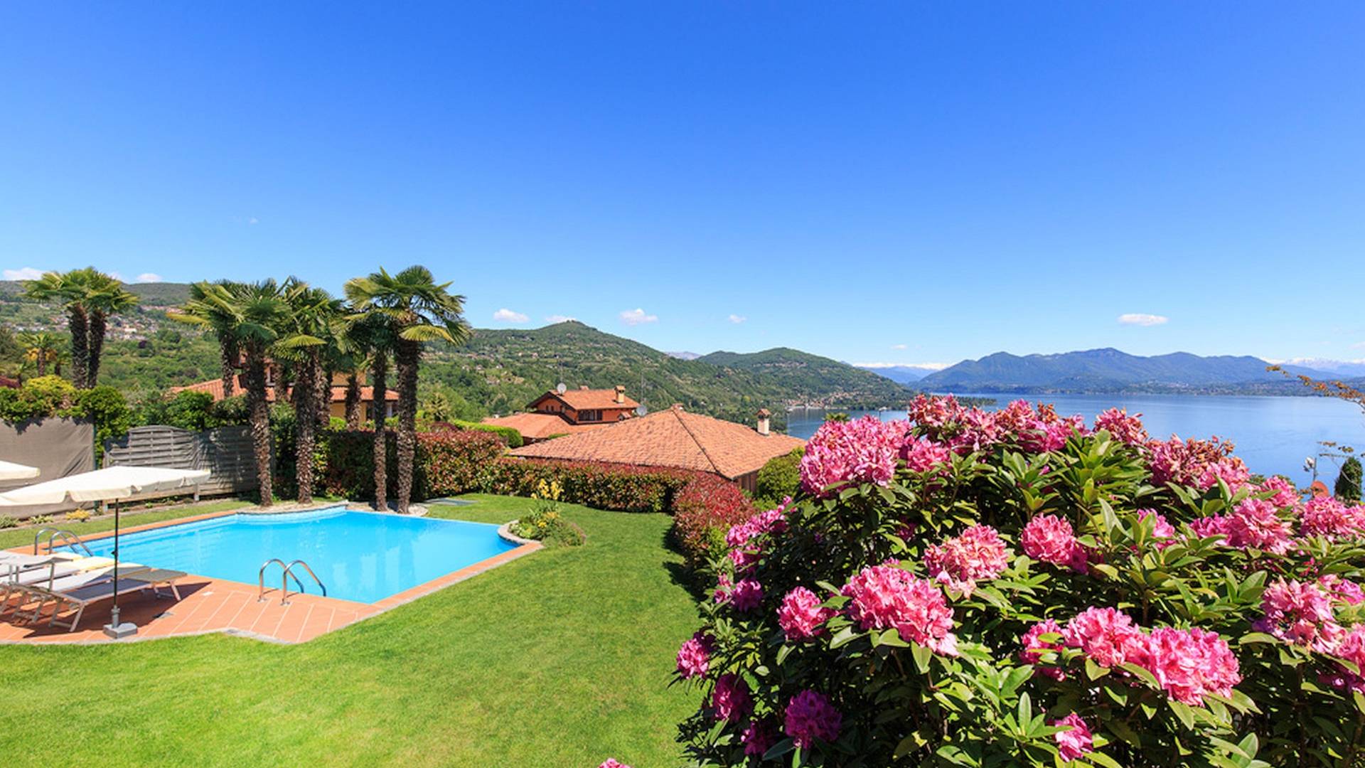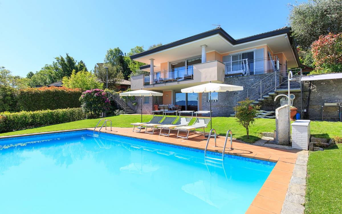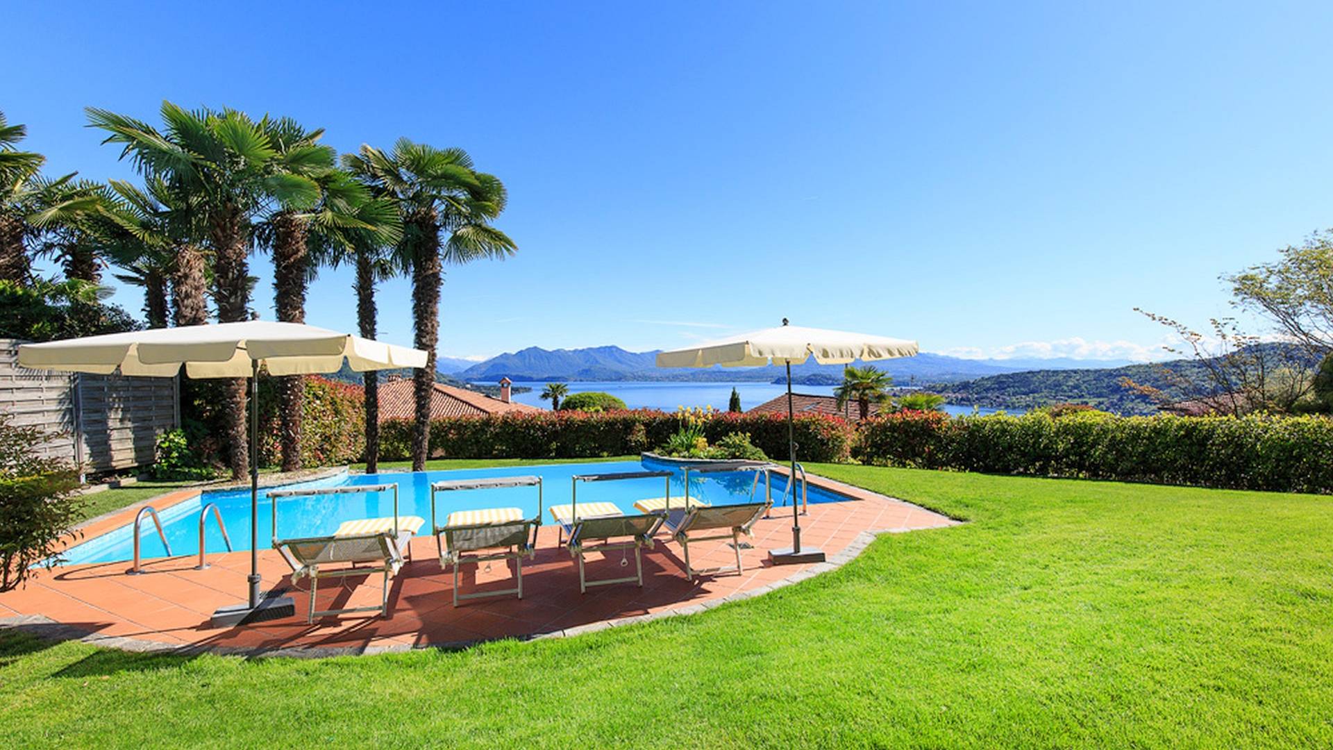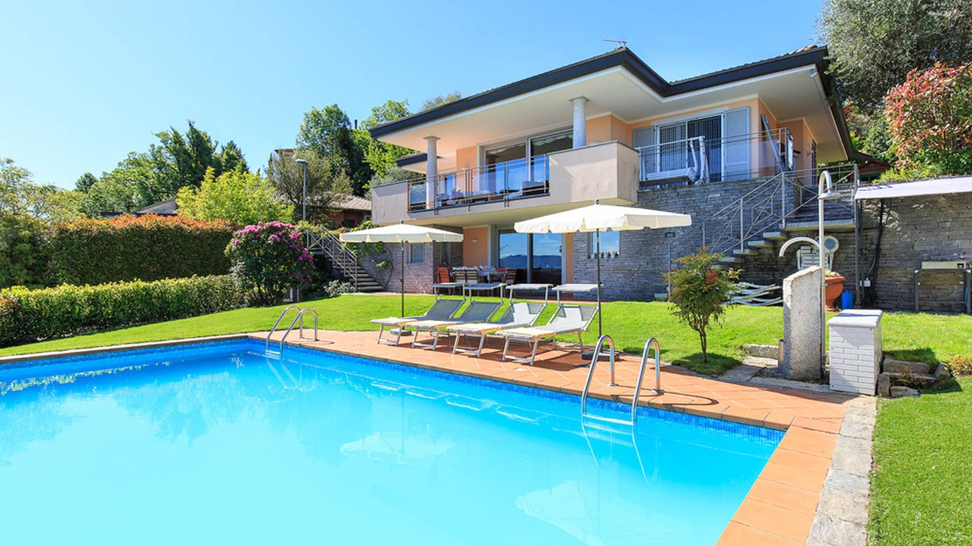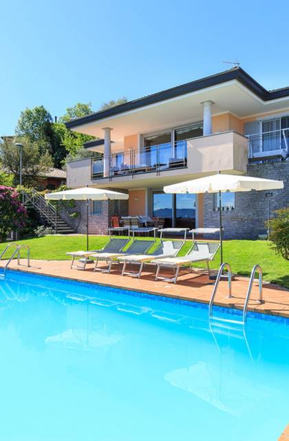Villa de vacances exquise entre Meina et Arona avec piscine et vue fabuleuse. Villa Seta Lac Majeur est située sur une colline pittoresque dans un quartier résidentiel calme de Meina avec vue panoramique sur le lac Majeur