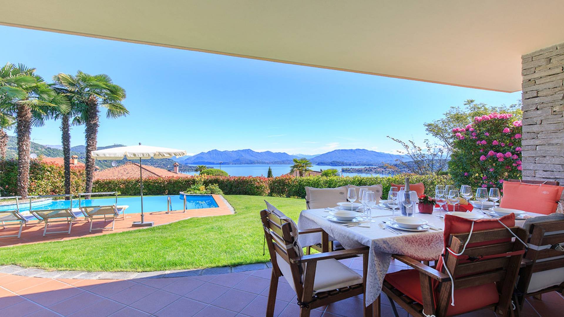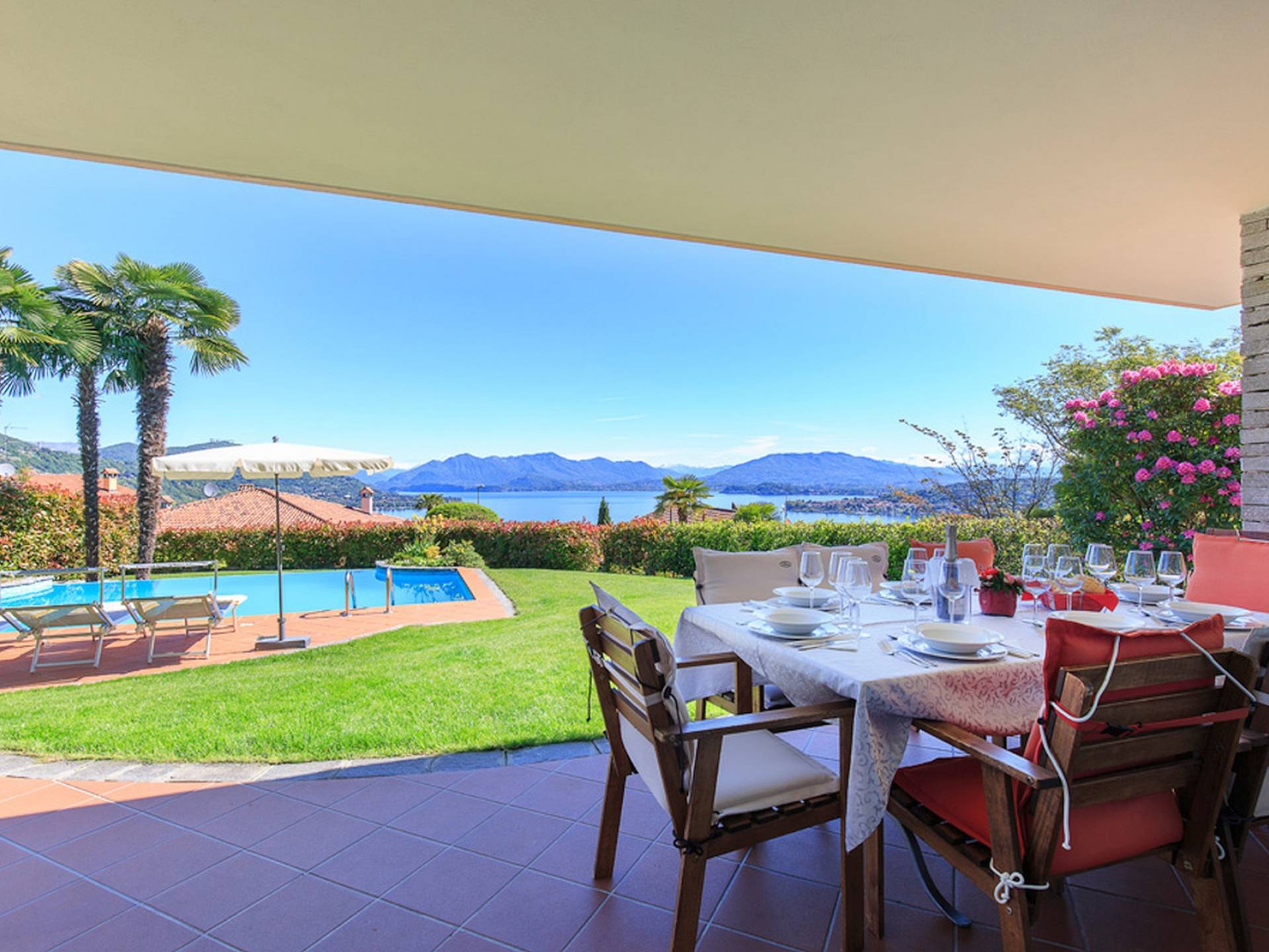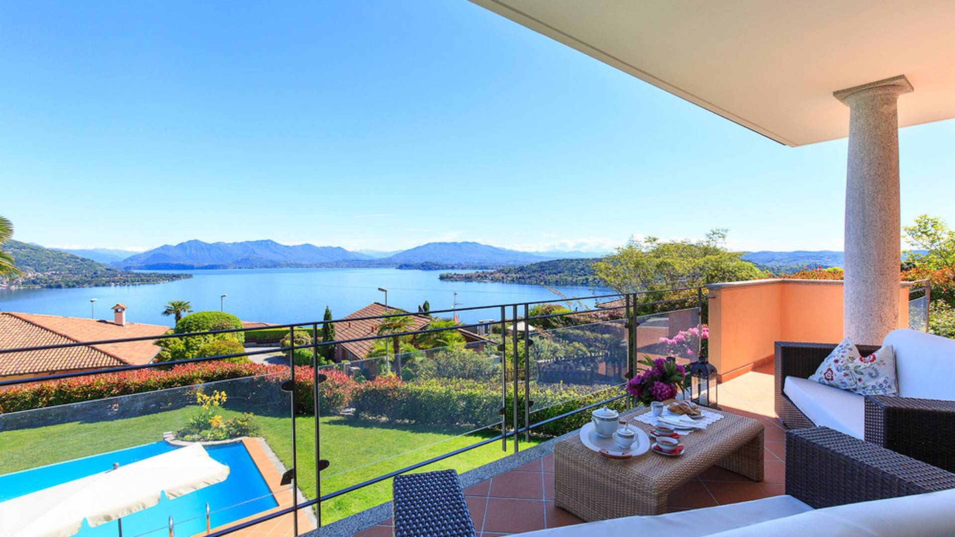 Villa de vacances exquise entre Meina et Arona avec piscine et vue fabuleuse. Villa Seta Lac Majeur est située sur une colline pittoresque dans un quartier résidentiel calme de Meina avec vue panoramique sur le lac Majeur