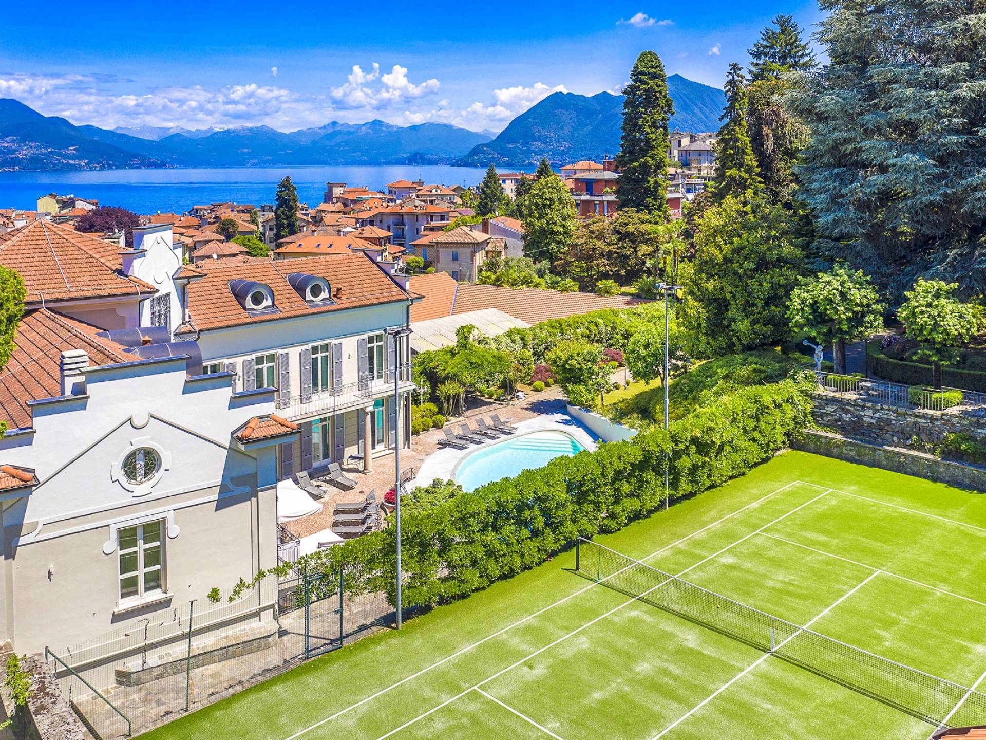Cette luxueuse propriété entièrement climatisée « Villa Virginia » est l'endroit idéal pour profiter de vos vacances à quelques pas de Stresa, la ville la plus célèbre du lac Majeur. La villa (900 m²) offre un environnement élégant et très exclusif pour se détendre entre amis ou en famille jusqu'à 14-15 personnes. Il est magnifiquement conçu avec un hall central et majestueux divisant la villa en deux ailes, et avec un impressionnant escalier en colimaçon reliant les 3 étages