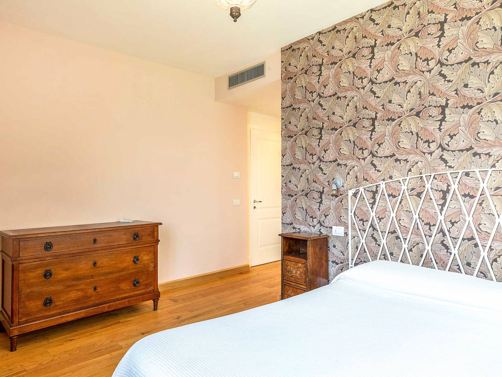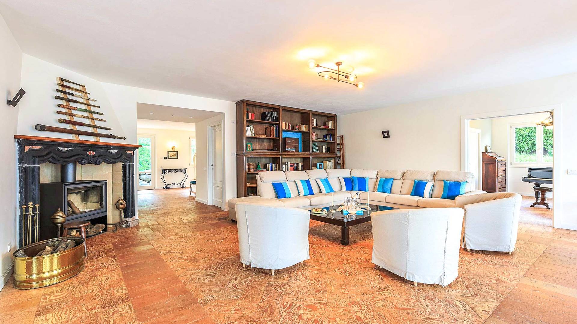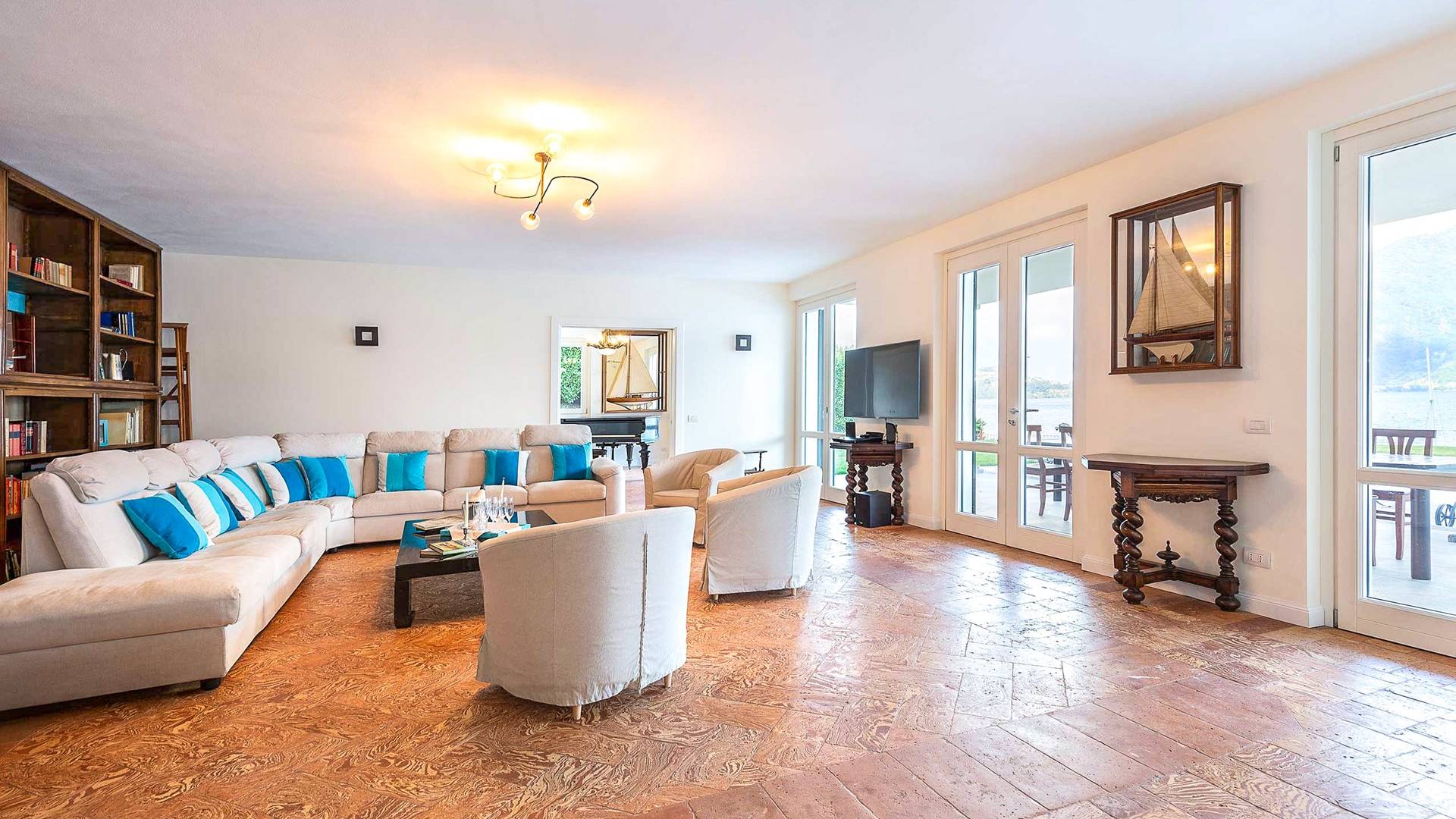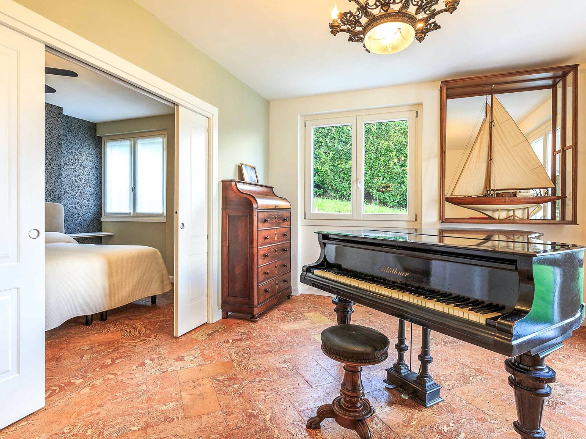 Il y a un grand salon ensoleillé avec des canapés confortables et une télévision par satellite, une salle à manger avec une table ancienne en bois pouvant accueillir jusqu'à 18 personnes, un salon confortable avec un magnifique piano à queue, une cuisine moderne et entièrement équipée (2 fours, une cellule de refroidissement rapide, 2 lave-vaisselle, un grand réfrigérateur avec congélateur et un large îlot de cuisine). Une chambre double, avec une salle de bain attenante, accessible aux personnes handicapées. Au fond de la cuisine, il y a une chambre du personnel (9 m²) avec une salle de bain dédiée (6,50 m²).