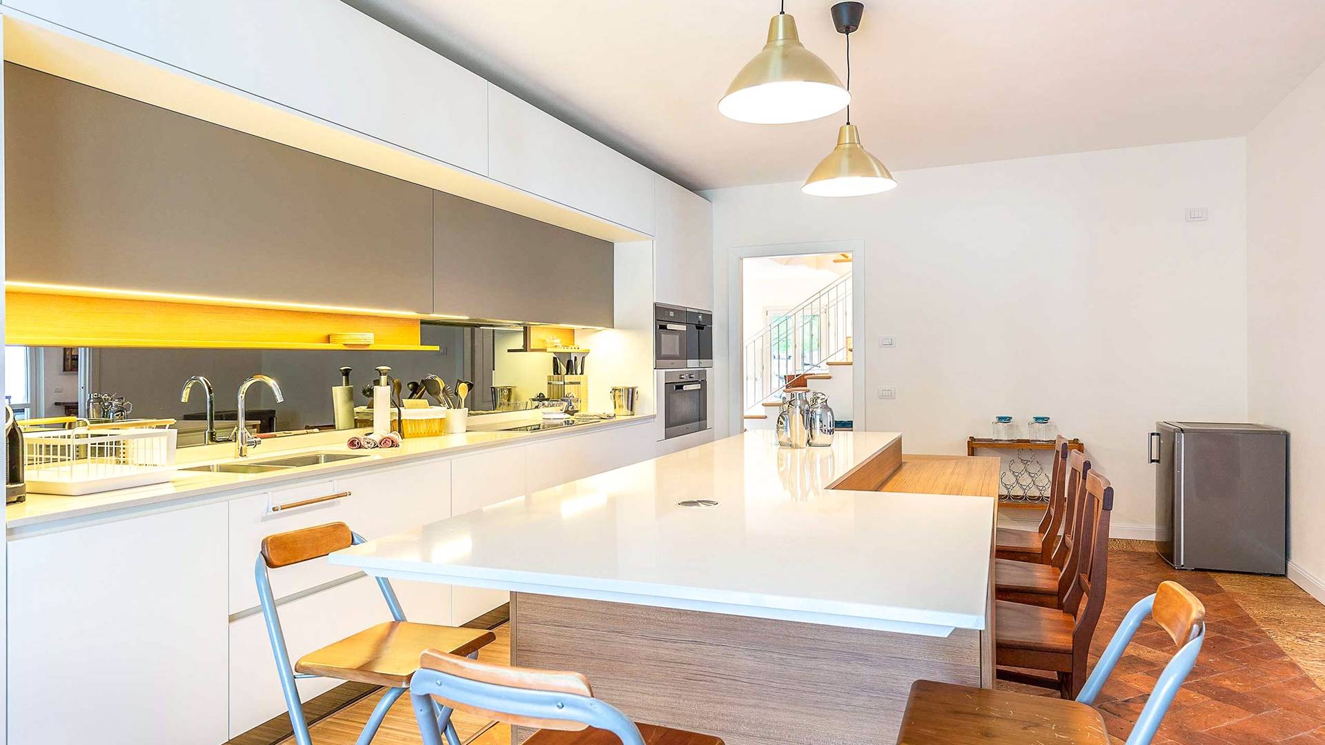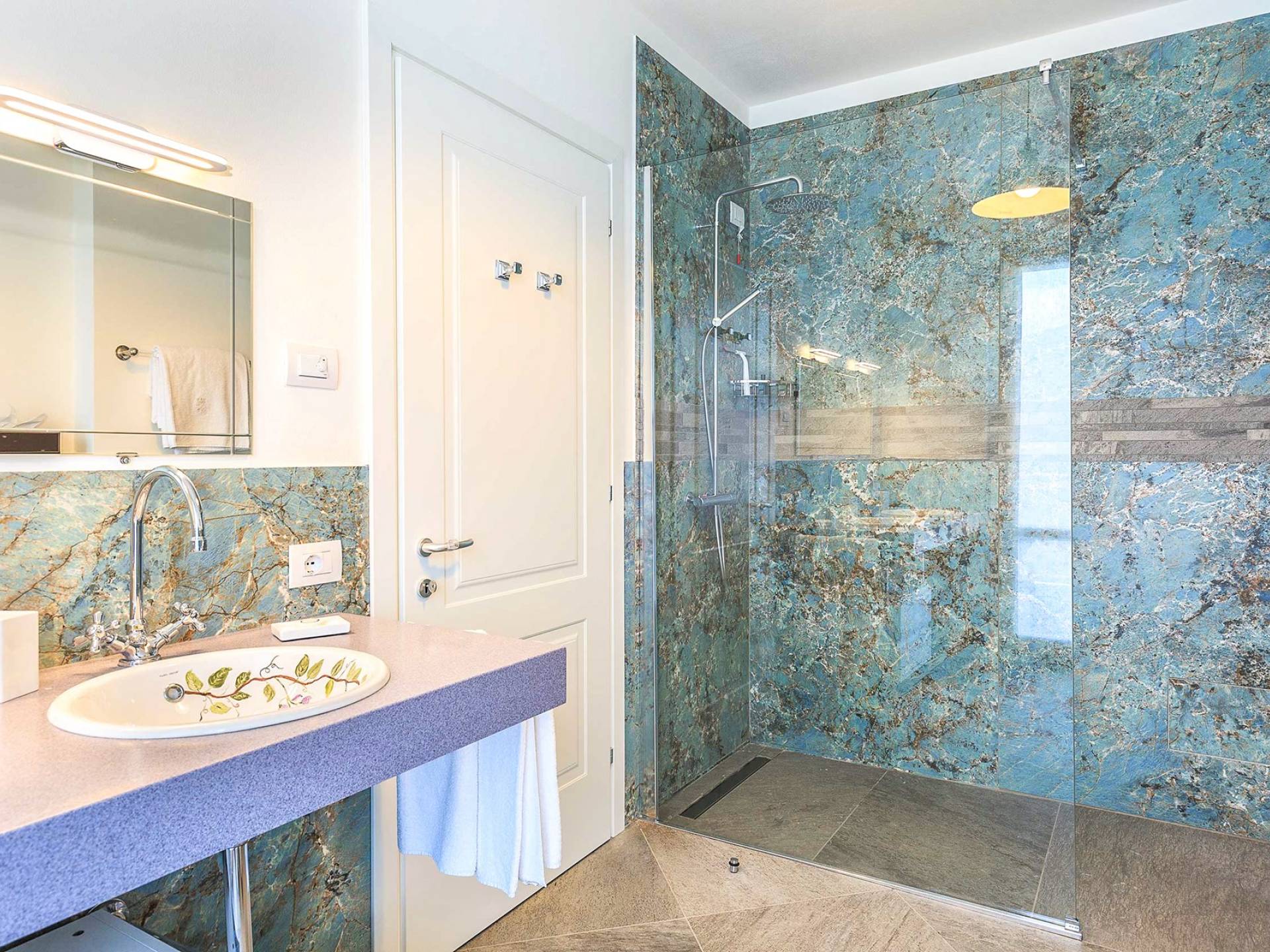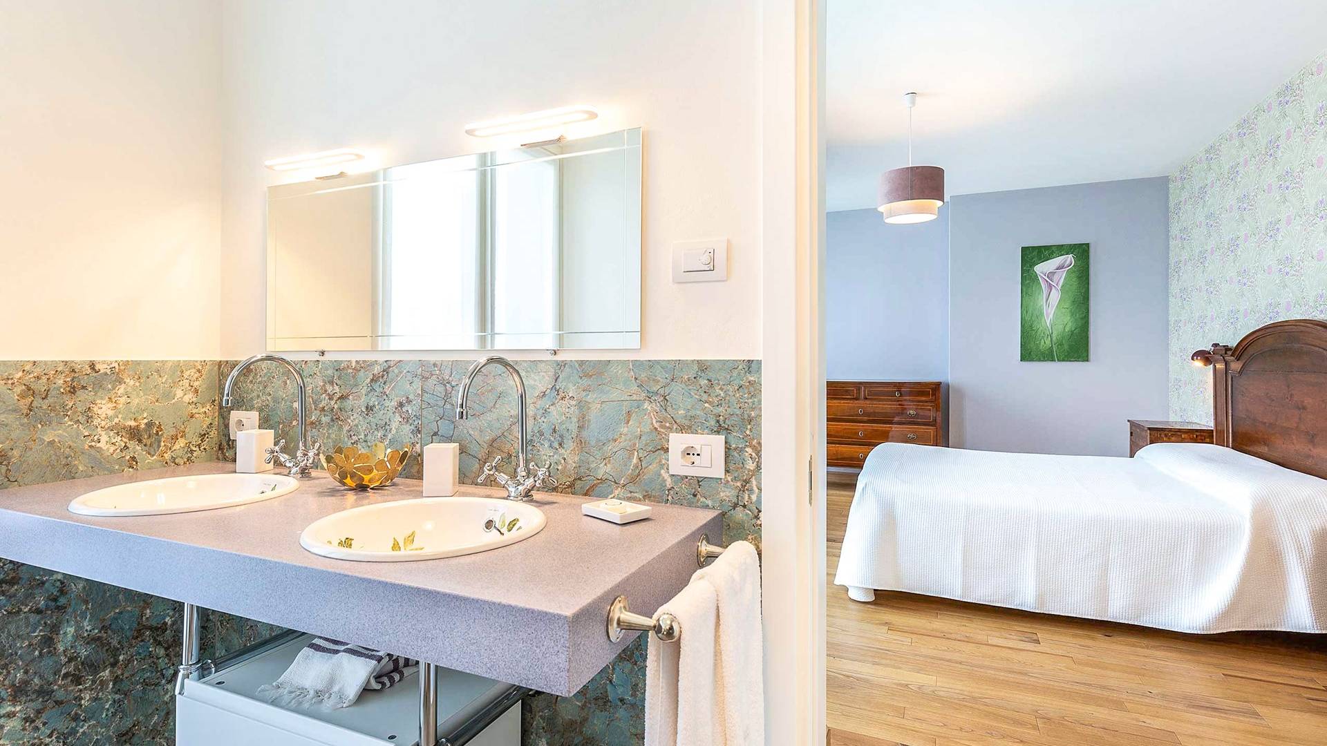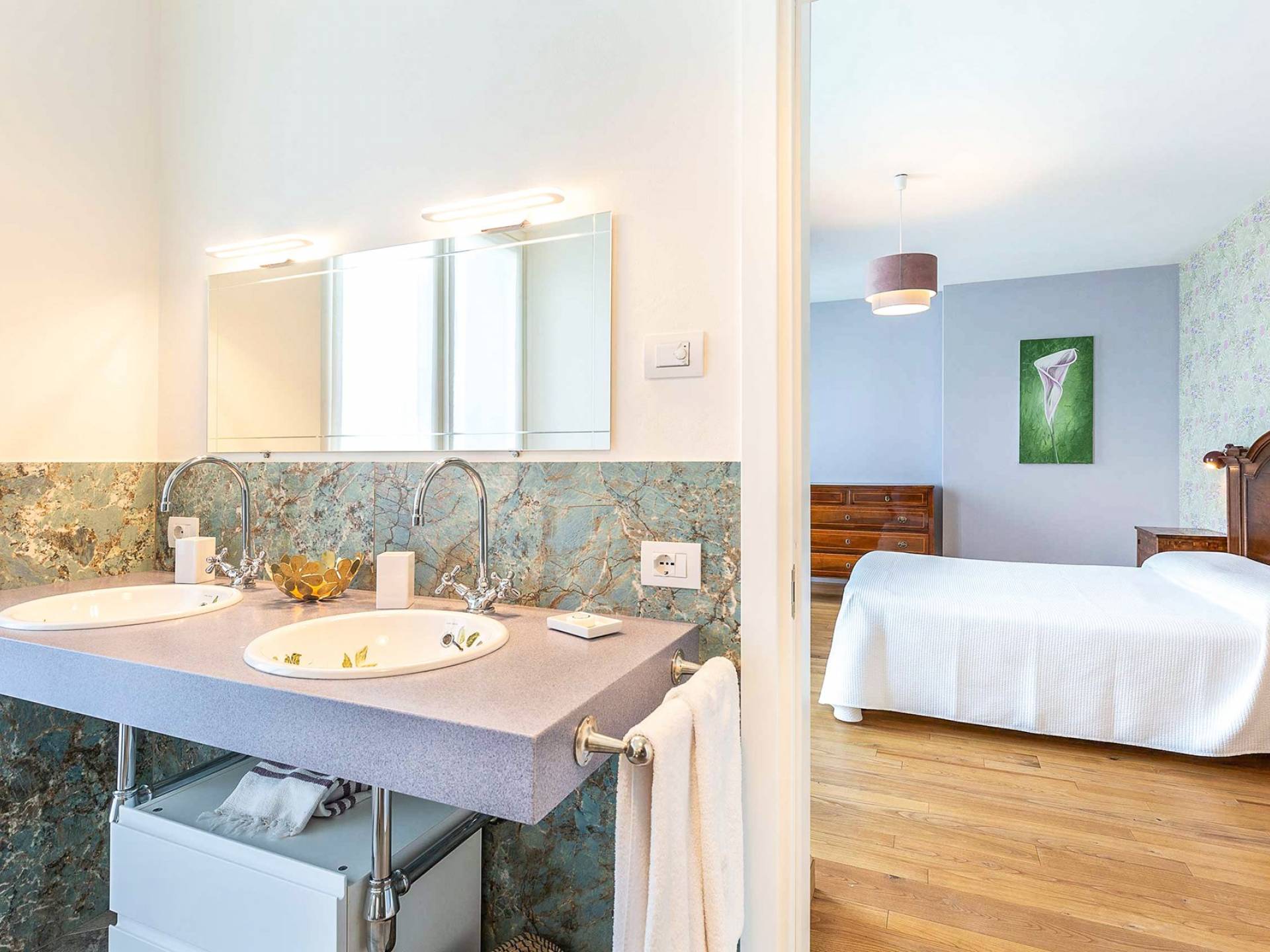 La Villa Angelina peut accueillir 12 + 2 personnes dans 6 chambres doubles avec 6 salles de bain privées et une chambre supplémentaire pour le personnel avec une salle de bain dédiée. La villa avec son intérieur spacieux est la maison de vacances idéale pour les grandes fêtes, composée de deux étages (250 m² chacun) et d'un sous-sol (200 m²) avec buanderie